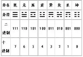 在莱布尼茨看来,易经八卦中的阴阳符号与二进制中的0和1有着惊人的相似之处。他发现,八卦中的每一卦都可以用二进制数来表示:乾卦(☰)为111,坤卦(☷)为000,震卦(☳)为100,巽卦(☴)为011,坎卦(☵)为010,离卦(☲)为101,艮卦(☶)为001,兑卦(☱)为110。这种对应关系不仅体现了二进制的简洁性,也展示了中国古代哲学中蕴含的数学智慧。