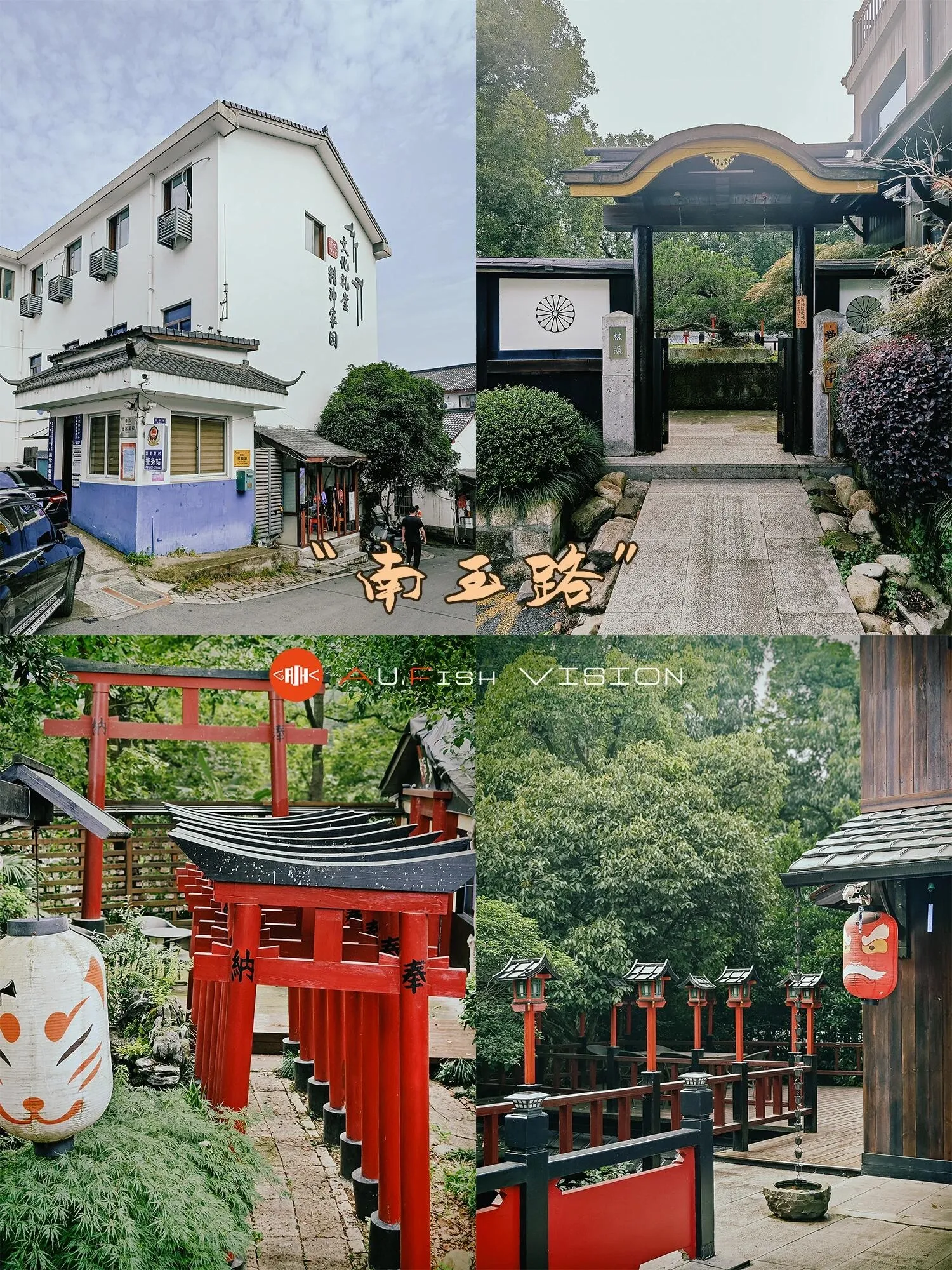 在南玉路上,有两个特色鲜明的餐厅:青桃餐厅和日本料理店“林隐”。特别是 林隐,其内部设计仿佛将你带到了日本京都 ,微缩版的朱红色鸟居、祈愿绘马墙和许愿池,以及林间山路拾级而上的红色宫灯,让人联想到伏见稻荷大社和贵船神社的景象。