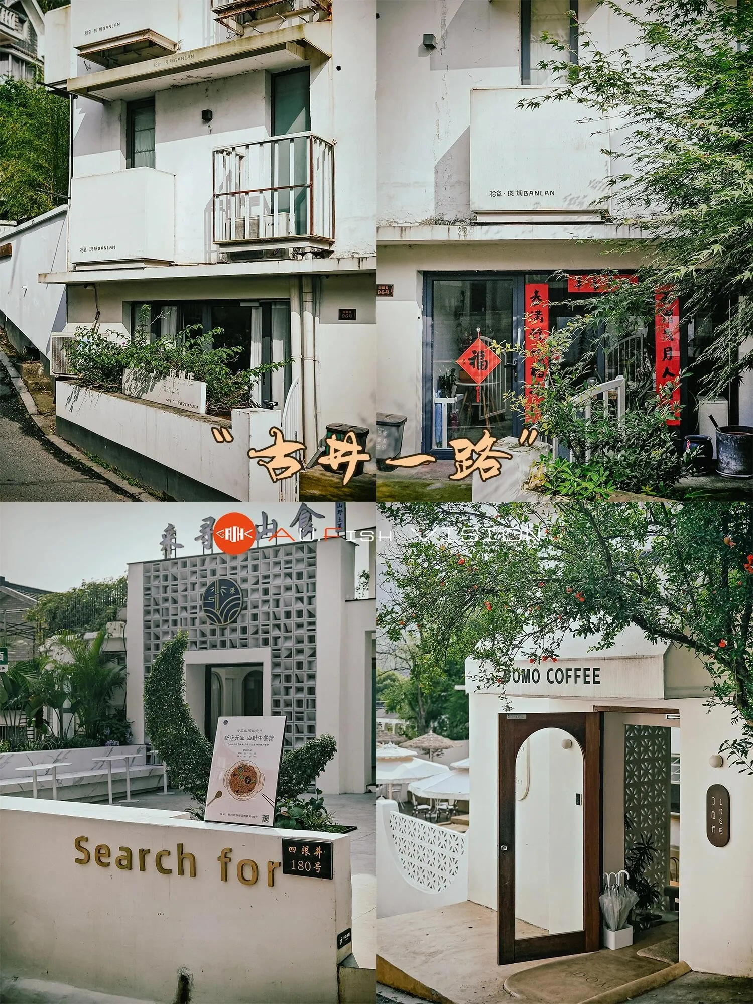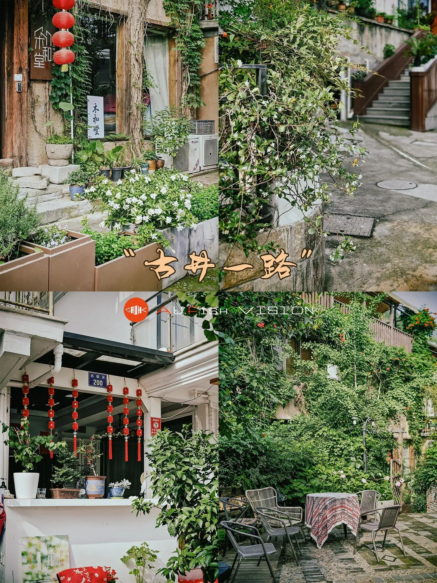 古井一路上,你可以找到网红咖啡店DOMO的两家分店:白色的豆茉和黑色的黑桃,是游览累了休息的好去处。古井二路相对安静,适合悠闲漫步。古井三路虽然是断头路,但也有一些精致的咖啡店、民宿和餐厅。