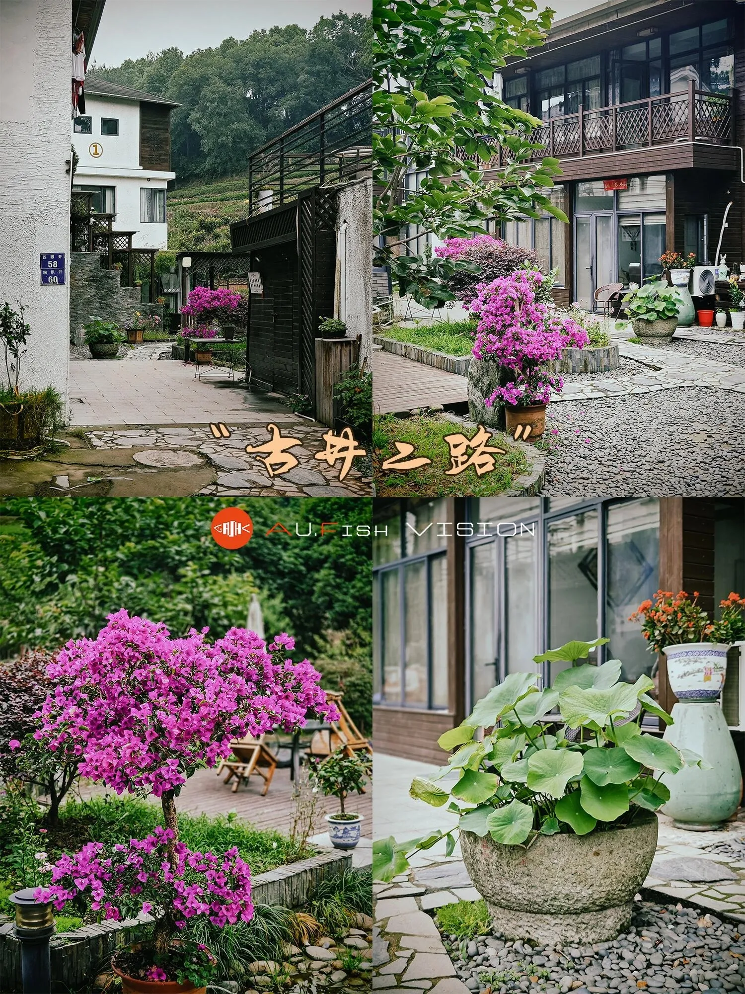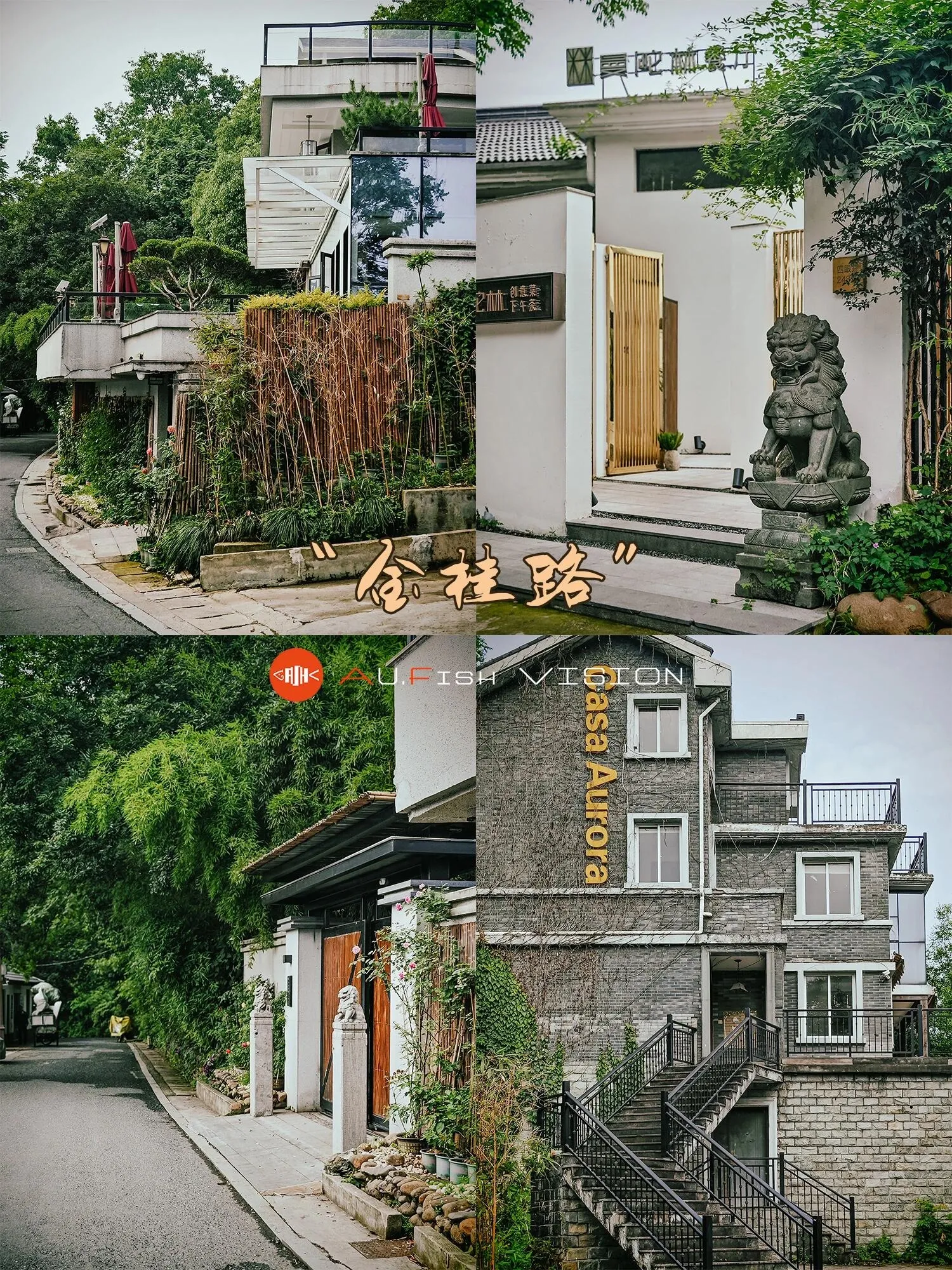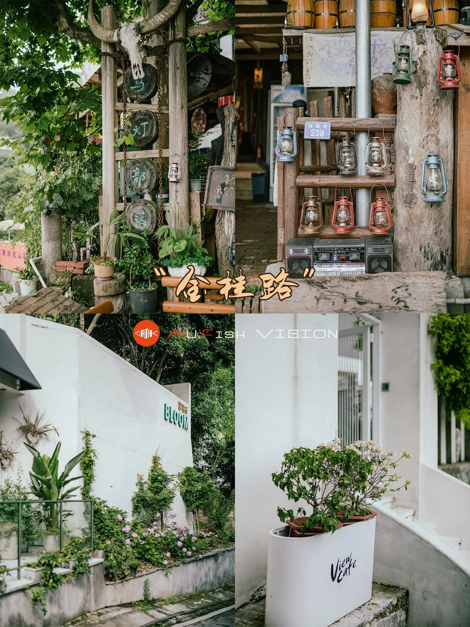 金桂路是整个景区最热闹的地方 ,特别是中段聚集了马灯部落、碧桃小馆、等花开等网红店。在金桂路南段,你可以找到网红民宿“茗白”,它不仅是一间很棒的民宿,还是一间出色的咖啡馆。