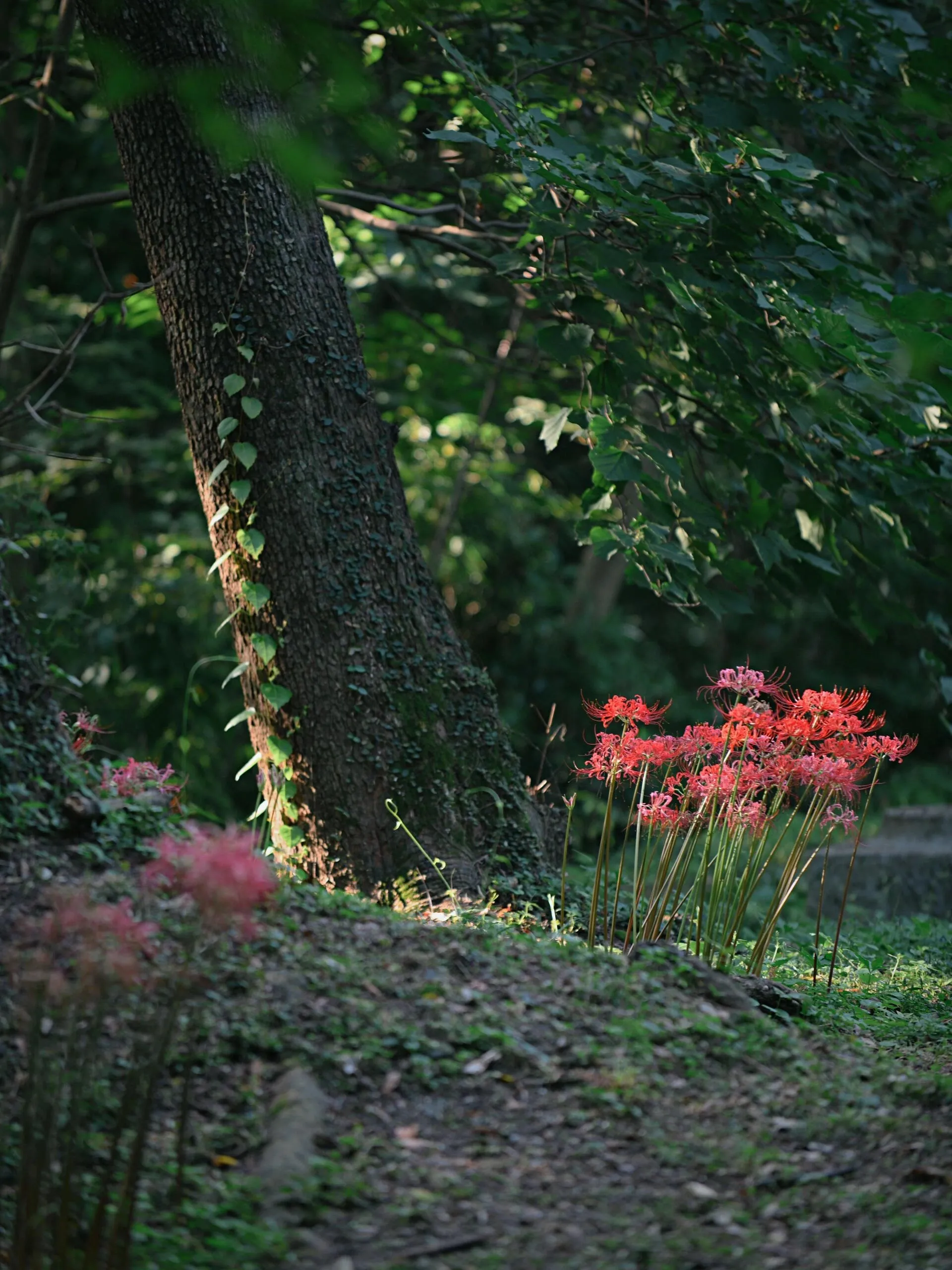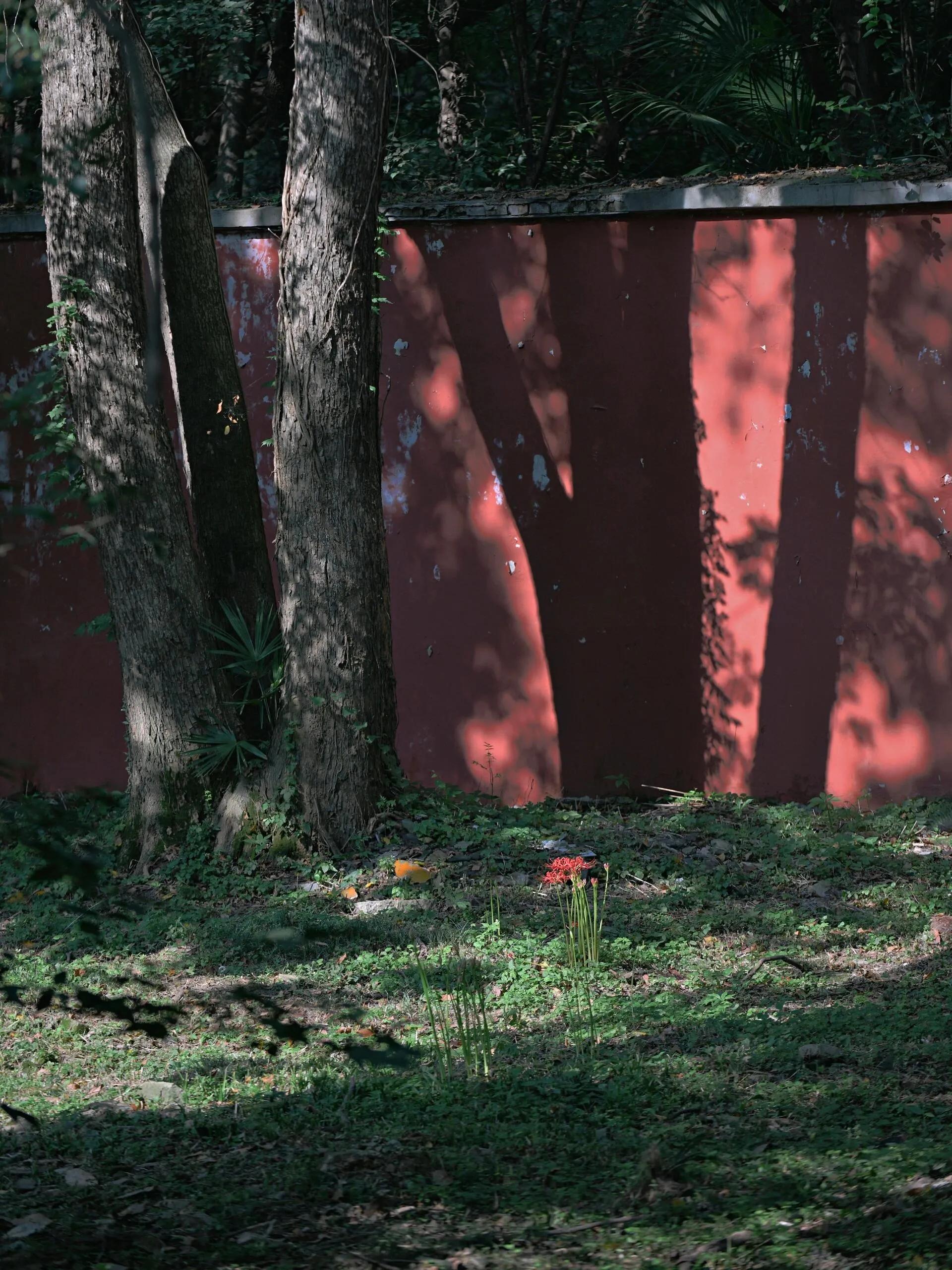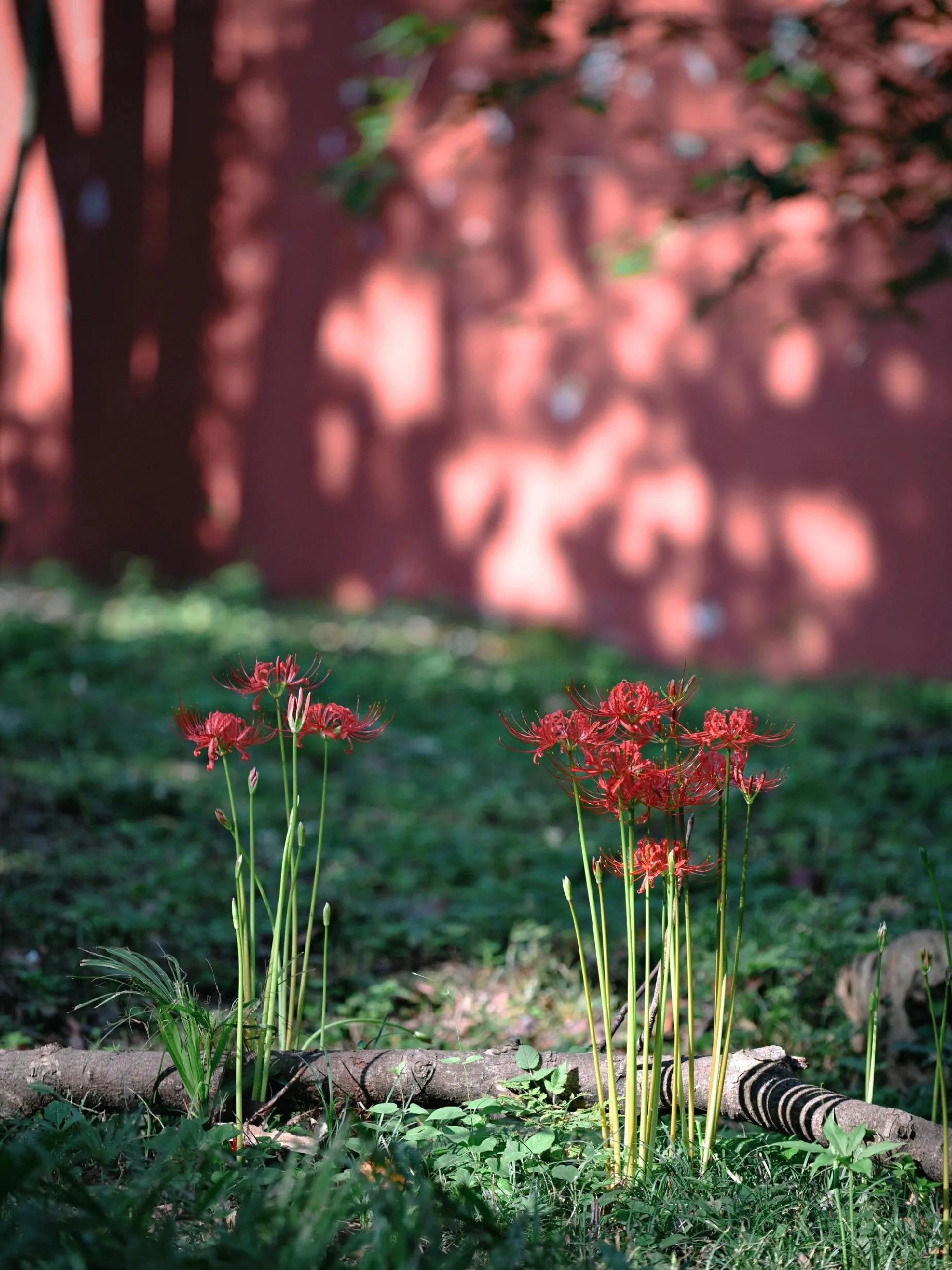 在9月2日的清晨,阳光透过天洞洒落,为这片历经600年岁月的彼岸花增添了几分神秘感。 红艳的花朵与明孝陵古朴静穆的宫墙、精美的石刻相映成趣 ,呈现出一幅穿越时空的美丽画面。