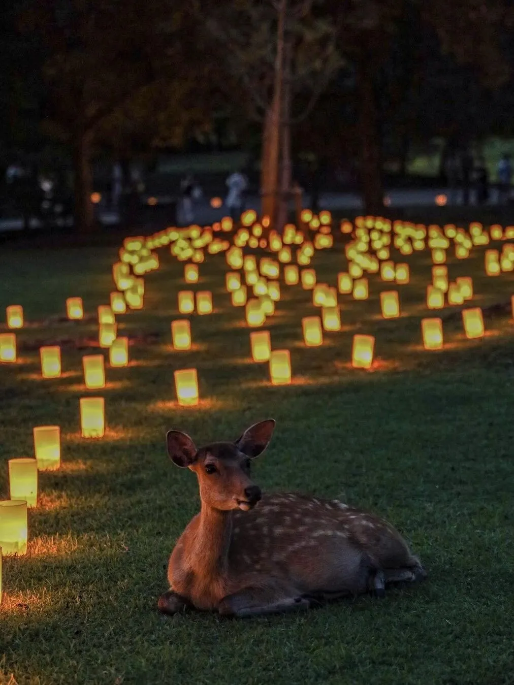 奈良灯花会是日本夏季一项充满魅力的传统活动。每年8月初,奈良公园及周边地区会点燃约1.2万个蜡烛,为期10天,让整个夜晚沐浴在温暖柔和的烛光中。“灯花”指的是蜡烛灯芯顶端形成的花形团块,据说能给到访者带来好运。