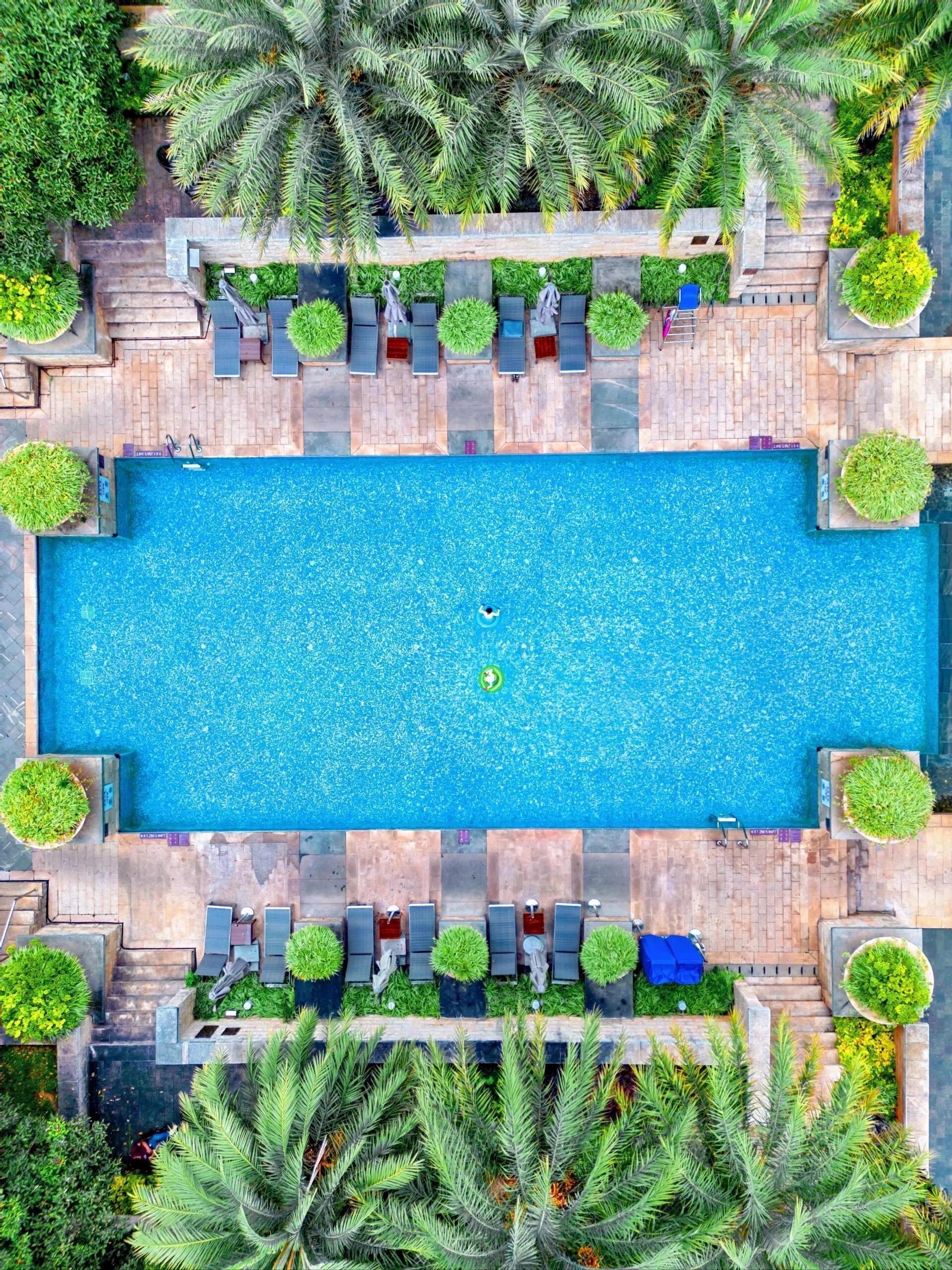 娱乐设施丰富多样。酒店拥有8个天然温泉泡池、1个超大户外泳池和1个室内标准化泳池。温泉水质清澈,定期换水,池子被茂盛的树荫遮蔽,即使在正午也不会感到炎热。户外超大泳池水深1.2米,非常适合儿童玩耍。康乐区还设有儿童游乐园、台球室和电玩室,深受小朋友喜爱。