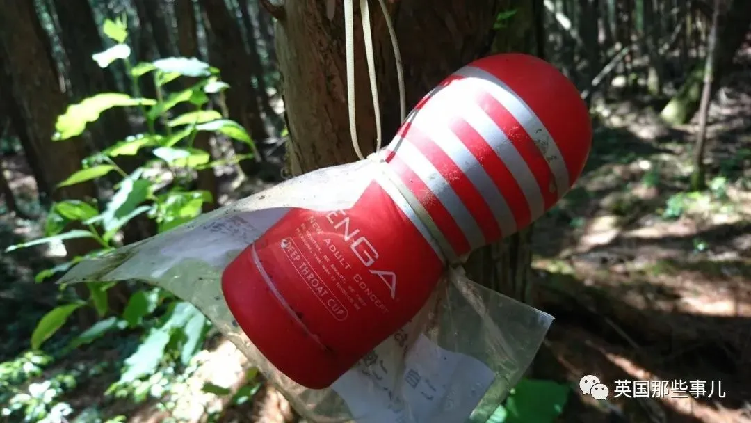 或许是来树海自杀的人,男性会比较多,所以有人想出了在此放置飞机杯的方法,希望能劝阻自杀。