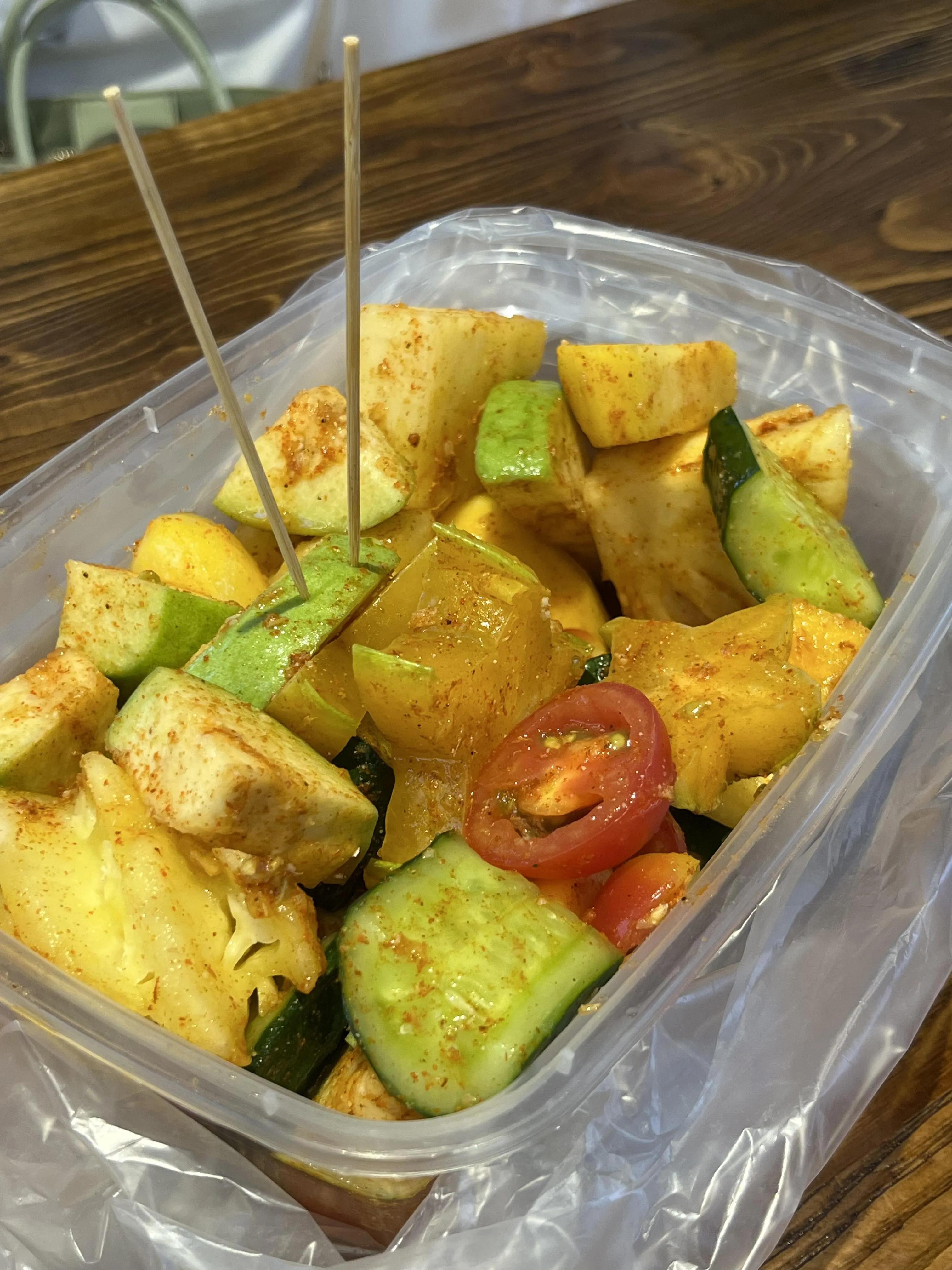 在青云菜市卓和记对面,有一家酸嘢小摊值得光顾。这里的水果新鲜可口,调味恰到好处。
