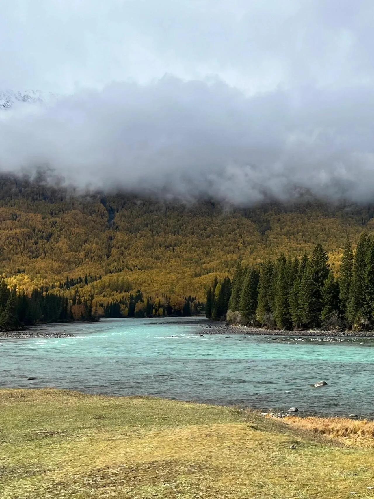 9月份看到景区门口夸张的排队景象着实有点劝退,还好我们有一颗坚定的心。 喀纳斯景区人不多,树叶黄了7成左右。 短短两天感受了晴天、雨天、雨后初晴的喀纳斯,呈现出不同的面貌,没有最美,只有更美。 依依不舍离开喀纳斯前往禾木。