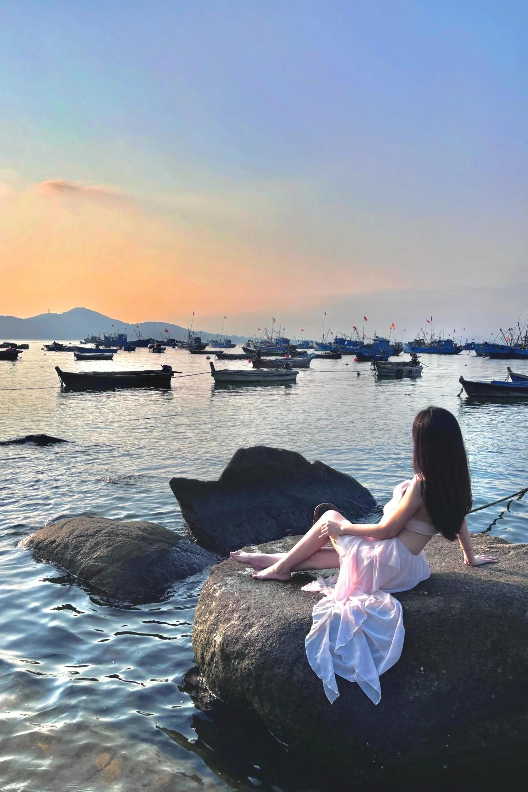 海源公园里停泊着许多渔船,景色颇有意境。
