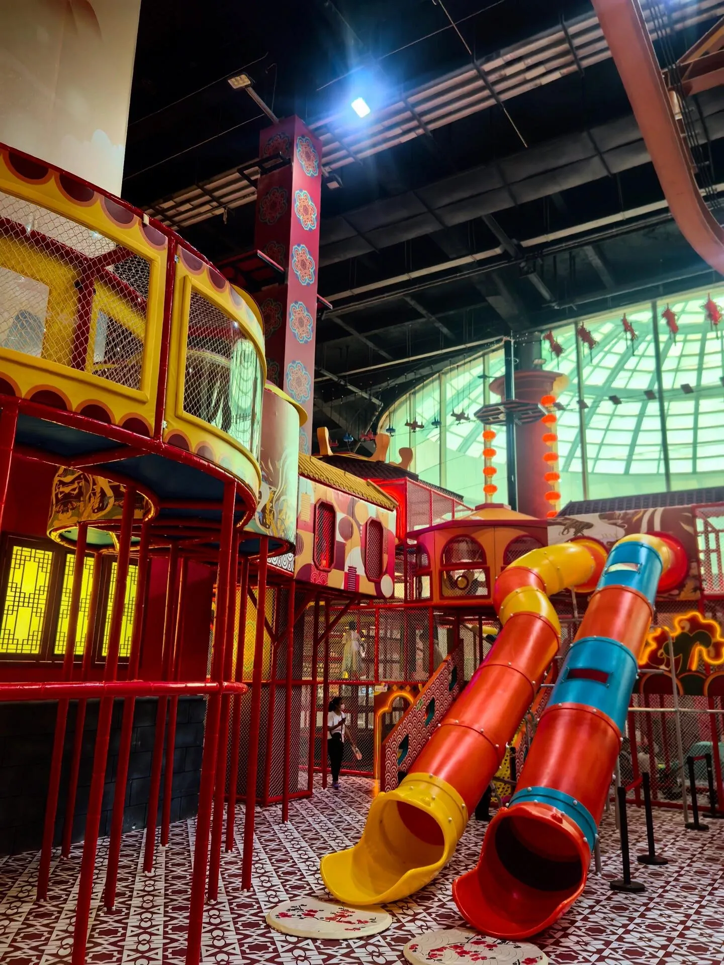 孩子们可在入口领取任务卡,在各个打卡点完成任务盖章 。场内还有旋转木马、海盗船、淘气堡等娱乐设施,带小朋友的家长记得准备防滑袜。