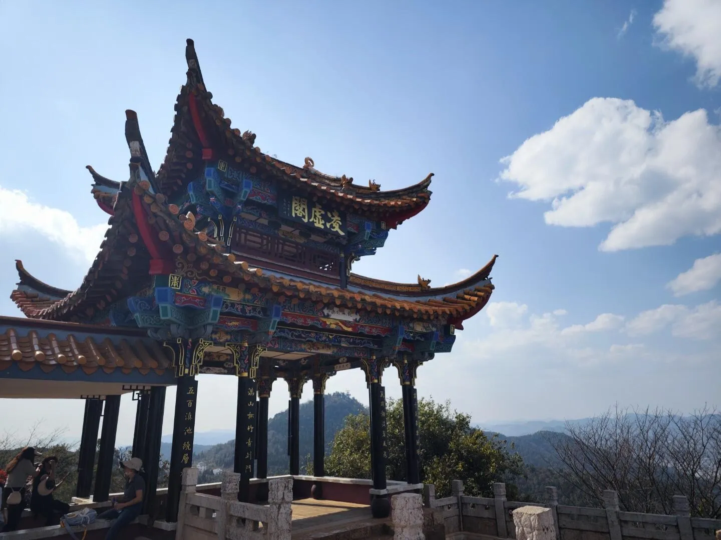 西山风景区从滇池一直延伸出去。可以选择乘坐缆车,但缆车并不会直接到达山顶,还需要步行约二十多分钟才能登上山顶的凌虚阁。在山顶上,整个昆明尽收眼底,景色非常美丽,是拍照打卡的好地方。