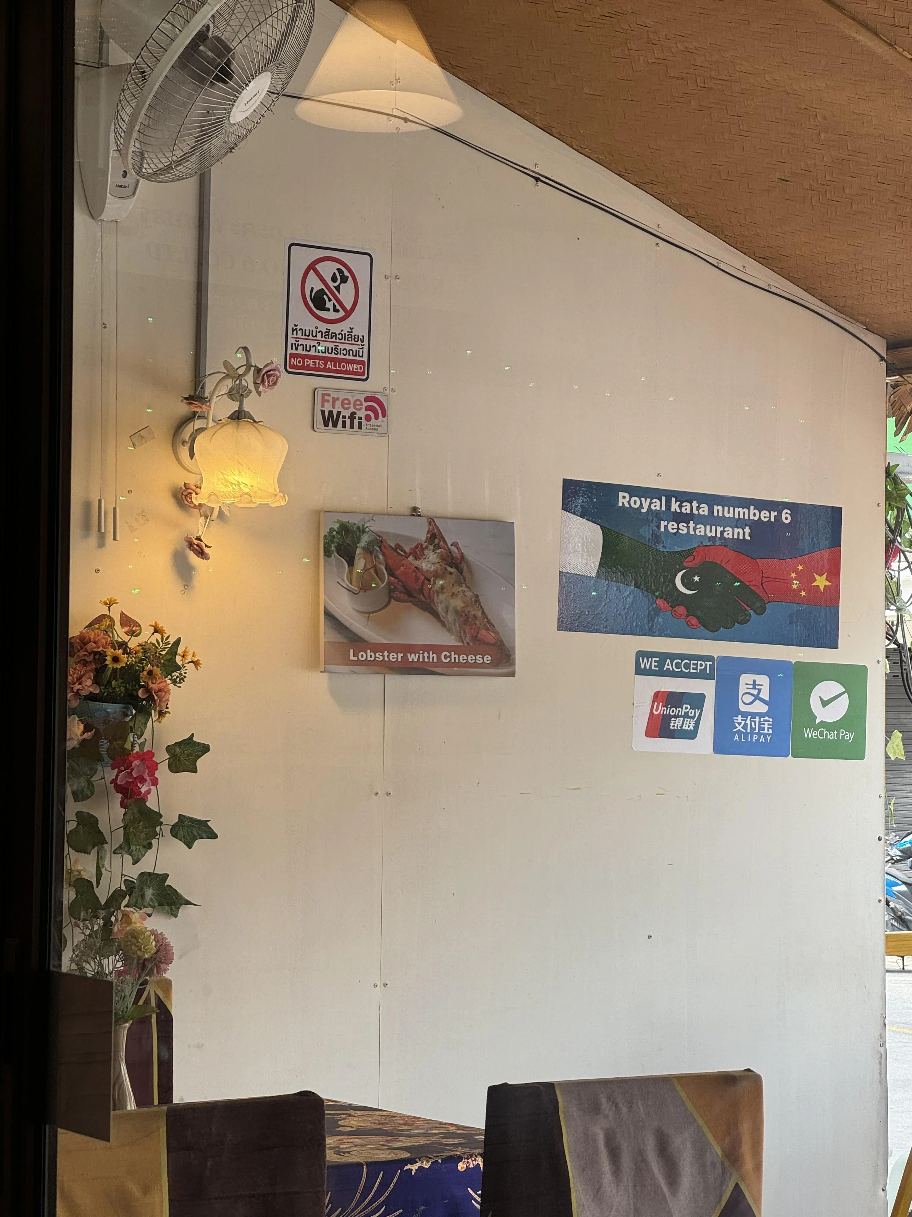 这家餐厅离卡塔海滩比较近,就在Aurico Kata Resort & Spa对面。小店环境精致,店内装饰充满了中巴友谊的元素,让人深切感受到巴铁的热情。