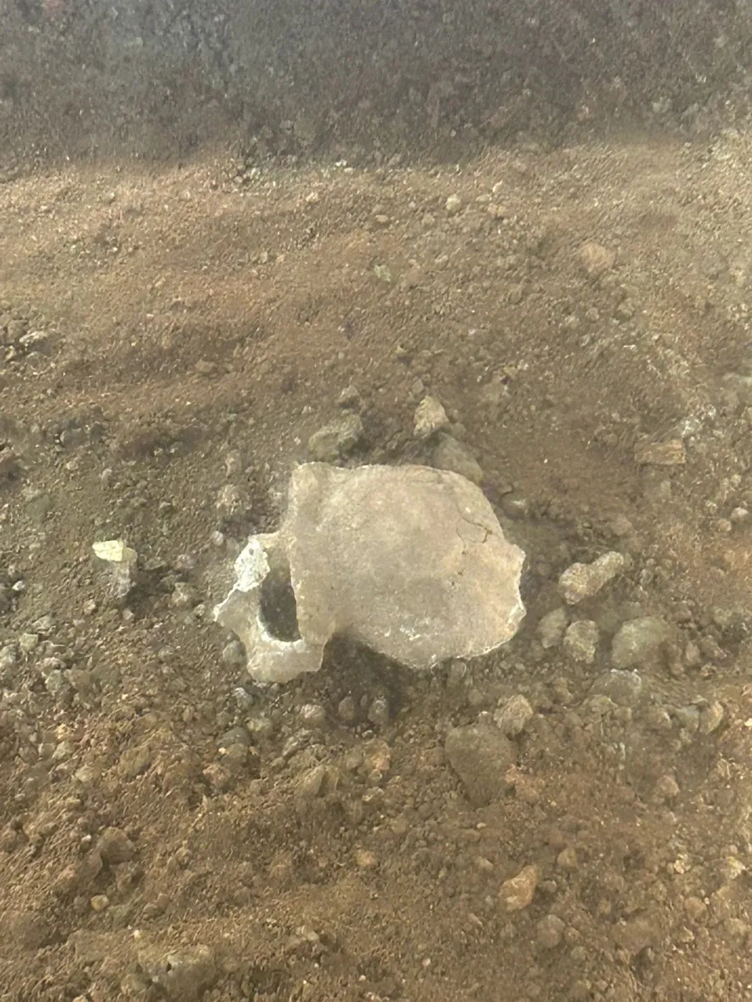 在溶洞引桥的左边,有个玻璃罩,里面展示的正是当年发现猿人头骨的现场。