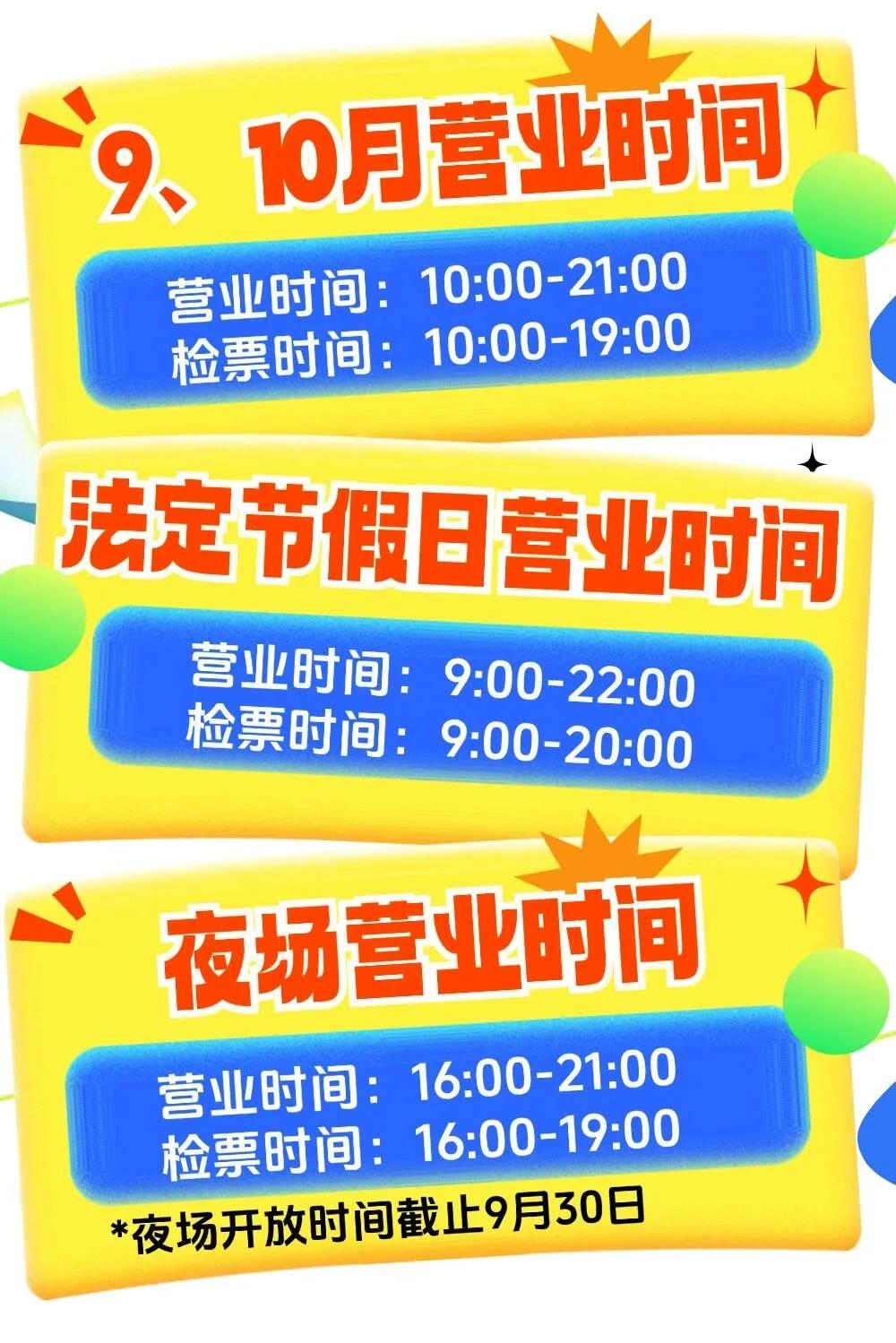 丝路欢乐世界9月营业时间为10:00-21:00,检票时间为10:00-19:00。需注意,遇大风、雨天等天气或其他不可抗因素时,园区可能会根据实际情况调整运营时间,具体信息以景区当天公布为准。