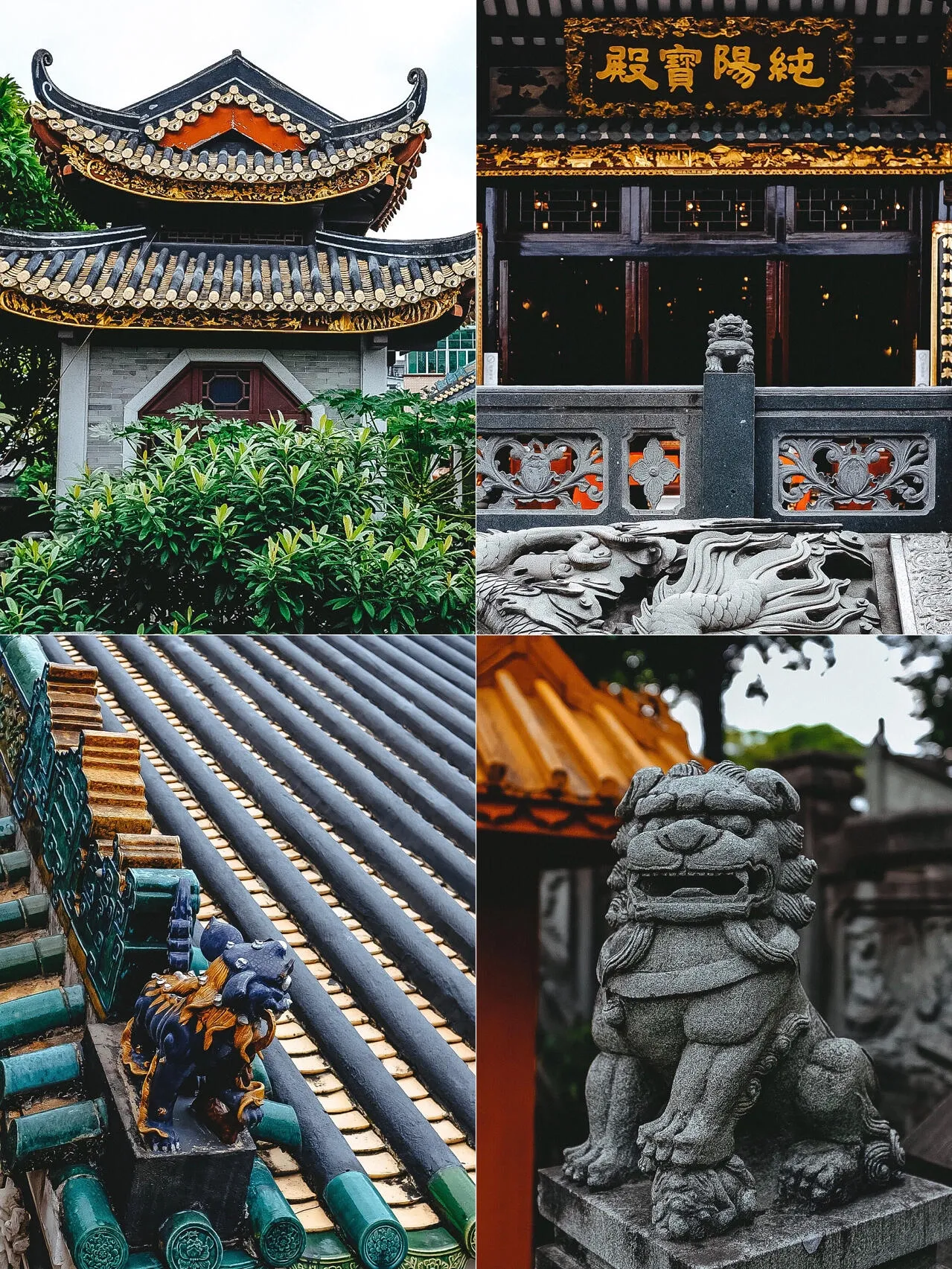 纯阳观位于广州市海珠区瑞康路268号 ,靠近中大布匹市场。作为广州市最大的道教宫观,它不仅是道家圣地,更是一处名胜古迹。山门外熙熙攘攘,山门内却别有洞天,清寂宁静,给人一种闹市藏飞仙的感觉。