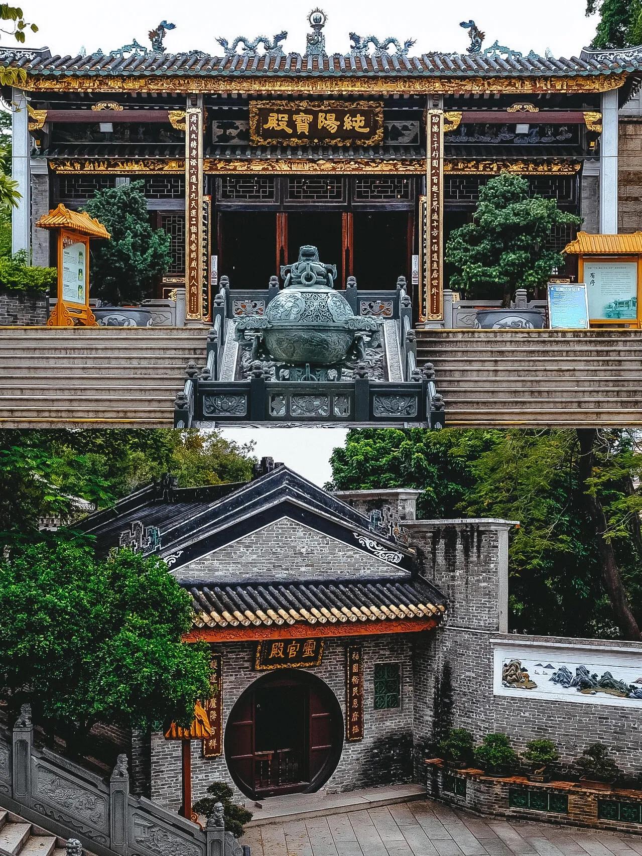 观内景观丰富,建筑风格和人文氛围都充满浓厚的岭南文化特色。 正山门保留了道光四年的原貌 ,拾级而上第一座宫殿是灵官殿。大殿广场左侧是慈航殿,右侧是文昌殿,正殿则是纯阳宝殿。值得一提的是朝斗台,它是广东最早的天文台,始建于清道光九年,形如四方形碉堡。