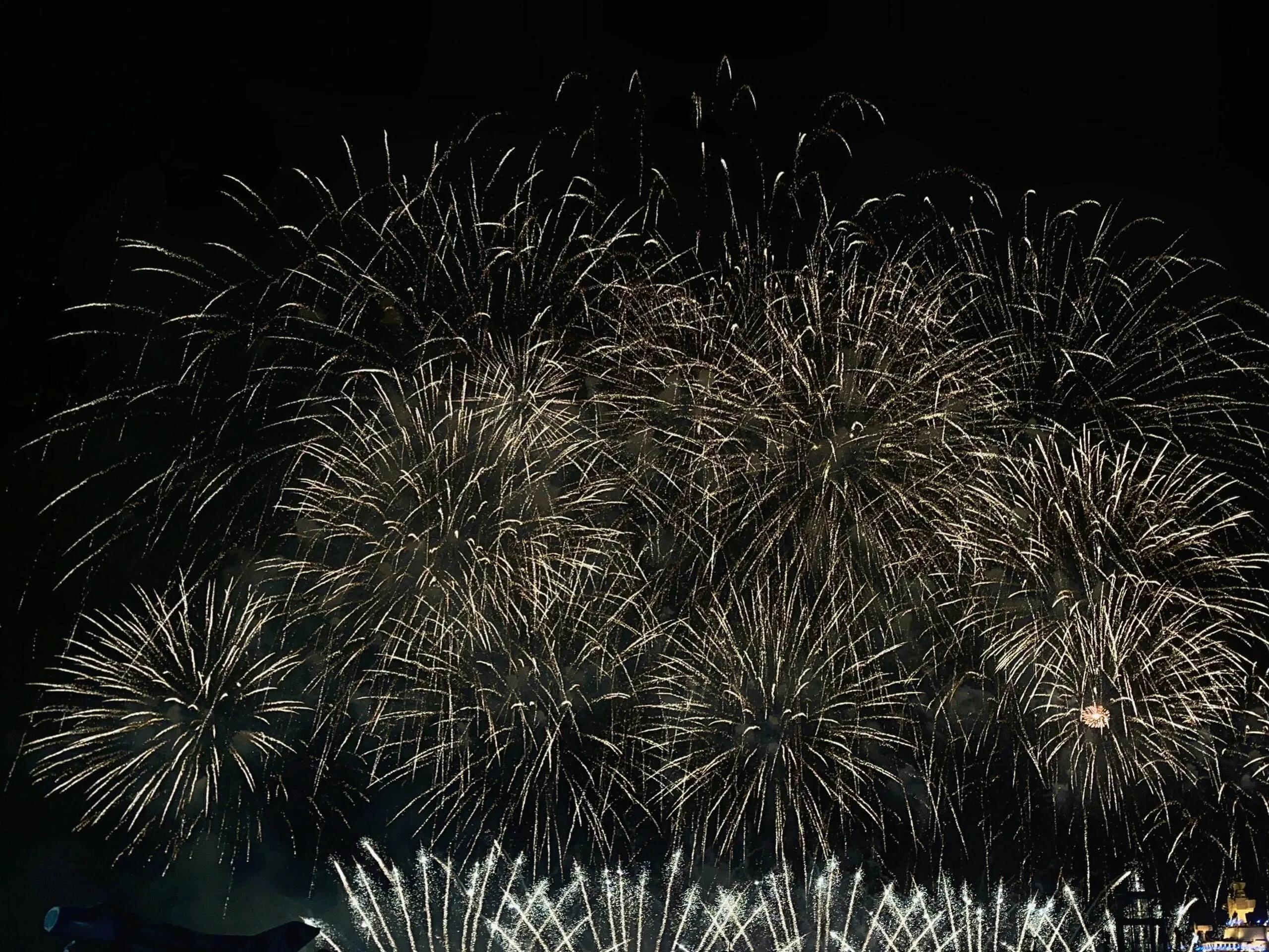 最后,谈谈整体体验。 烟花确实很美,范围很大,能看到如此大规模的烟花表演现在已经很罕见了。 不过也有一些小缺点,比如并不是整个四十分钟都在持续放烟花,中间会穿插一些舞台表演。由于我们在声纳广场,没能看到这些表演,所以体验感稍有欠缺。