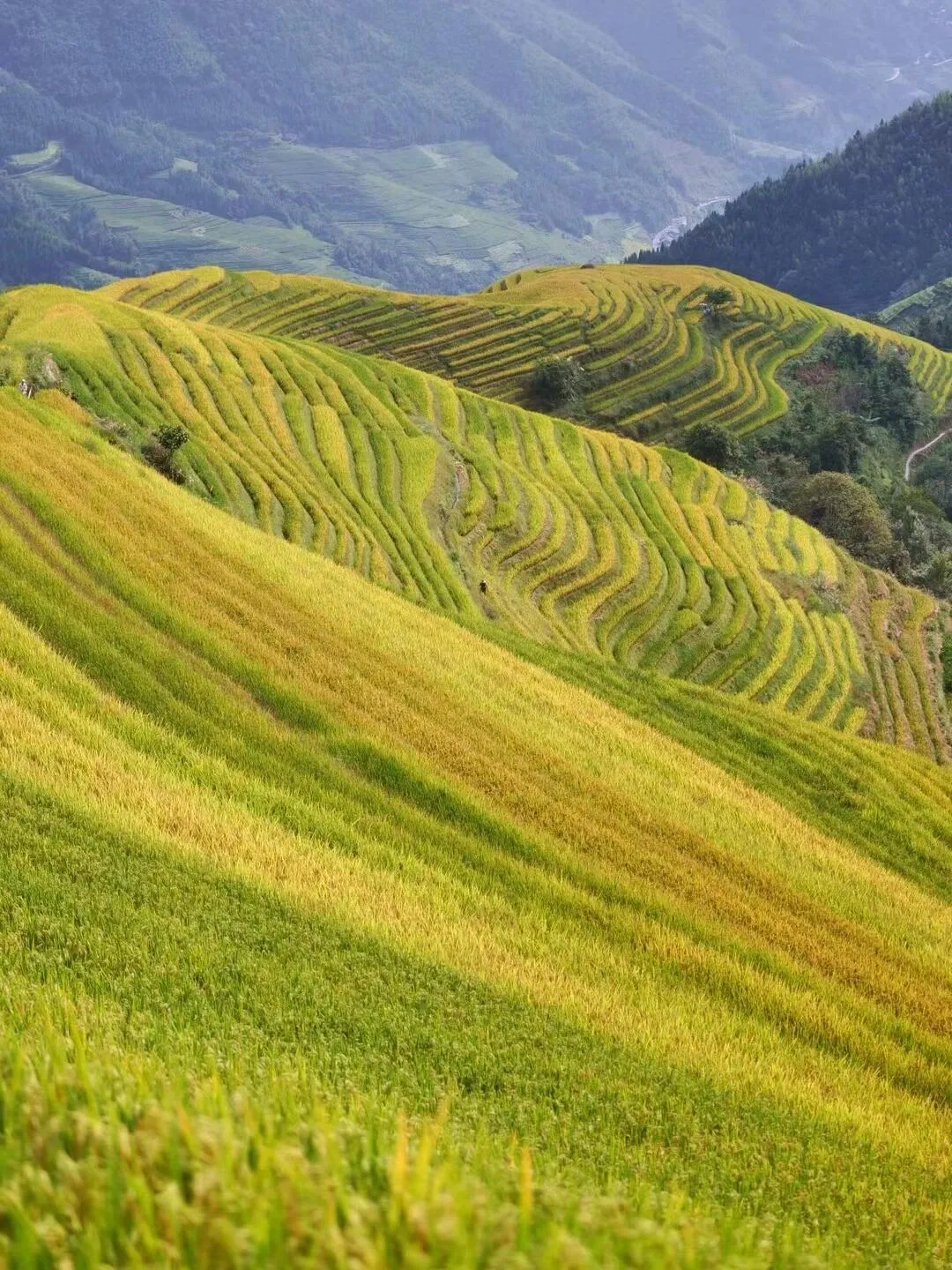 广西桂林的 龙脊梯田是一处不容错过的美景 ,尤其在每年9月至10月期间,景色更是令人惊叹。如果想避开国庆假期的人流,9月出发是个绝佳选择。这时候的梯田呈现出黄绿相间的双色,宛如一幅巨型油画,无论从哪个角度拍摄都能得到令人满意的照片。