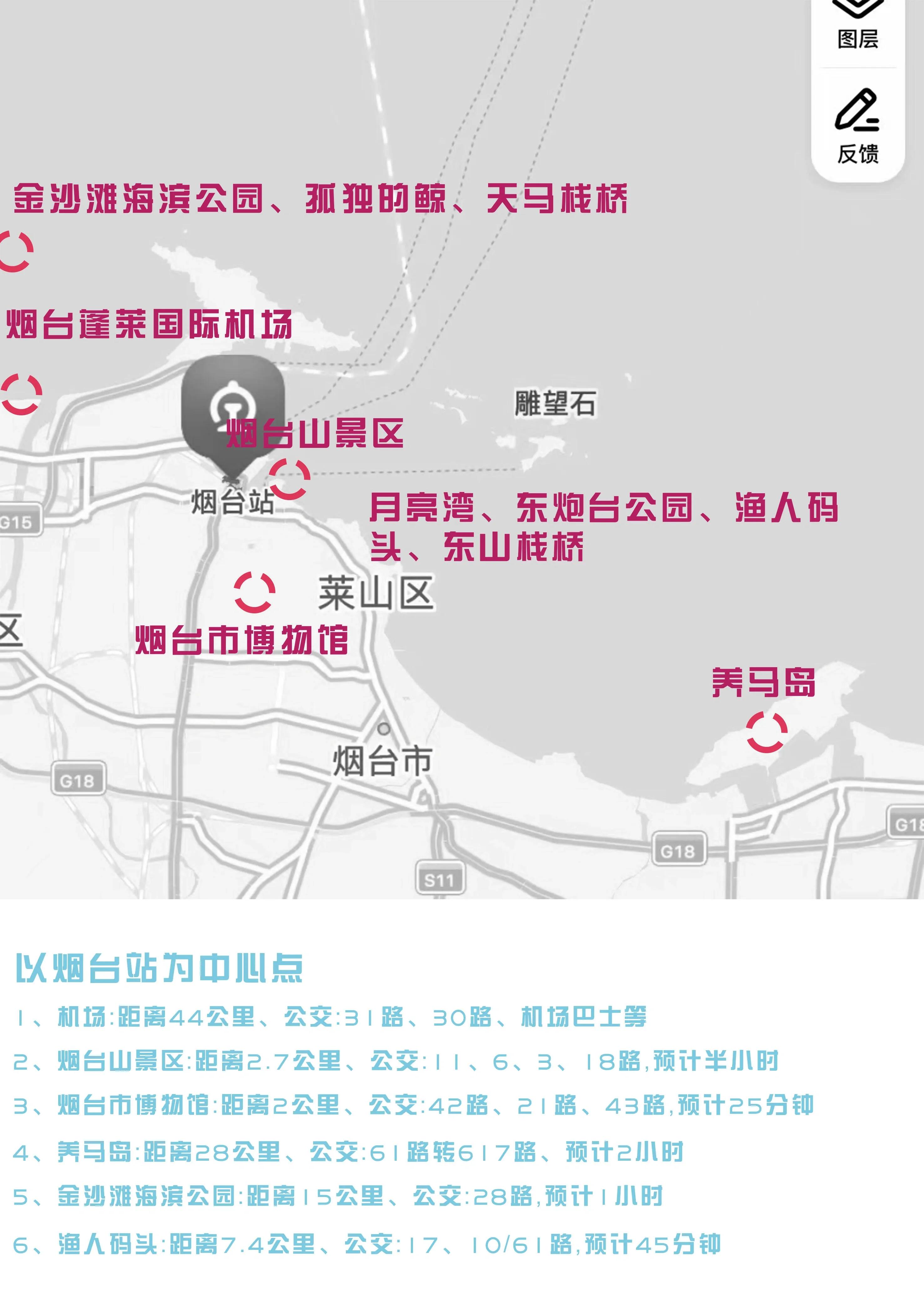 推荐景点包括烟台山、渔人码头、养马岛、17路公交车沿线景观和金沙滩海滨公园。交通以打车为主,性价比较高。烟台站位于市中心,适合乘坐高铁或火车的游客。需要特别注意的是,烟台天气较晒,一定要做好防晒措施。