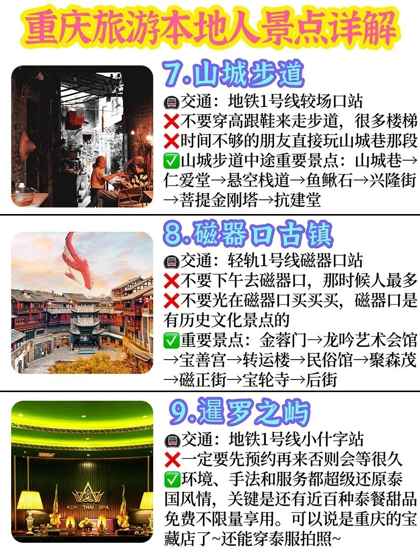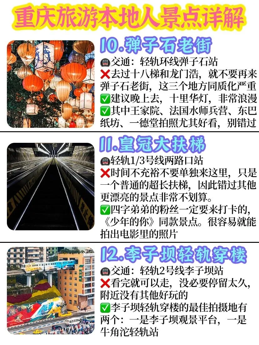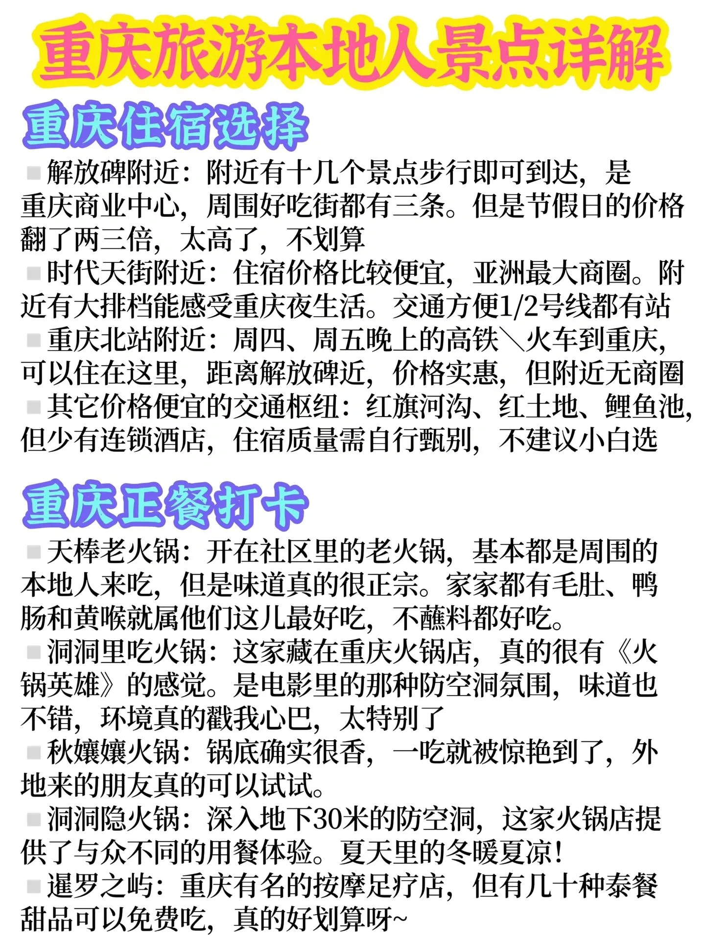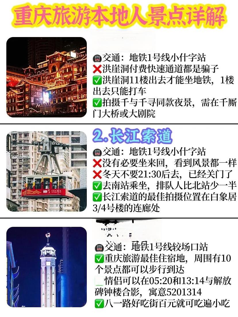 无论你选择哪里,都会有一段难忘的重庆之旅等待着你。记得收藏这份攻略,让山城之行更加愉快!