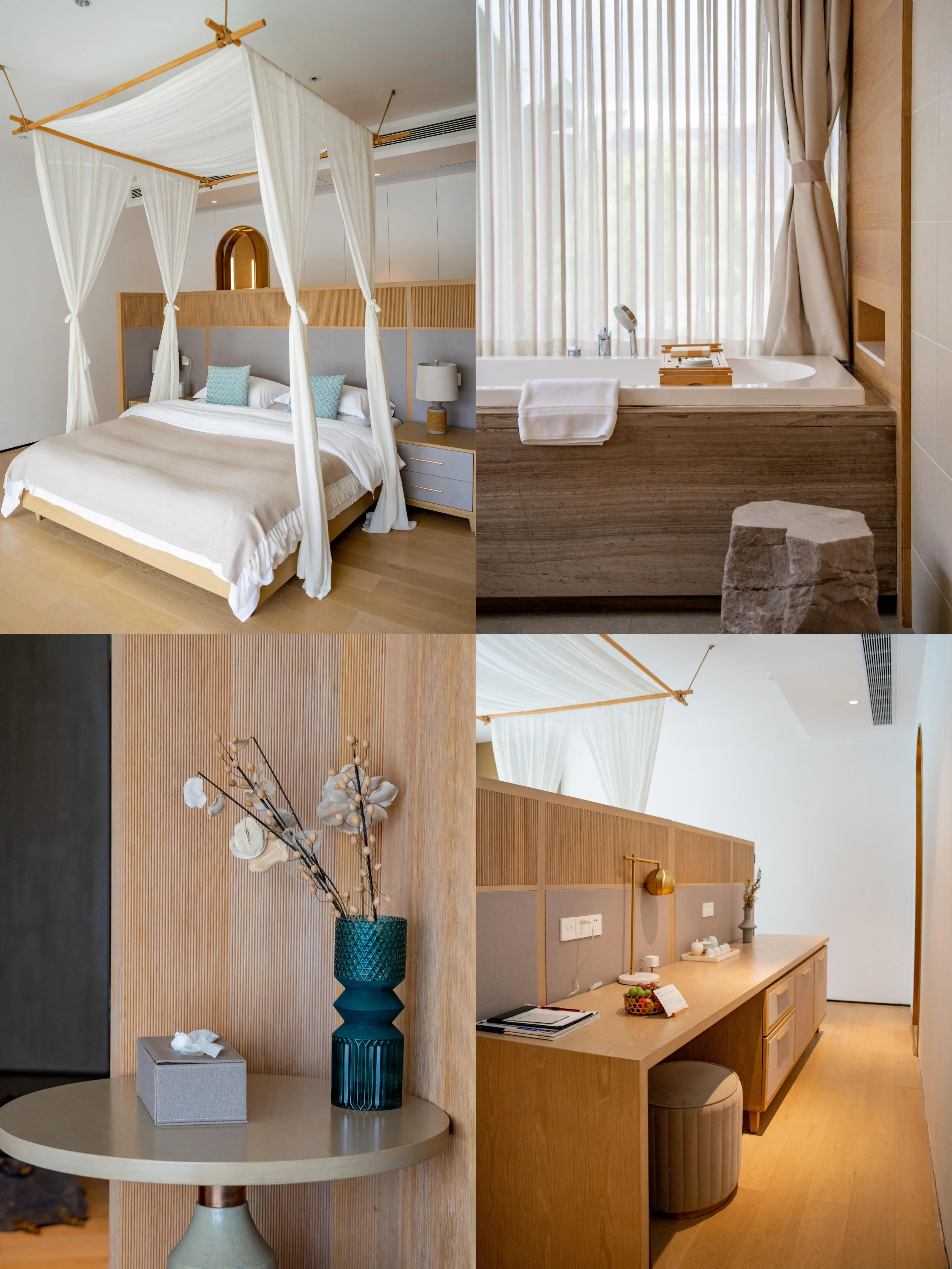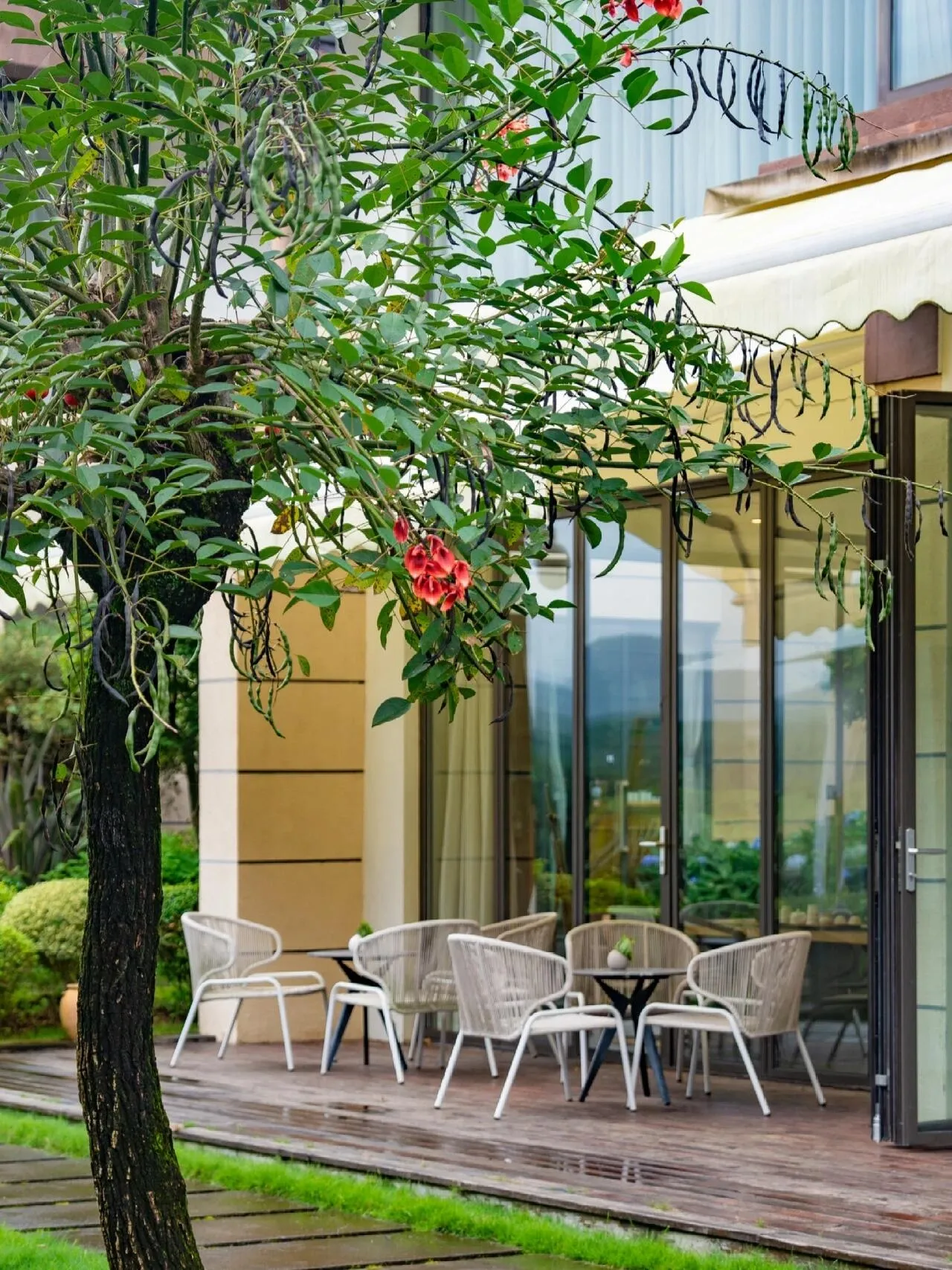 酒店的设计感既融合了现代的舒适,又不失自然的原始感,工作人员也热情友好。白天可以参加徒步活动,晚上可以在湖畔边安排一顿浪漫的晚餐,酒店还有森林下午茶,是下午休闲的好去处。