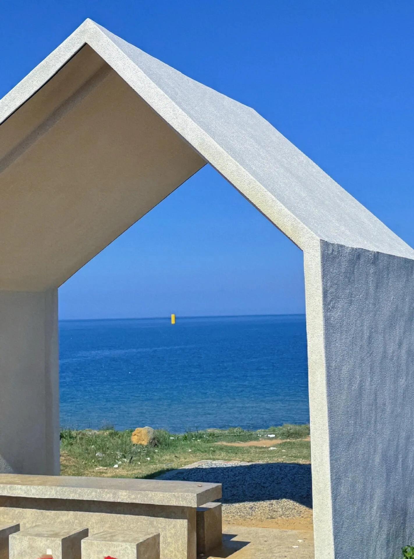 镜沙:门票免费,我们去了油画感相框打卡点“镜沙·星辰大海”(白色房框建筑,背景是蓝色大海,拍出来有种油画感)。
