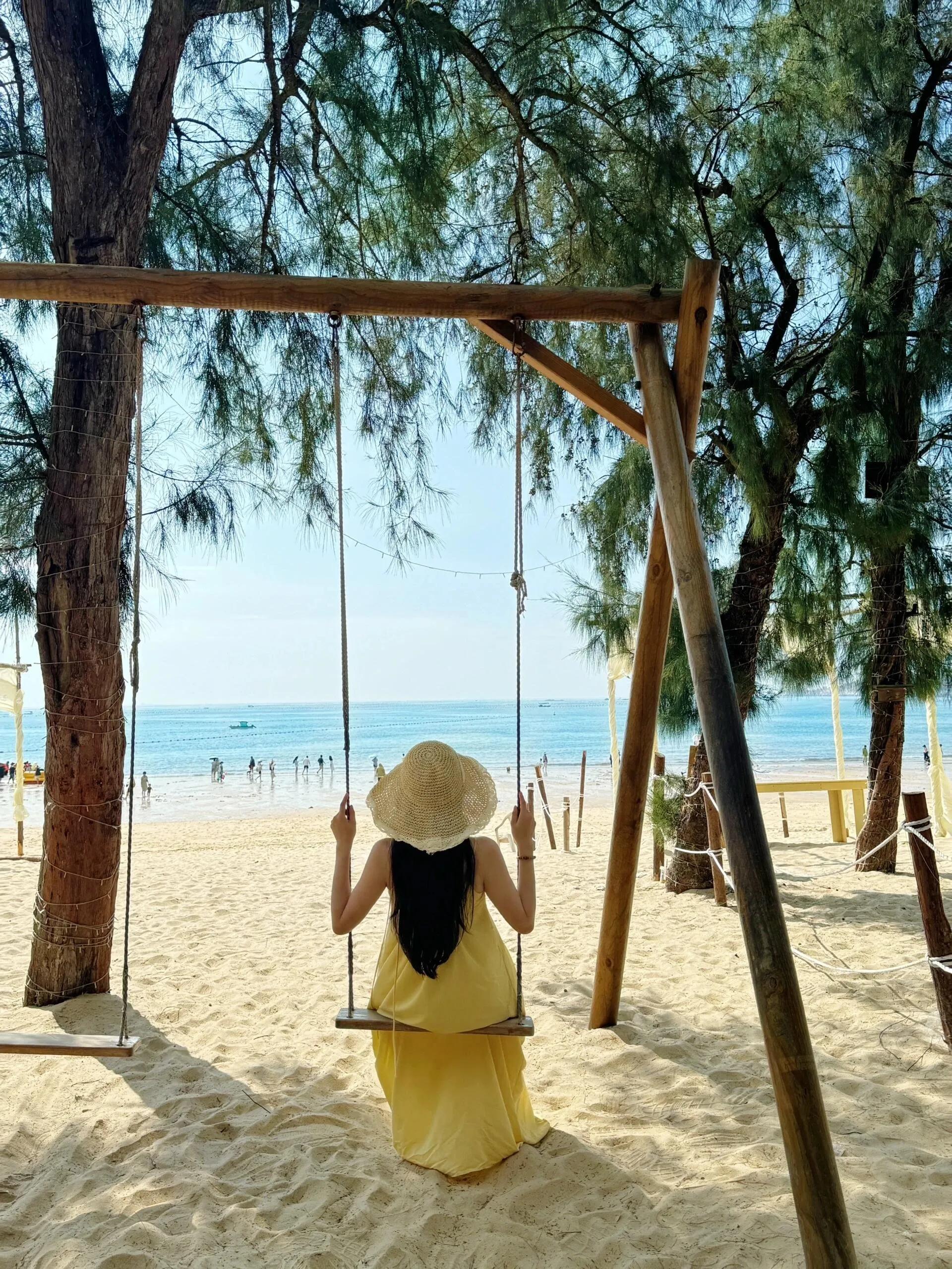 坛南湾:细软沙滩有秋千,度假风可拍照。