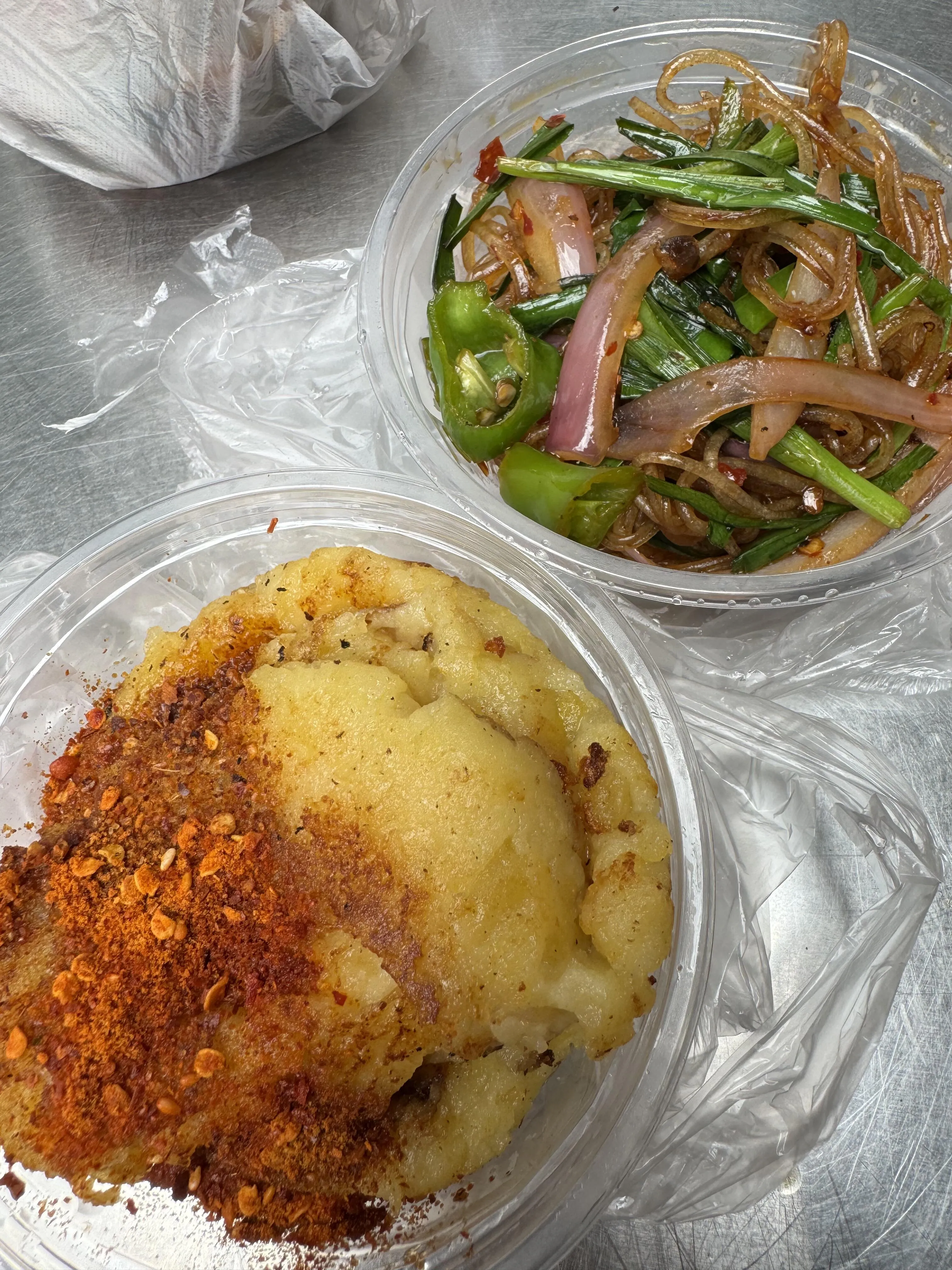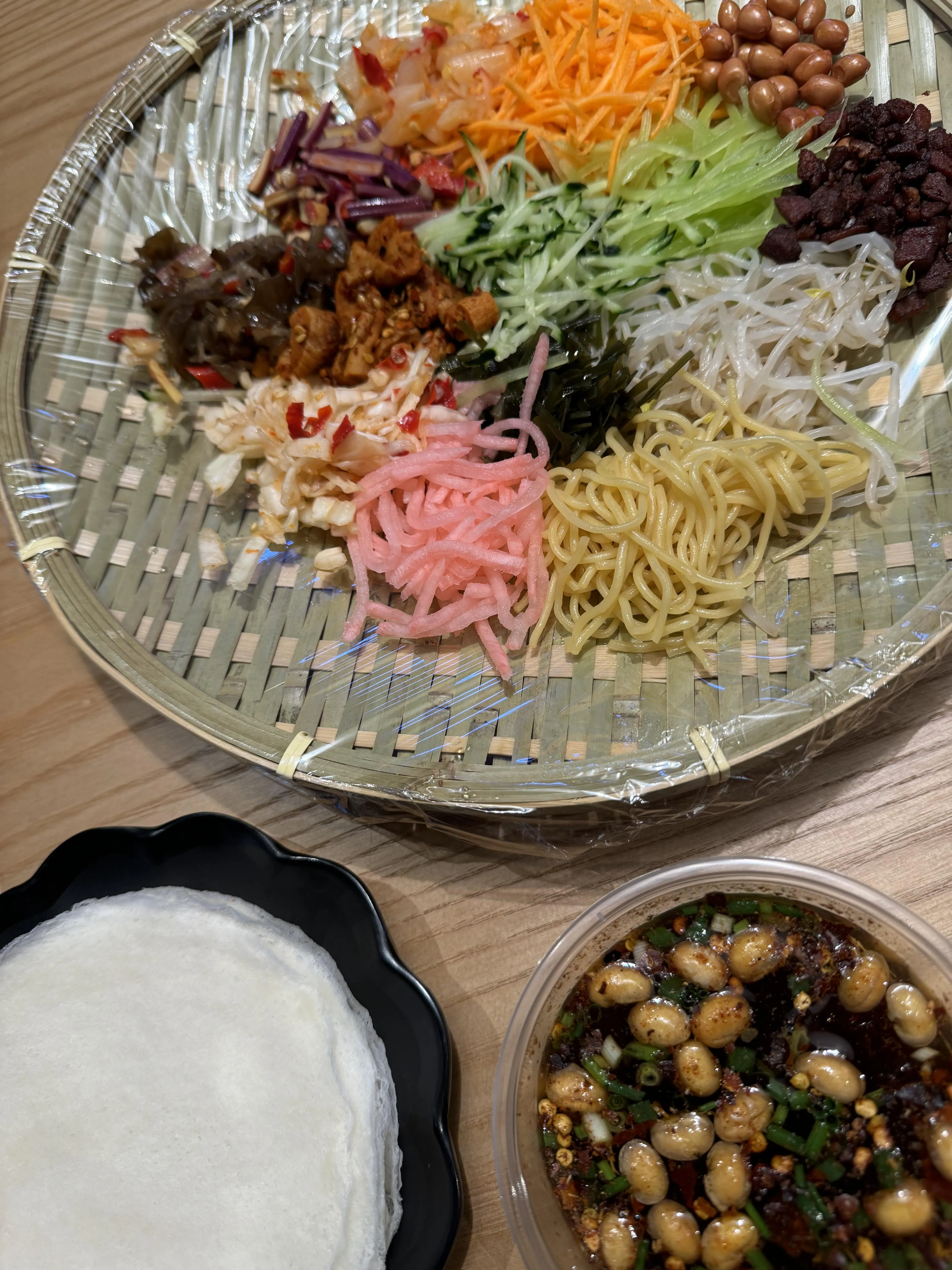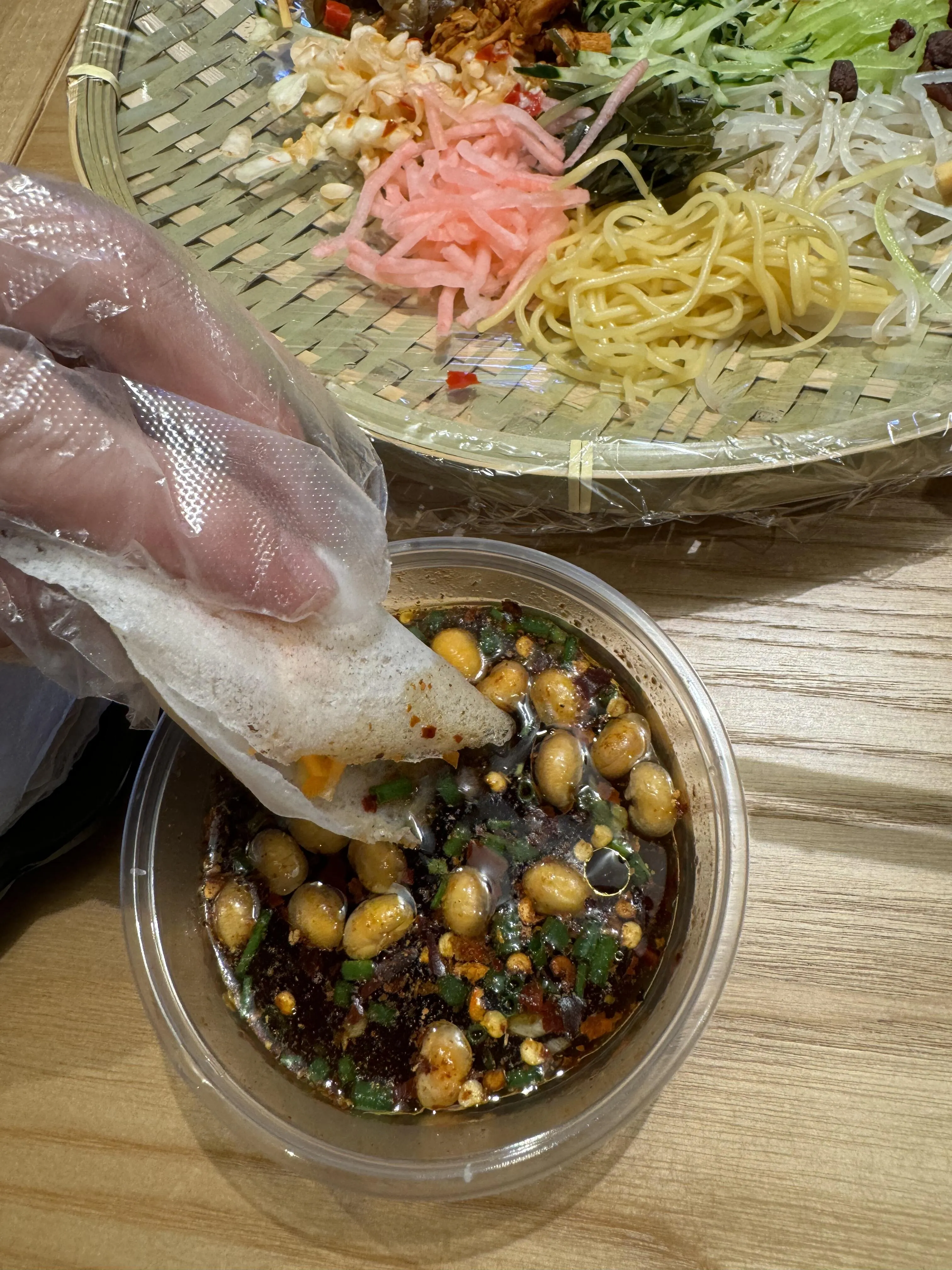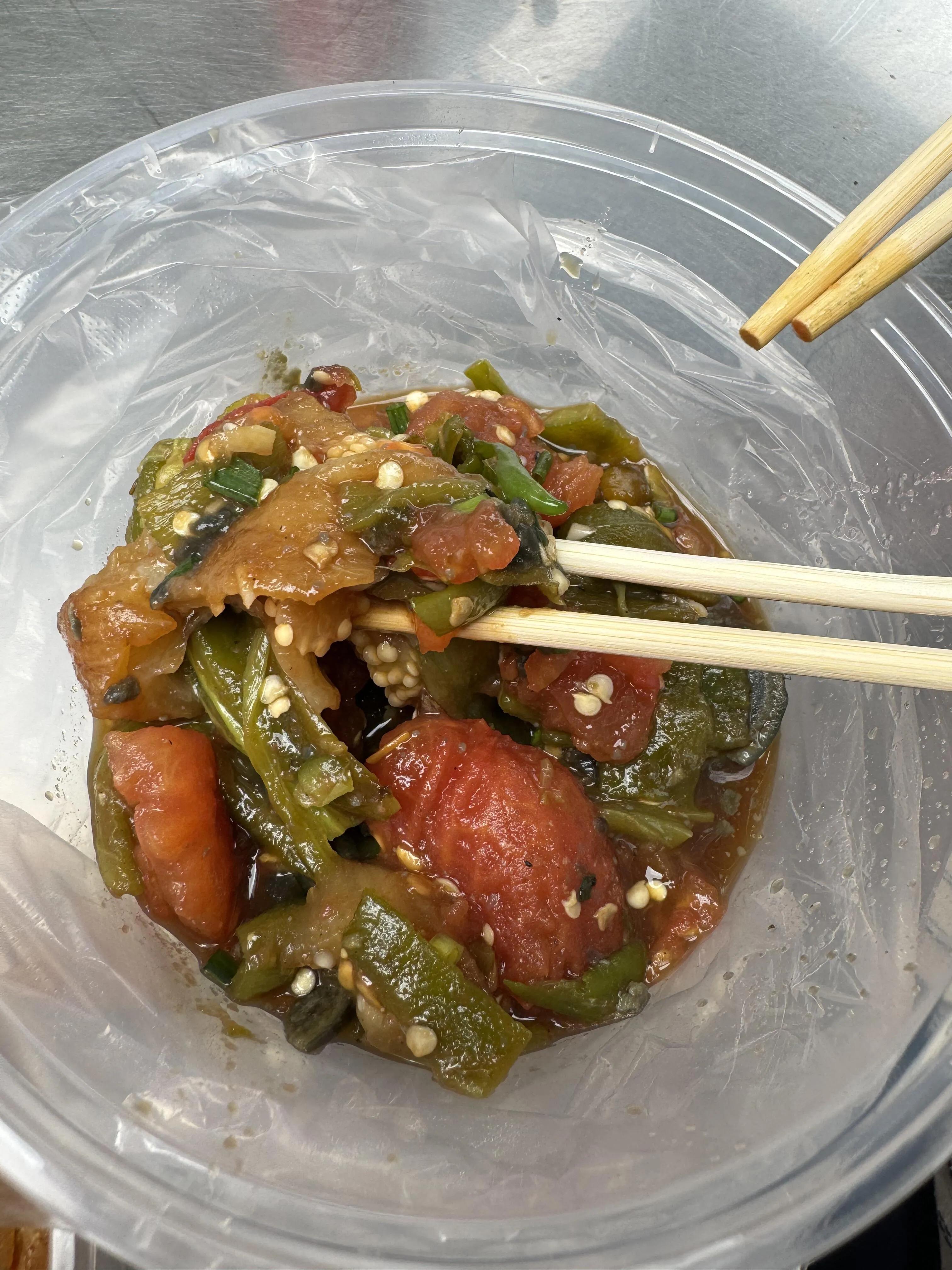 在 阿云朵仓的长桌美食区品尝了冰粉和娃娃丝(20元)。 娃娃丝类似北方的迷你版裹凉皮,蘸水食用味道更佳。 整体而言,口感一般。