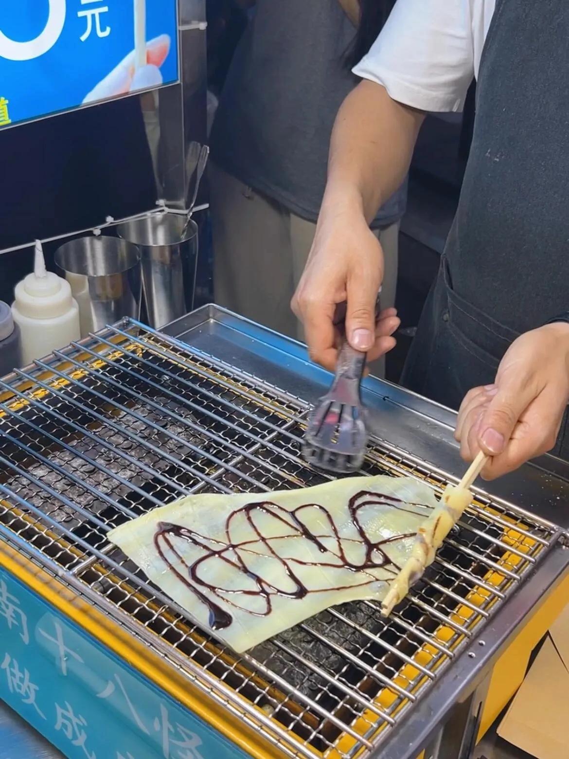 烤小肠:外焦里嫩,口感有嚼劲,上面的酱汁香而不腻。