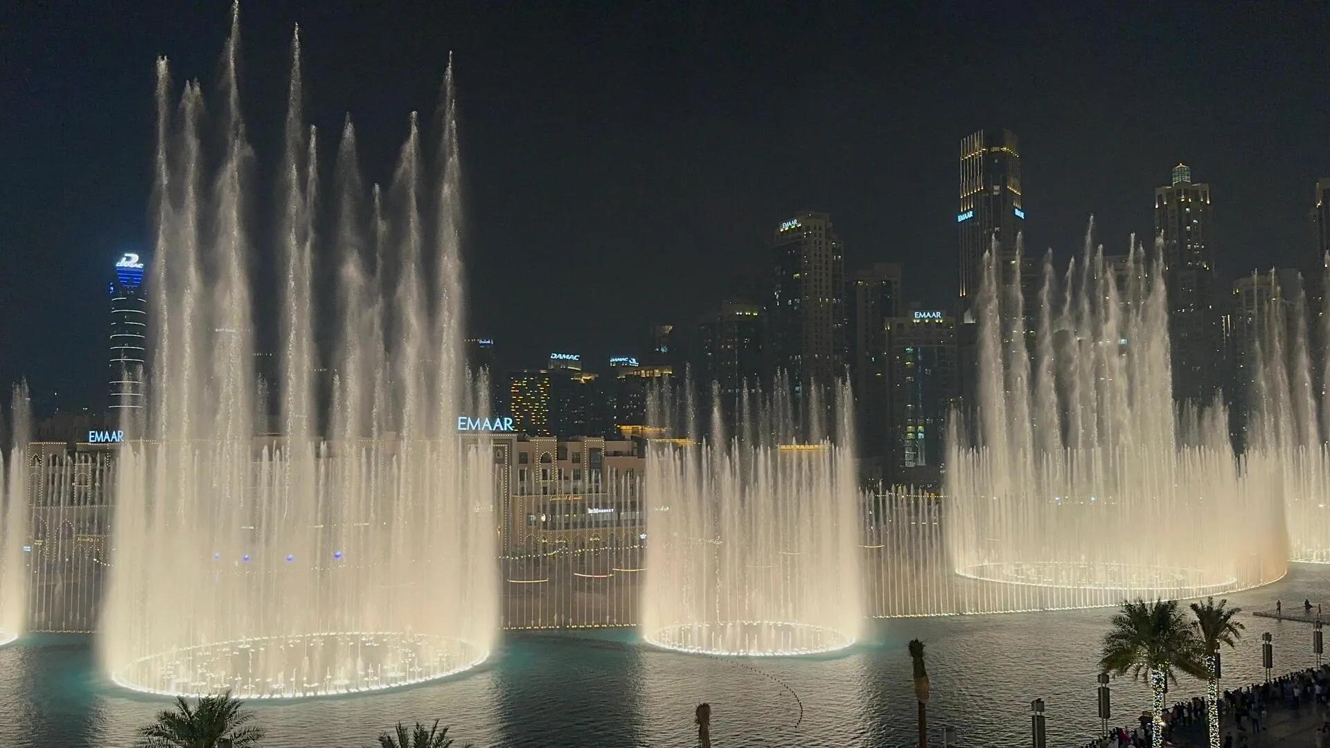 Dubai Mall的喷泉表演是不容错过的景点。18点后每整点都有表演,21点后每半小时一场。我们选择在L'ETO甜品店的露台欣赏,边品尝美味甜点边观赏绚丽的灯光秀,体验很棒。