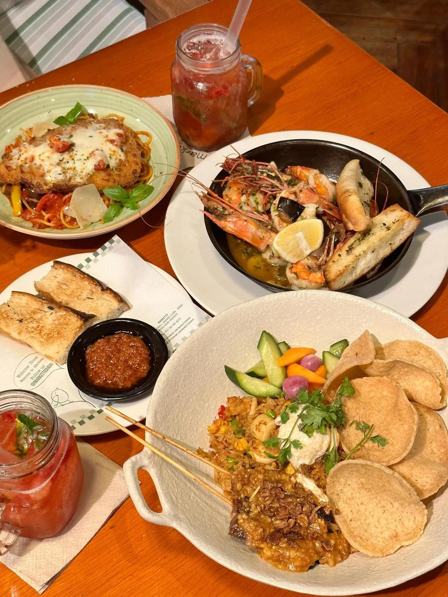 说到美食,强烈推荐Dubai Mall里的Markette餐厅。我们点了Java炒饭和大红虾,味道都相当出色。Java炒饭分量很足,两个女生share都够了。大红虾个头惊人,一盘有5只,吃得很过瘾。