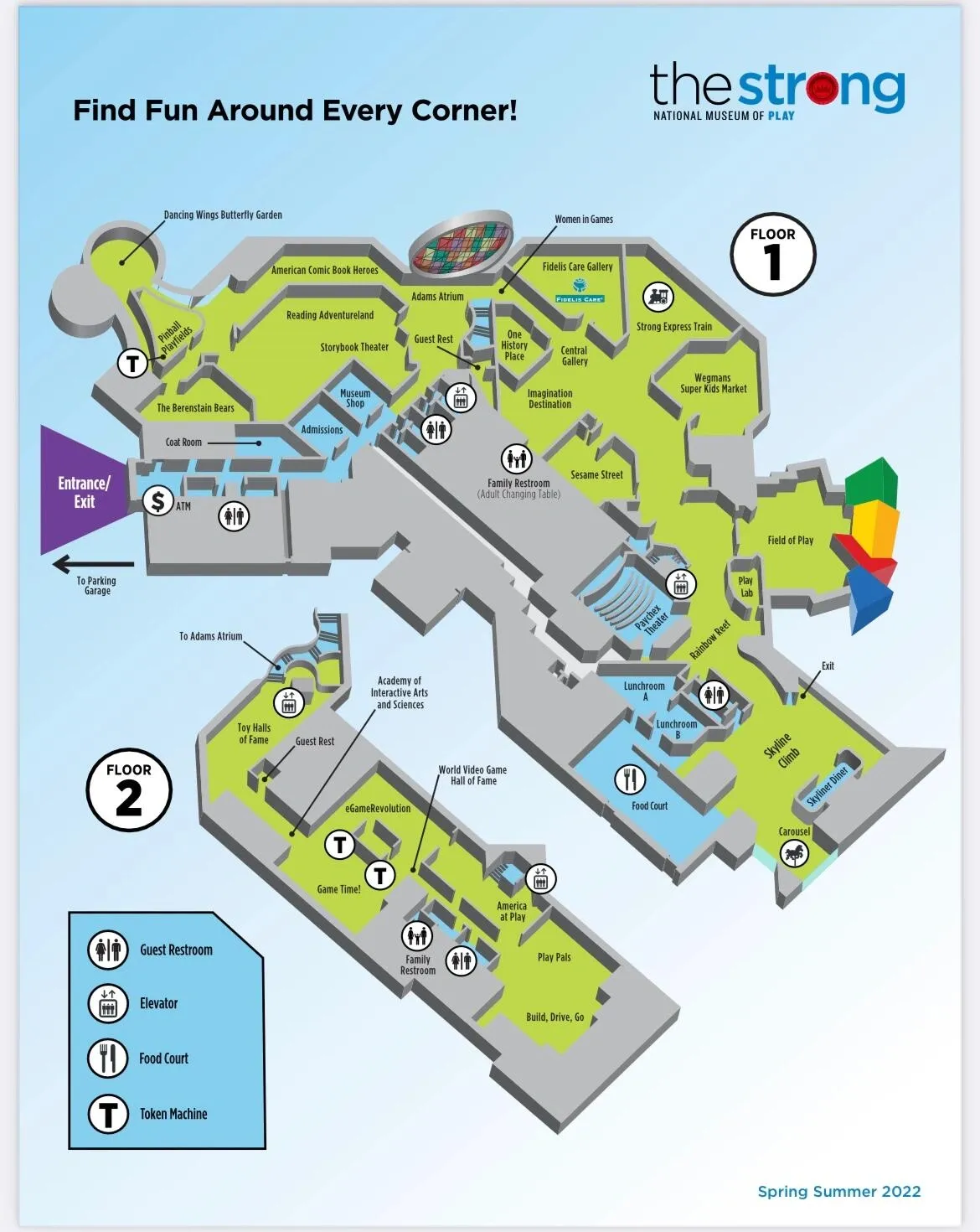 The Strong National Museum of Play 是一个遛娃必去的天花板级景点!一天根本不够玩,强烈建议住一晚可以玩2天。这里位于纽约州罗切斯特市(1 Manhattan Square Dr, Rochester, NY),从多伦多开车大约3小时,经过尼亚加拉瀑布后还有1.5小时。过境后可以选择收费公路节省15分钟,或者走普通公路。