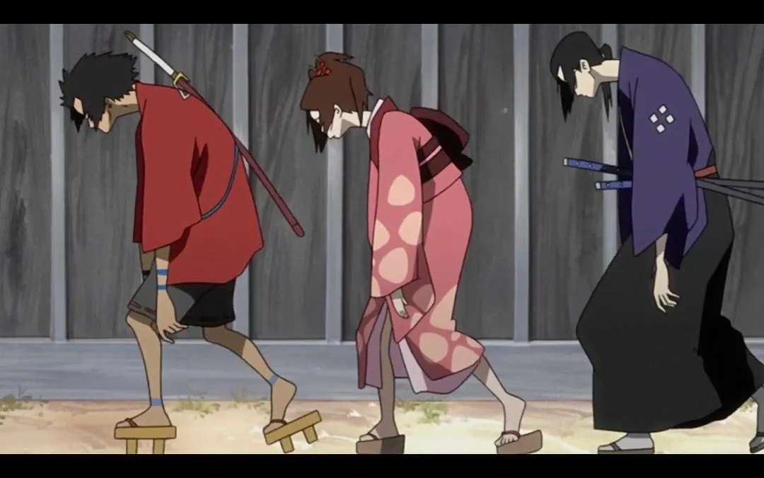《混沌武士》的故事背景设定在江户时代,讲述了三位主角——无幻、仁和风——在寻找一位“带着向日葵香味”的武士的过程中,经历了一系列冒险。然而,这部作品的魅力不仅仅在于其引人入胜的剧情,更在于它大胆的创意和独特的艺术风格。
