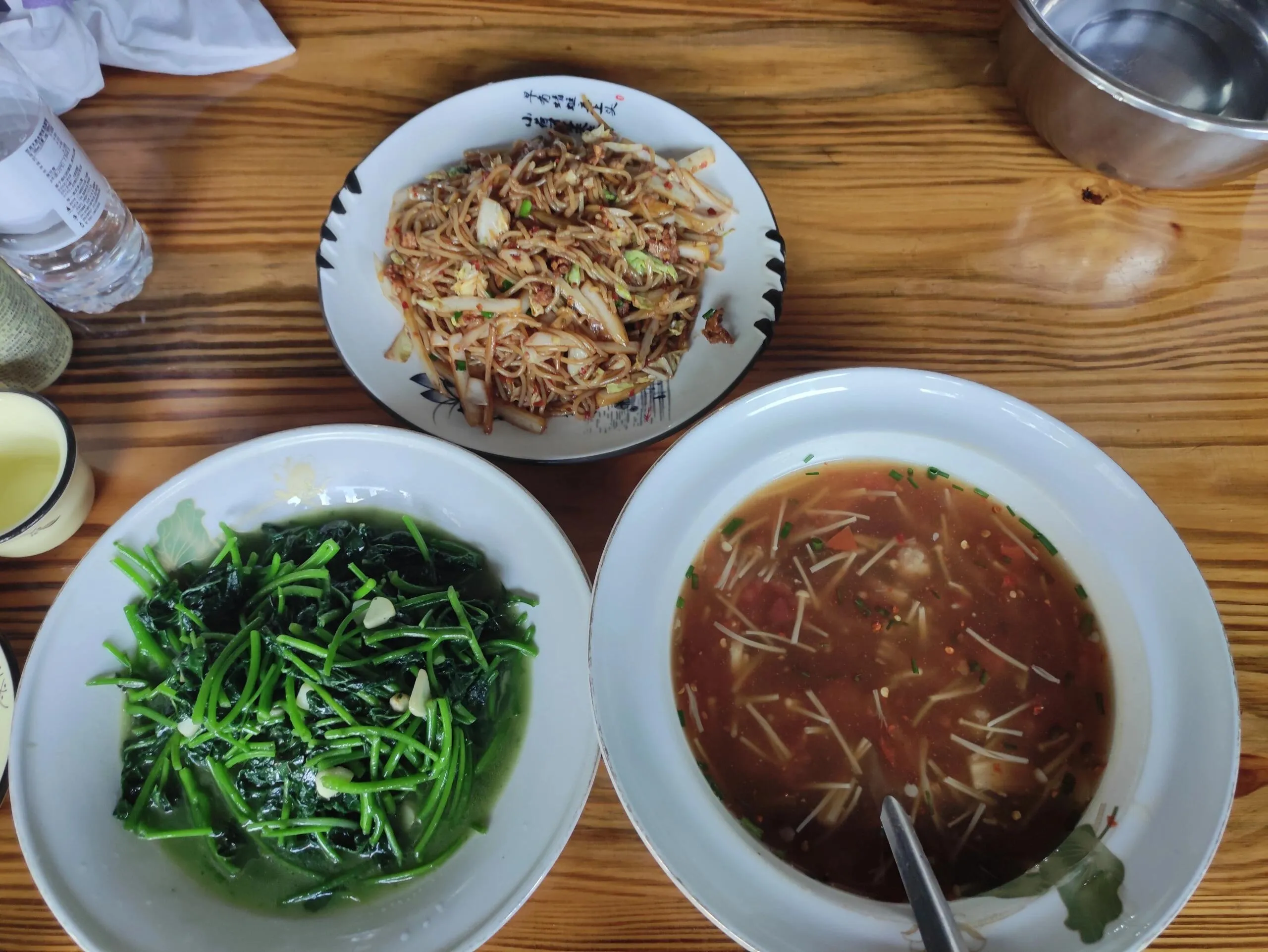 店名:三清老妈菜,位于金沙索道附近。从大巴下来到金沙索道售票处这段路格外繁华,但这家店不在人多的那条路,需要从另一边下去,走三五分钟就到了。