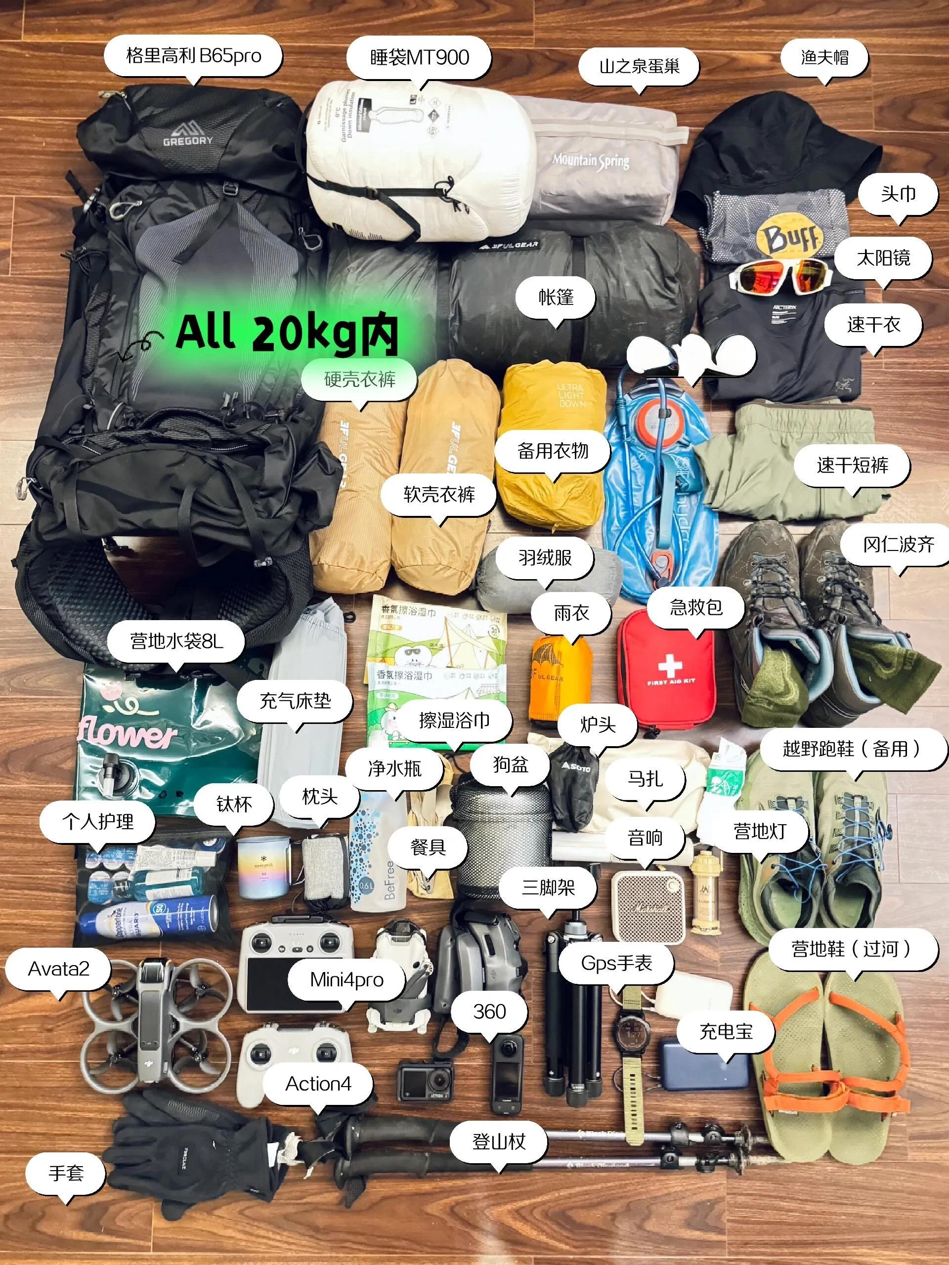 ,在此分享我的装备清单,希望能为其他计划徒步的朋友提供参考。