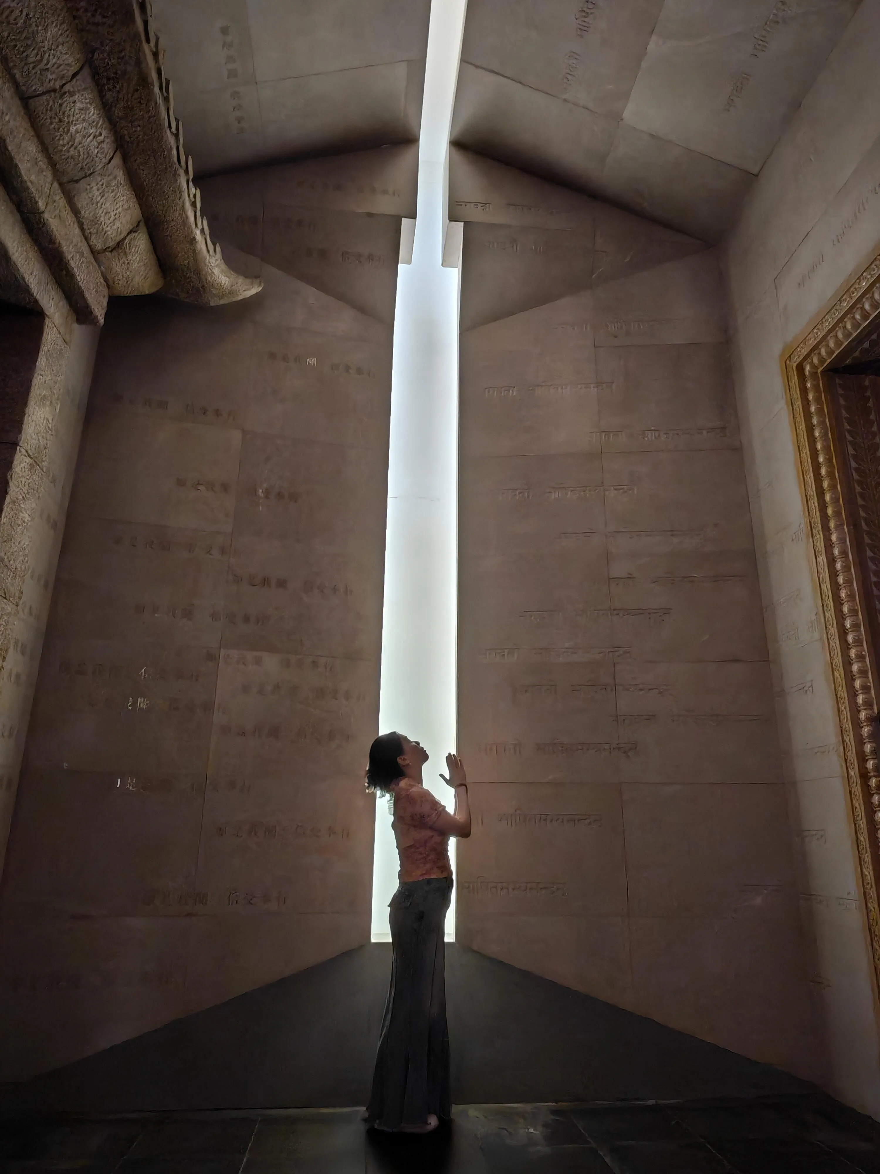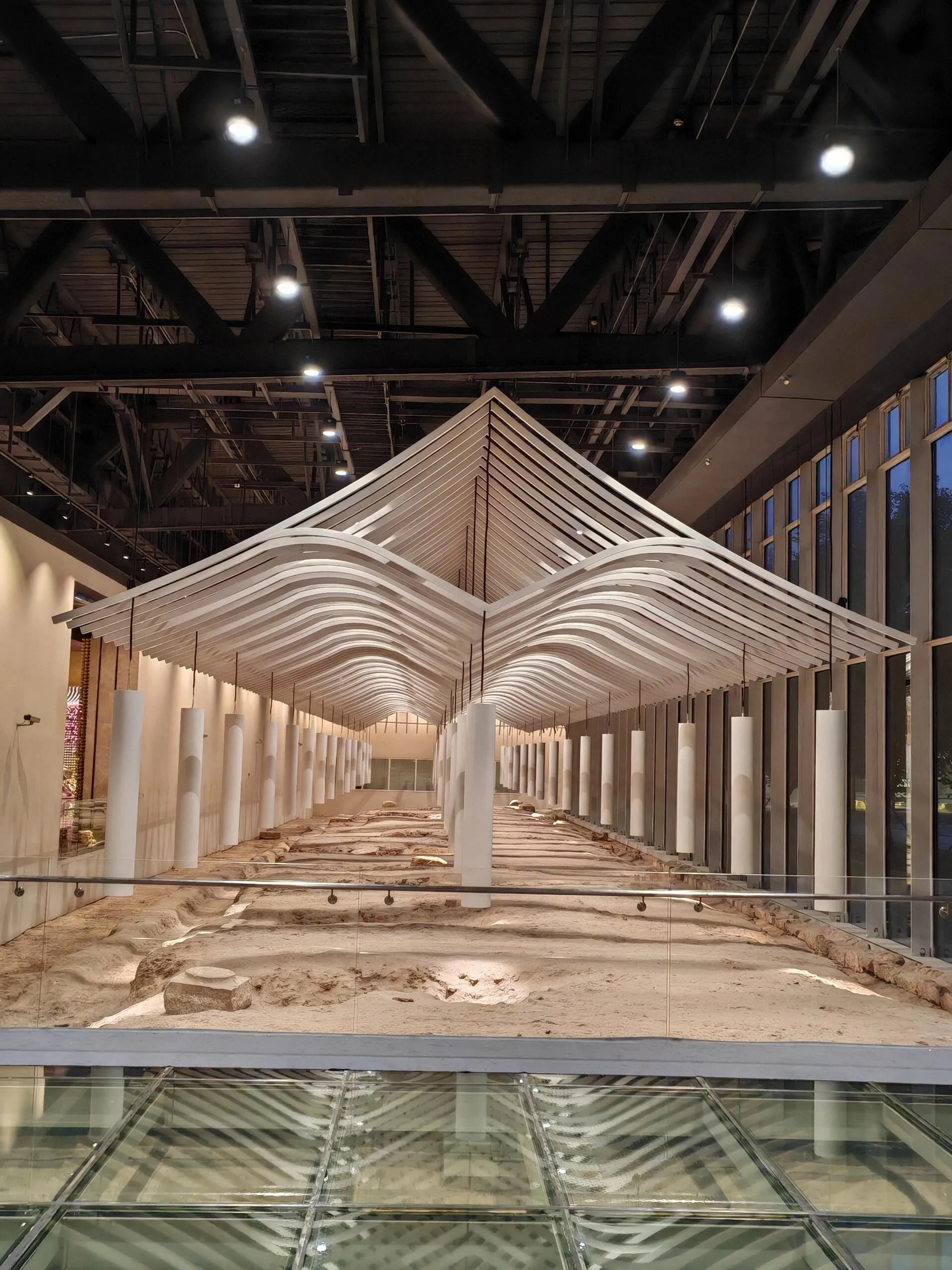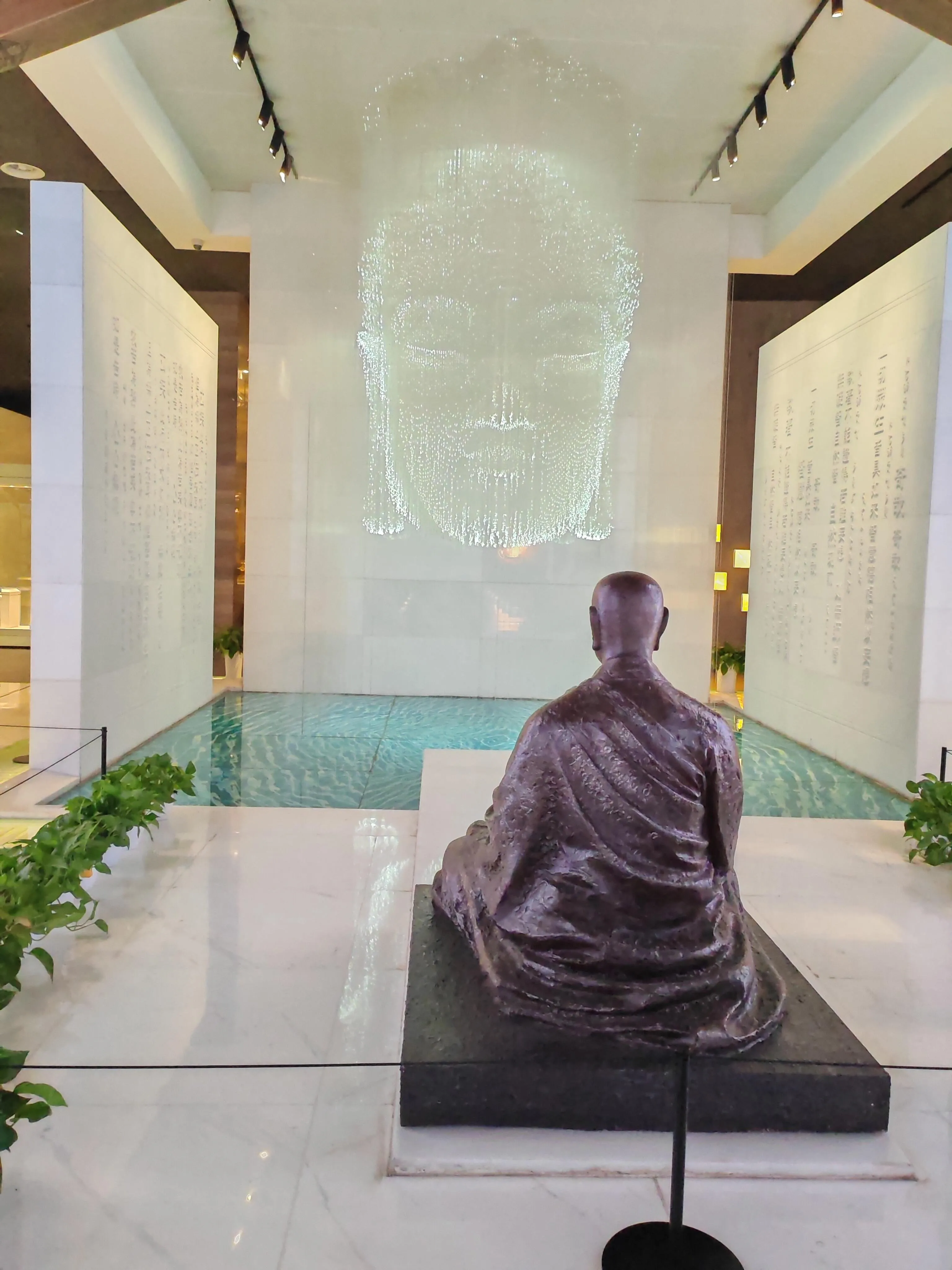 北馆区域设计独特,包括光浴区、数字化长干佛脉模型展示、“千年对望”展区等 。其中“千年对望”展区两侧的8根琉璃立柱寓意佛祖八相成道,步道上的7朵莲花象征7步生莲。琉璃拱门上的六拏具雕刻展现了精湛的工艺。