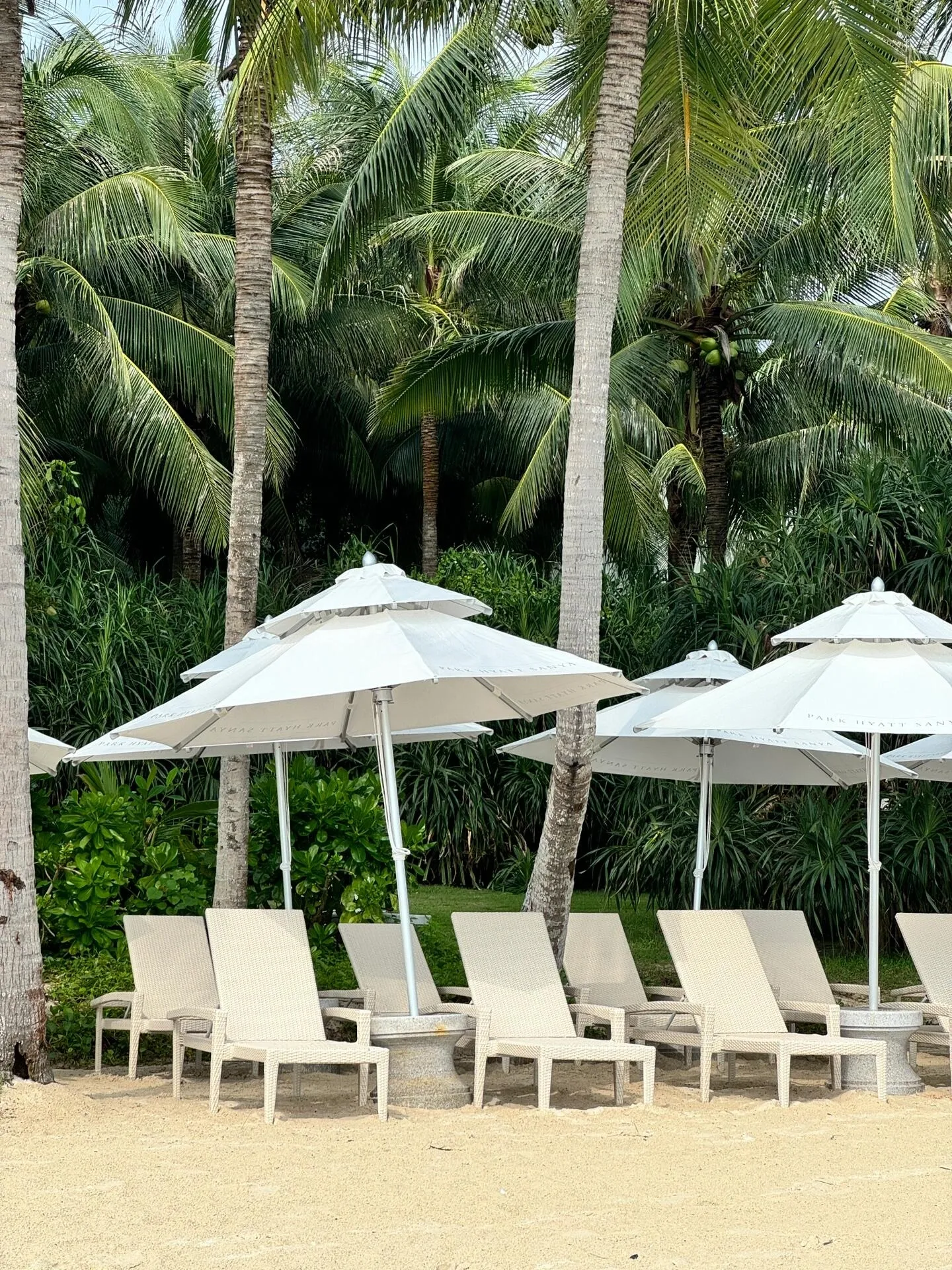 关于柏悦酒店,它的设计其实并不像网上所说的那么老气。虽然不及艾迪逊那么年轻简约,但整体给人一种高级大气的感觉。酒店占地面积很大,像个迷宫,但距离沙滩却很近。130米长的游泳池也紧邻沙滩,非常方便。 沙滩上还有供客人使用的躺椅 ,躺在上面看海晒太阳,绝对是此行最惬意的享受。