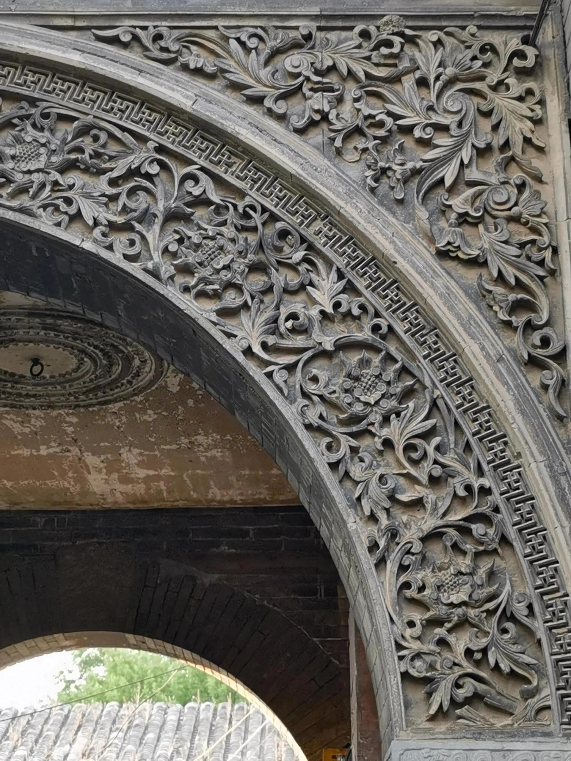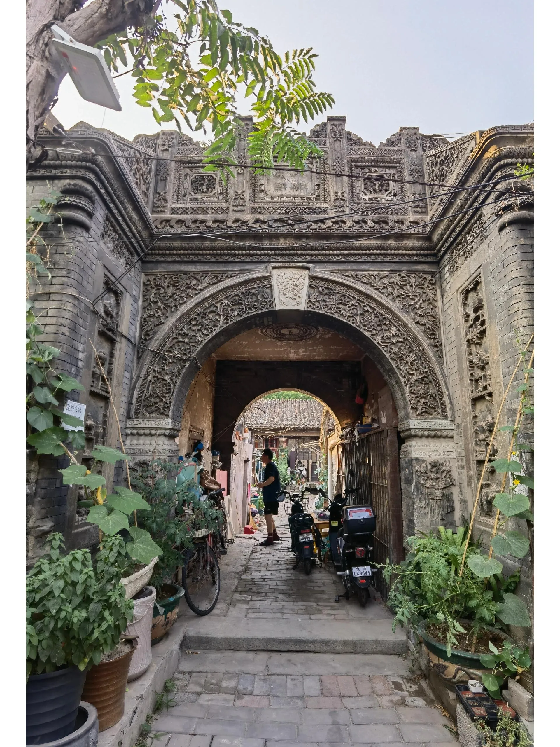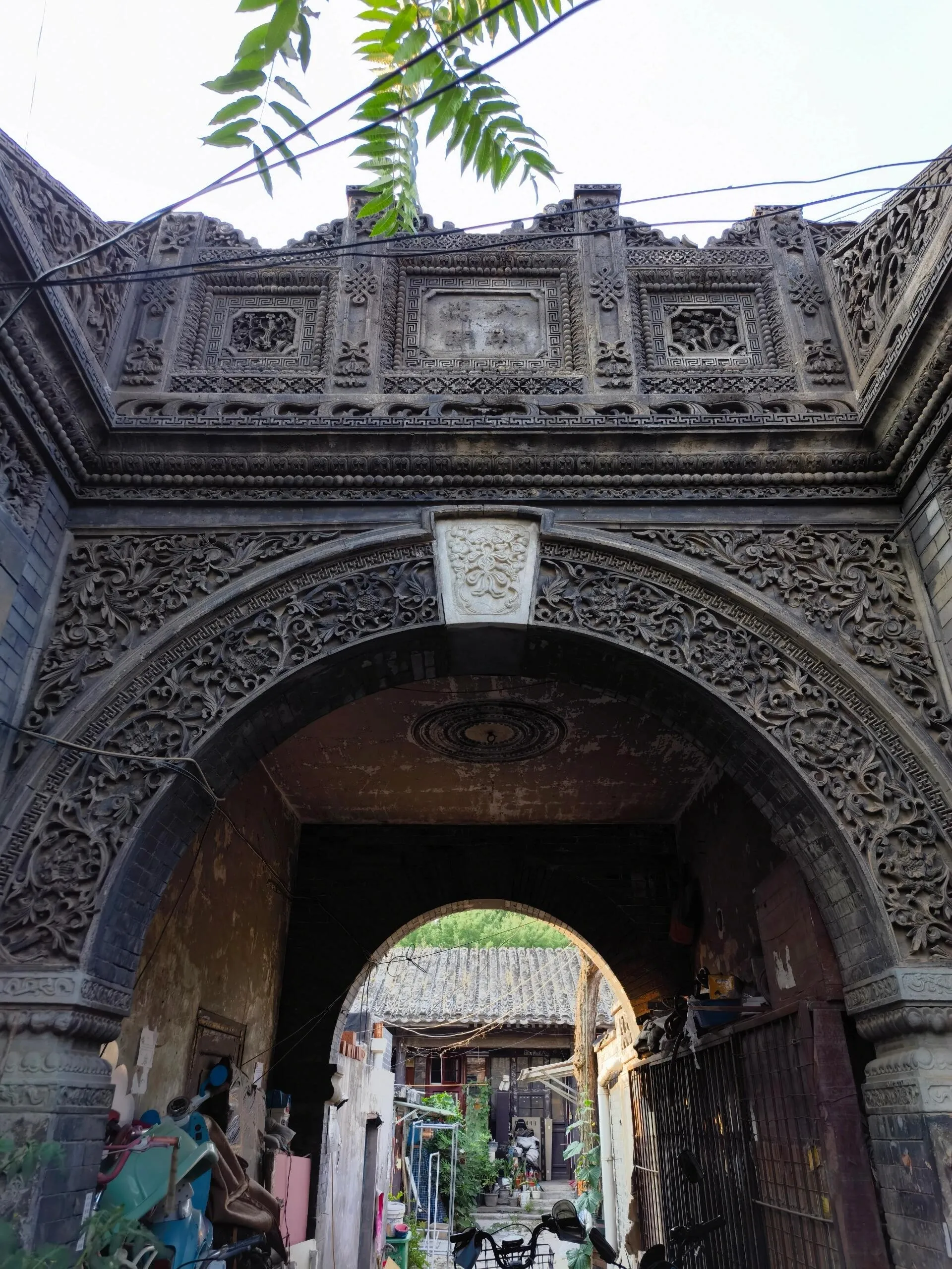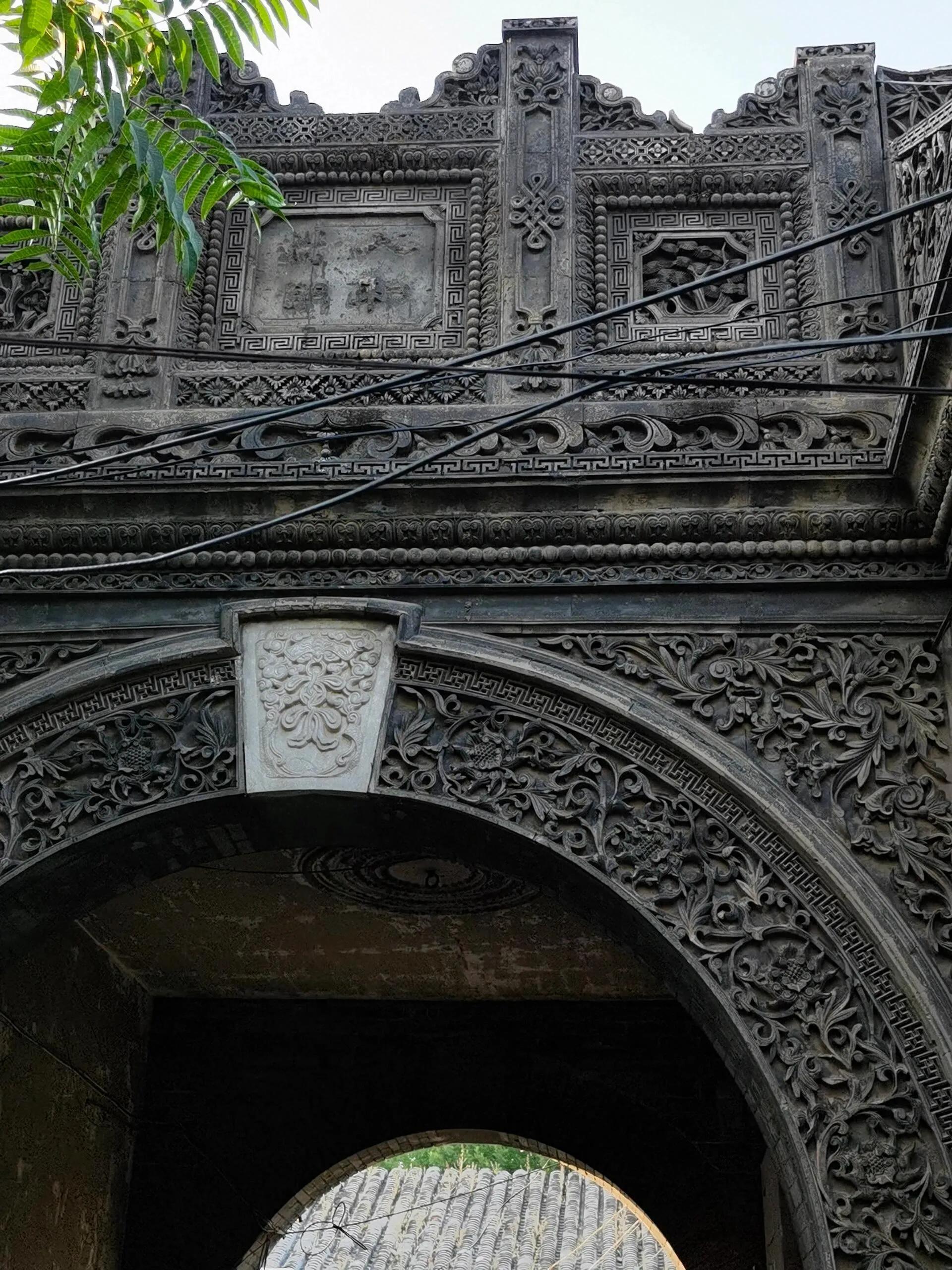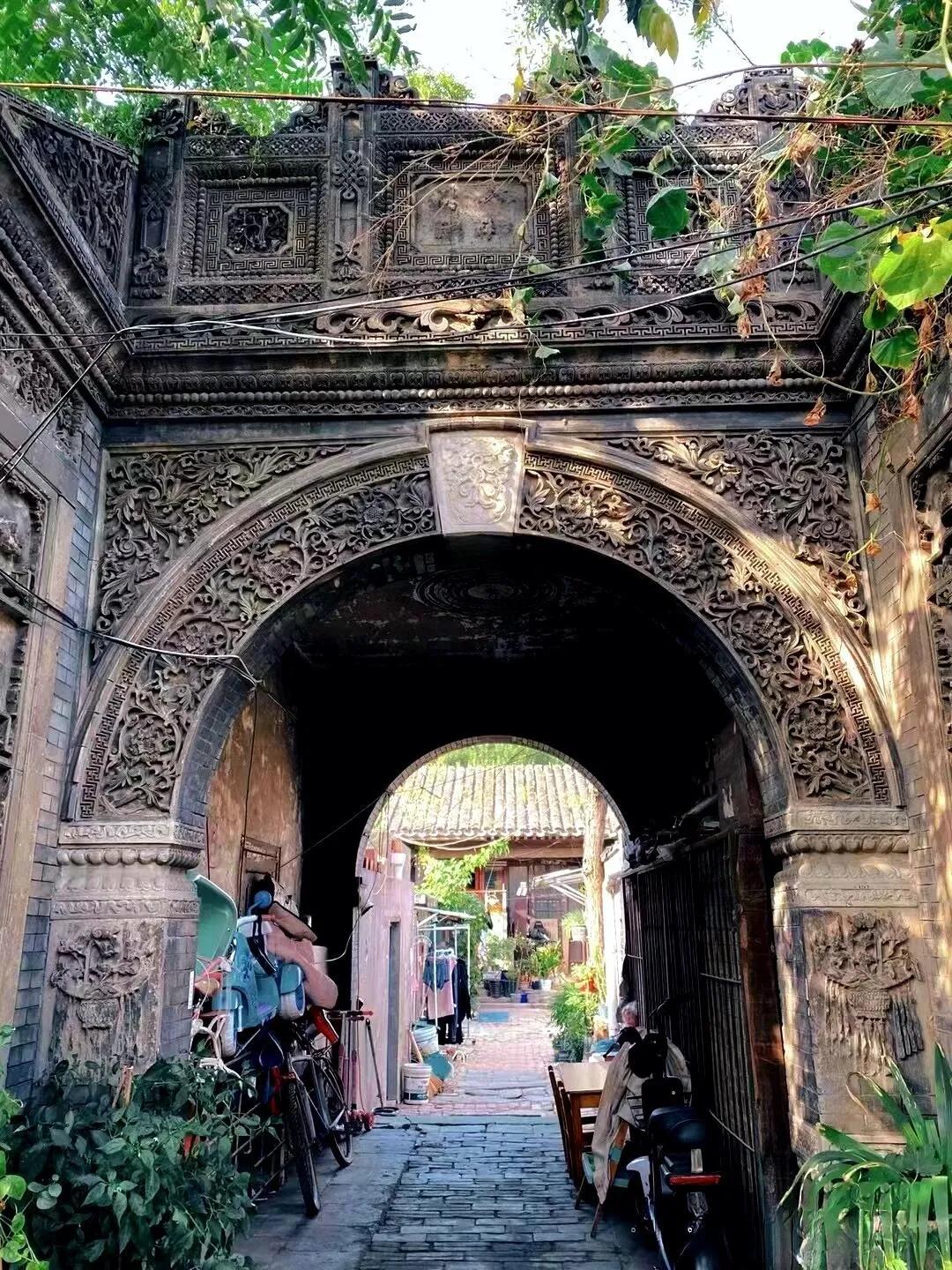 穿过四合院大门和一条小巷,眼前豁然开朗,一座精美绝伦的砖雕拱门呈现在眼前。虽然清末将军凤山的宅邸大部分已改建为现代民居,但这座保存完好的拱门仍然令人叹为观止。