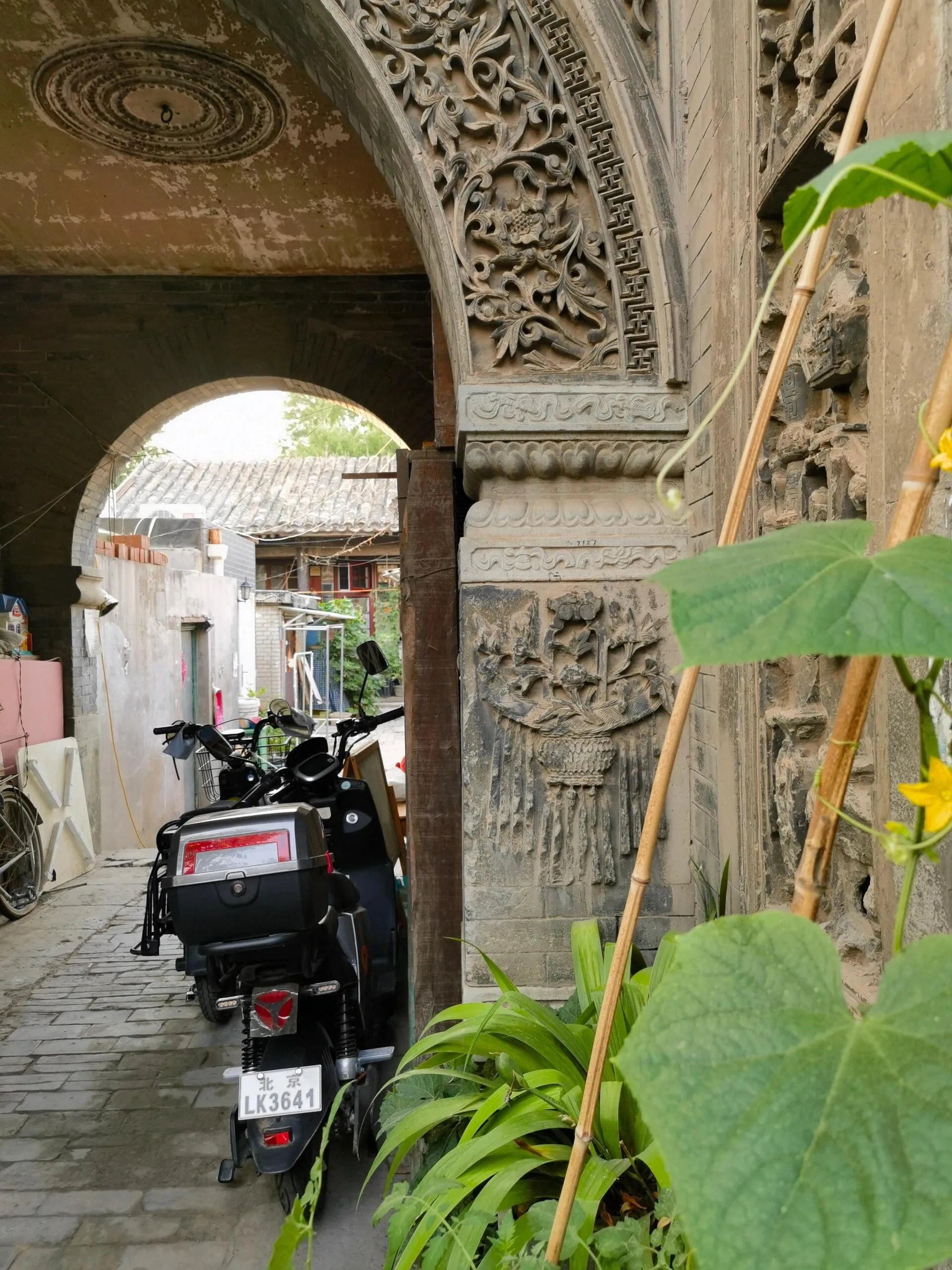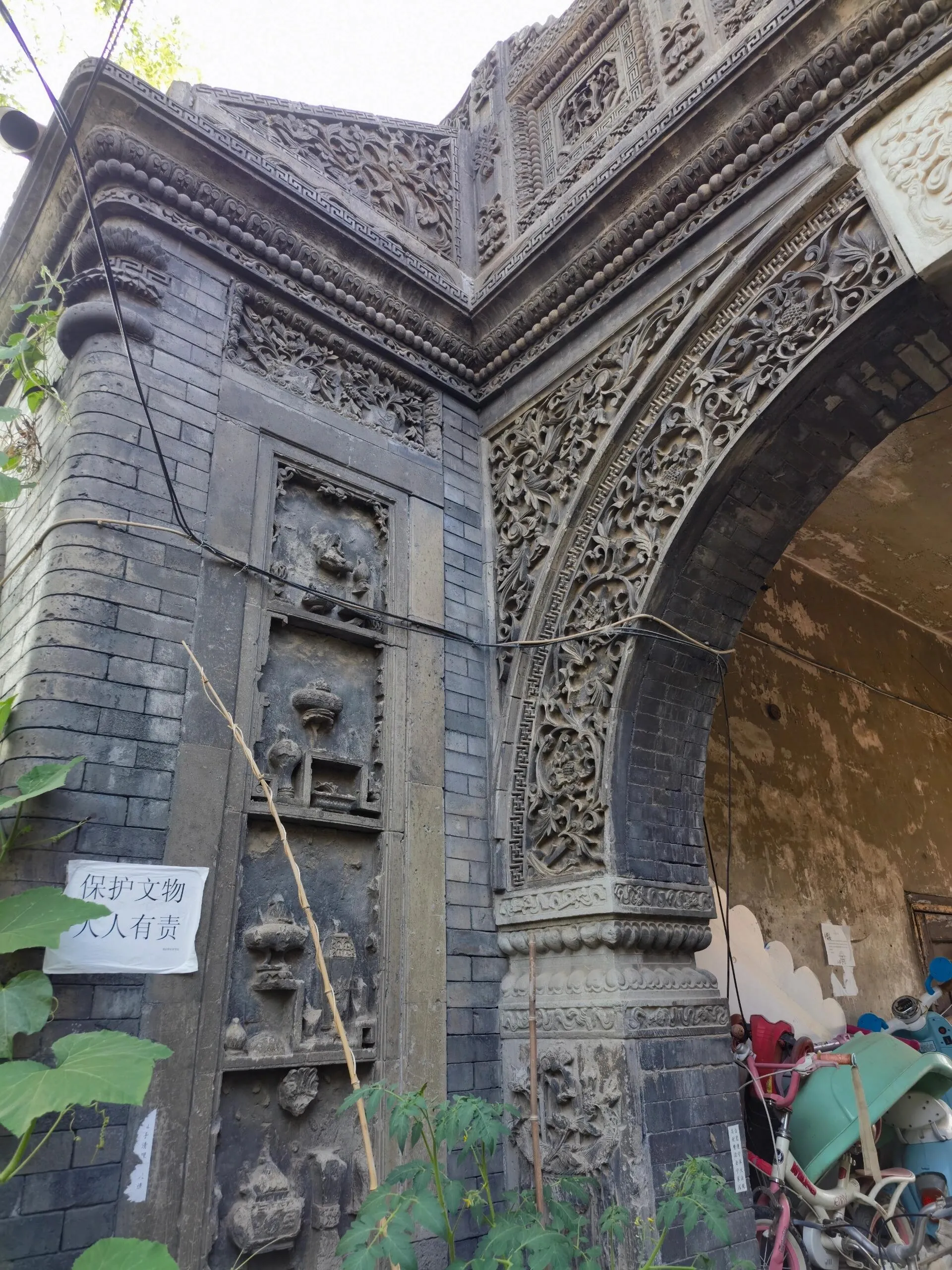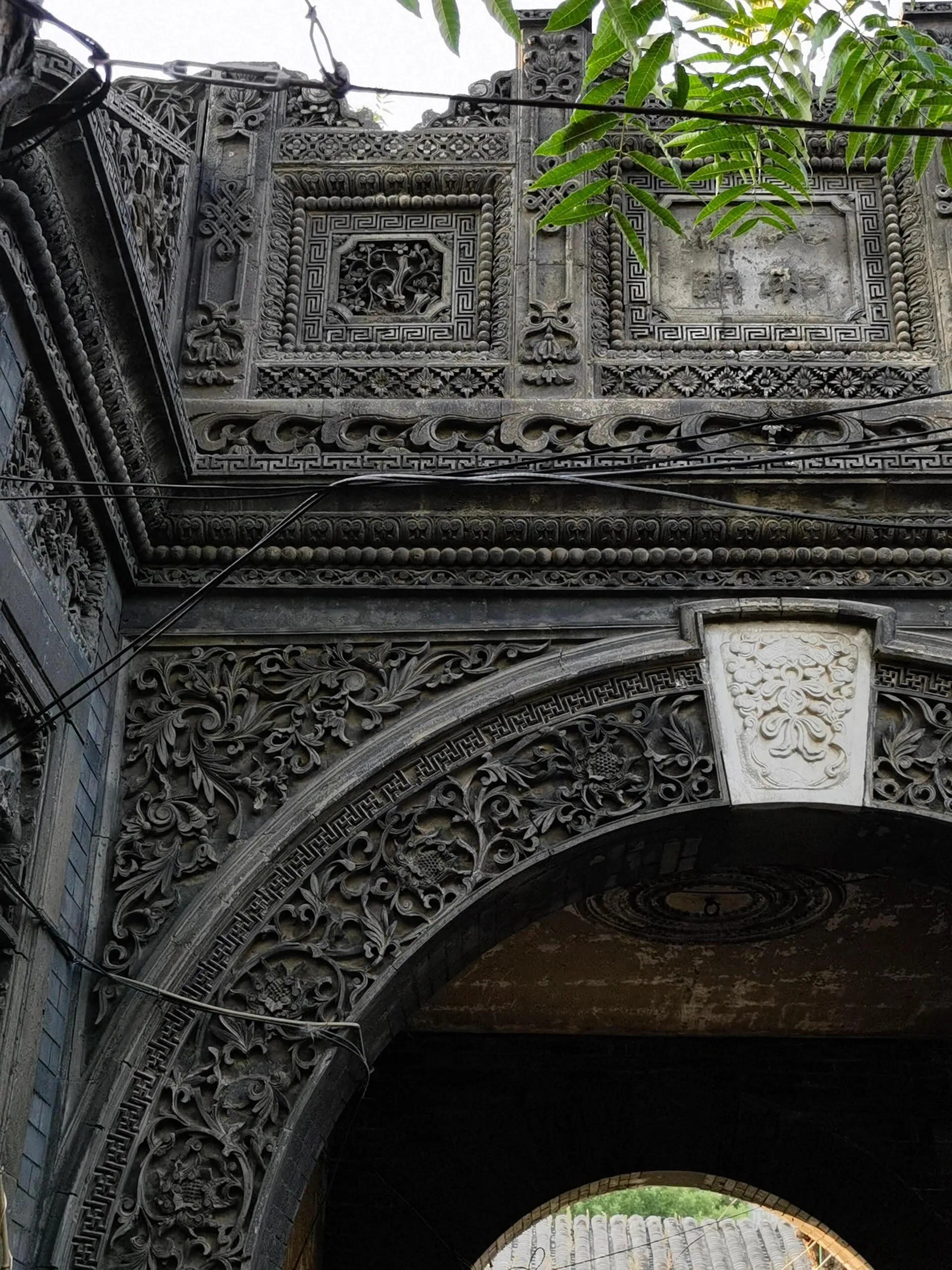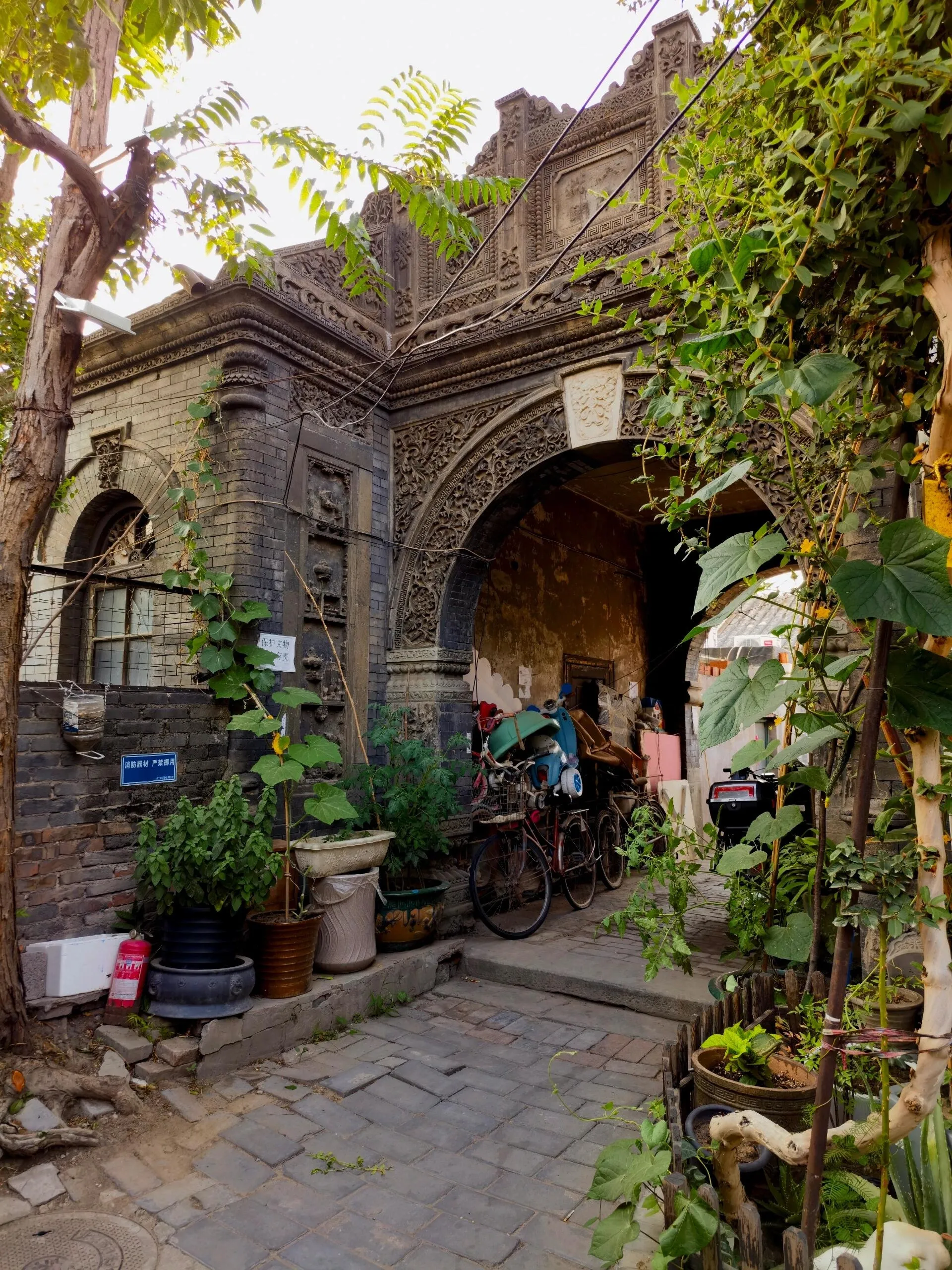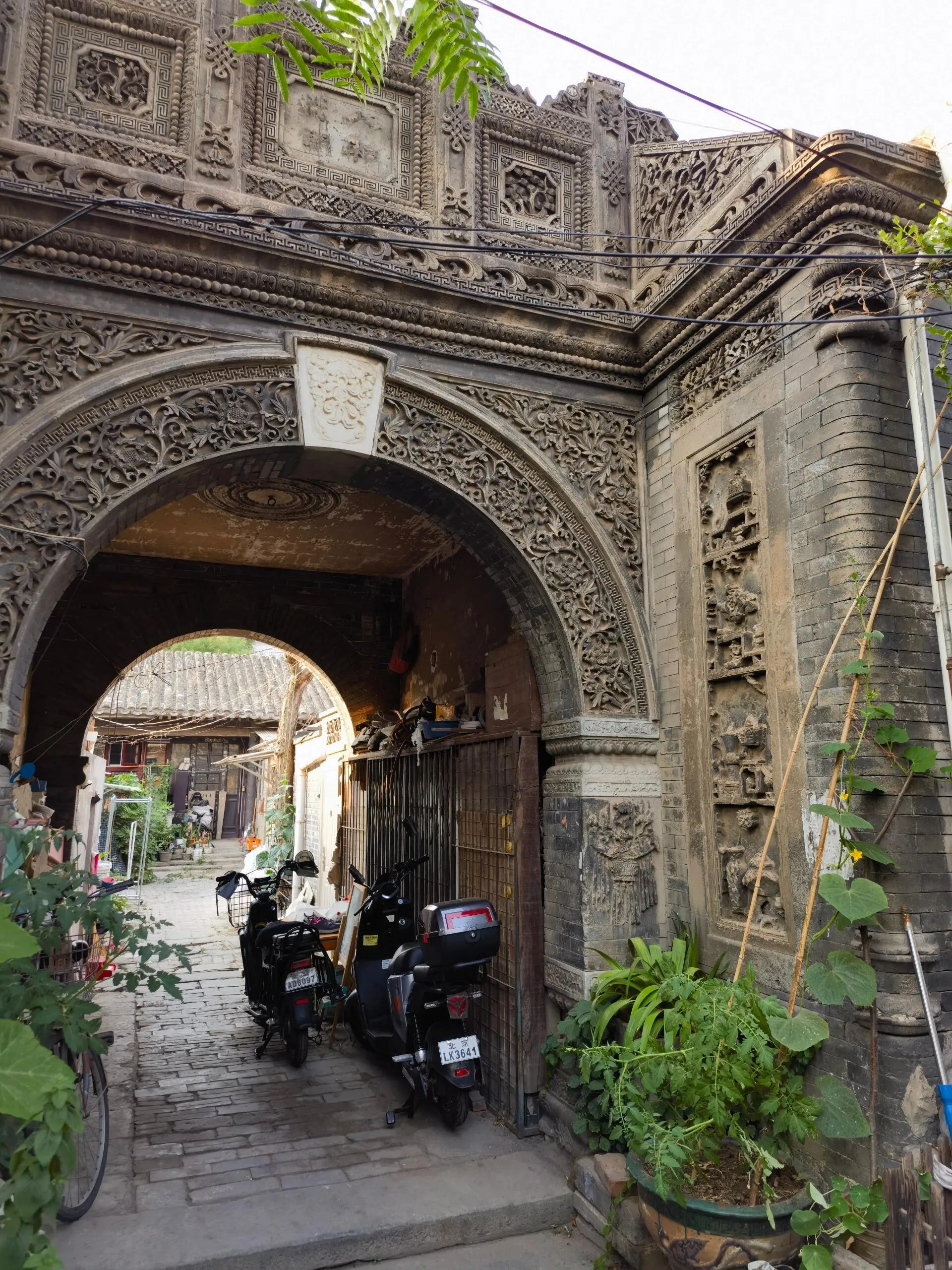 穿过四合院大门和一条小巷,眼前豁然开朗,一座精美绝伦的砖雕拱门呈现在眼前。虽然清末将军凤山的宅邸大部分已改建为现代民居,但这座保存完好的拱门仍然令人叹为观止。