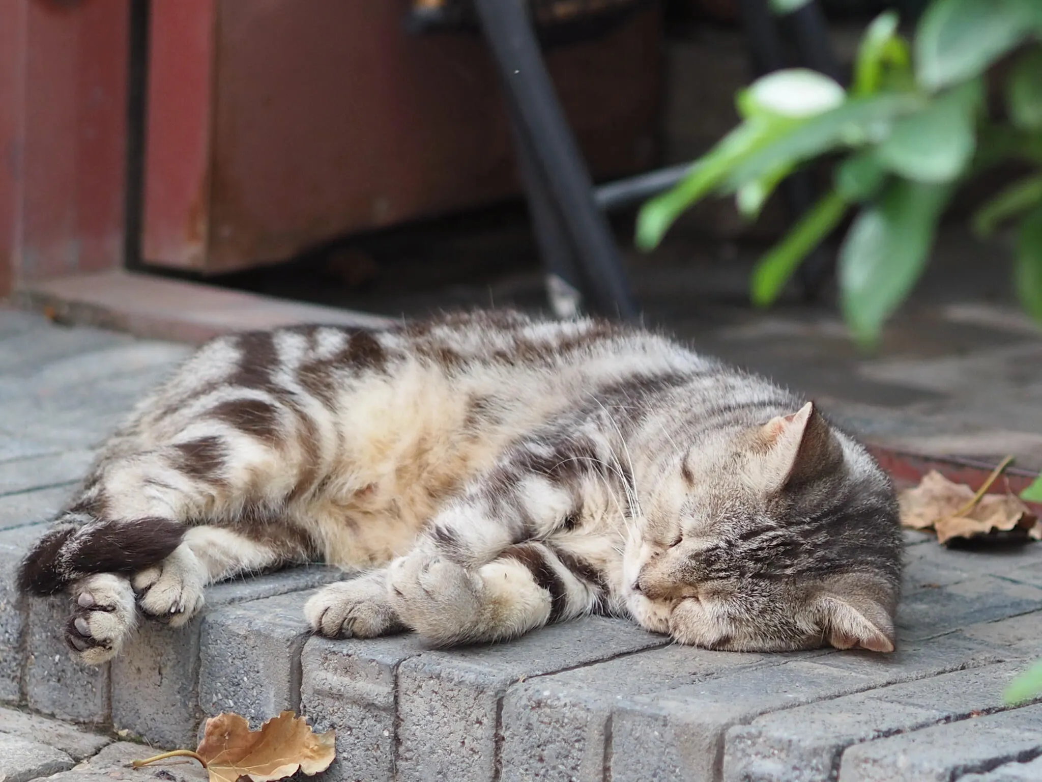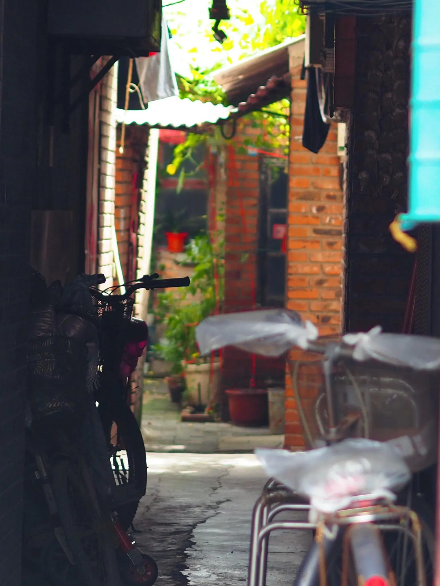 杨梅竹斜街相比之下更加景点化,游客也较多。刚进胡同就能看到一幅治愈的画面:一只小猫在门口慵懒地睡着,旁边有两片落叶,院内种满了绿植,地面光影斑驳。这只小猫把慵懒展现得淋漓尽致,让人不禁联想到为什么作家都喜欢养猫,或许是因为当思绪枯竭时,可以摸一摸睡着的小猫咪获得灵感。