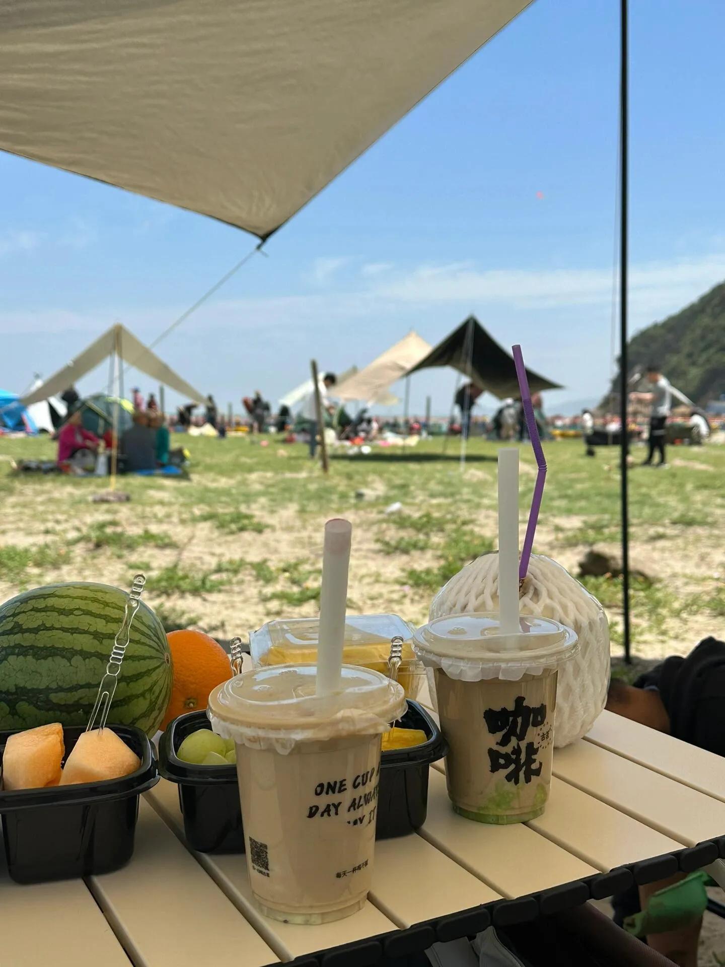 从游客中心可以买票乘坐观光车前往半边山海滩,票价是20元/人,1.2米以下儿童免费。到达海滩后,沿着大马路走就能看到可以搭建帐篷的区域,用绳子围起来的地方就是了。需要注意的是,如果带露营车,千万不要从停车场直接进去,会很不方便。