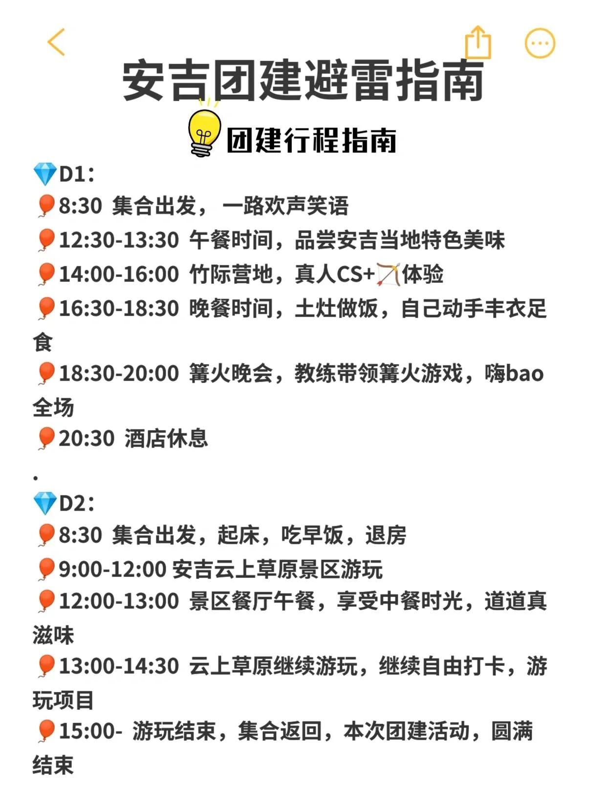 安吉作为团建目的地,不仅有丰富的自然景观和户外活动,还有独特的人文景点和美食。无论是想要放松身心还是寻求刺激,安吉都能满足不同团队的需求。