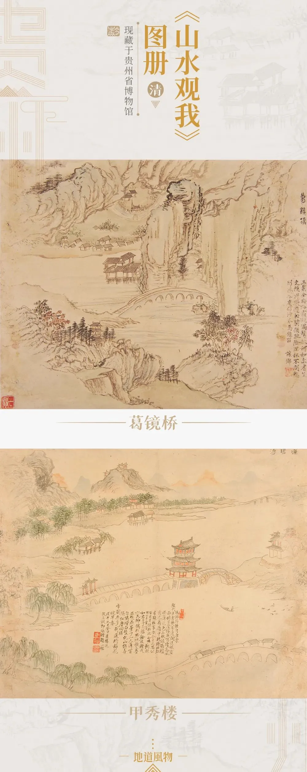 清朝画家邹一桂创作的《山水观我》图册,包括了22幅画作,其中17幅描绘贵州山水。