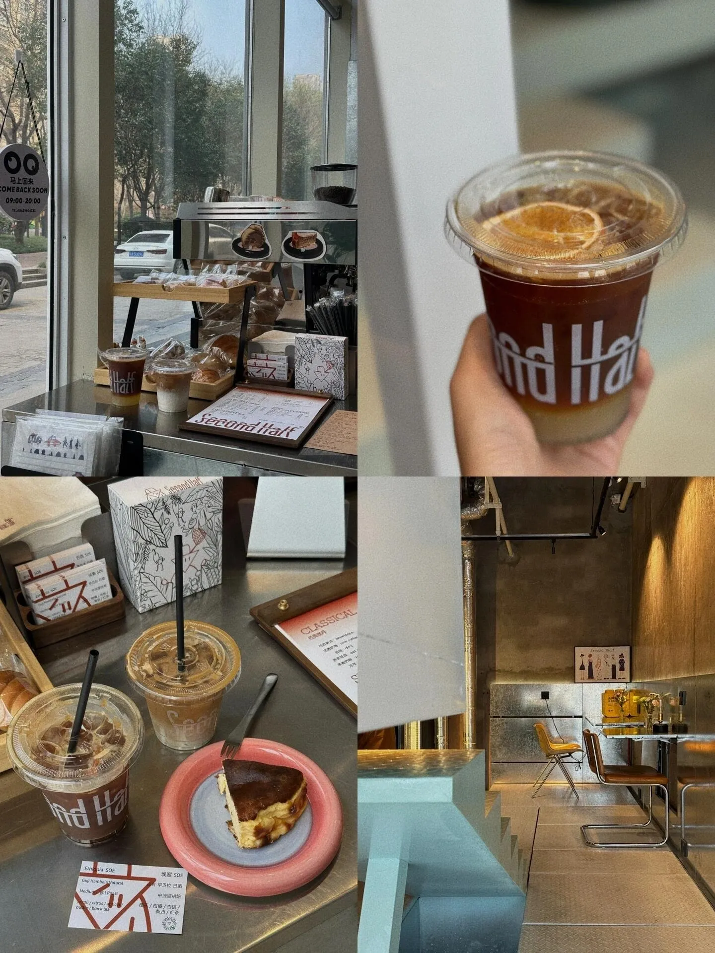 second half:曲江区的咖啡馆。咖啡豆品质高,口感出色。巴斯克司康特别好吃。空间较小,适合独处发呆。