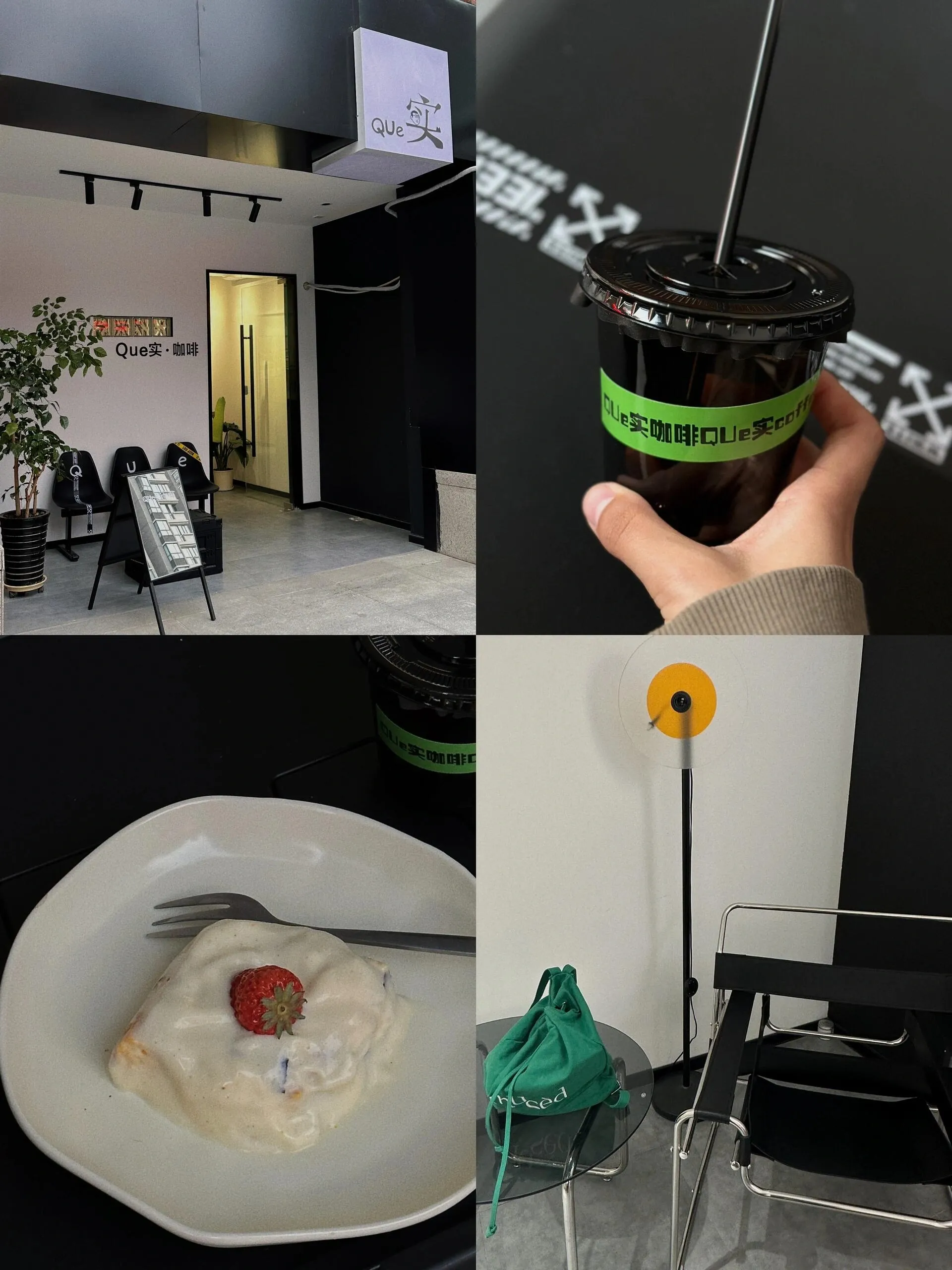 Que实:大北郊的社区店。咖啡性价比高,价格便宜。空间小,甜品一般,可能是开业初期还在调整。