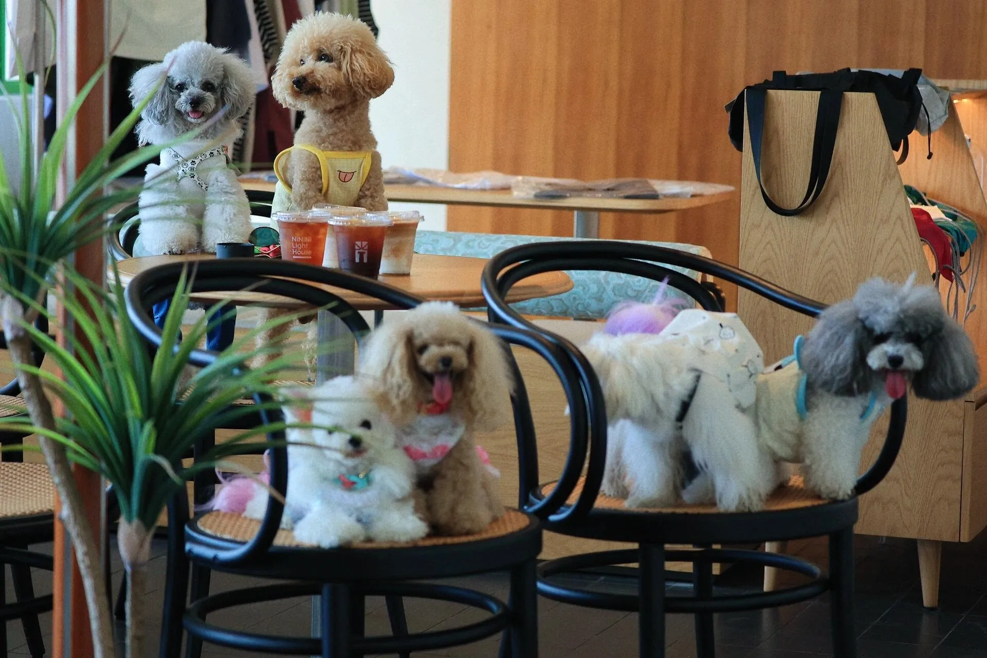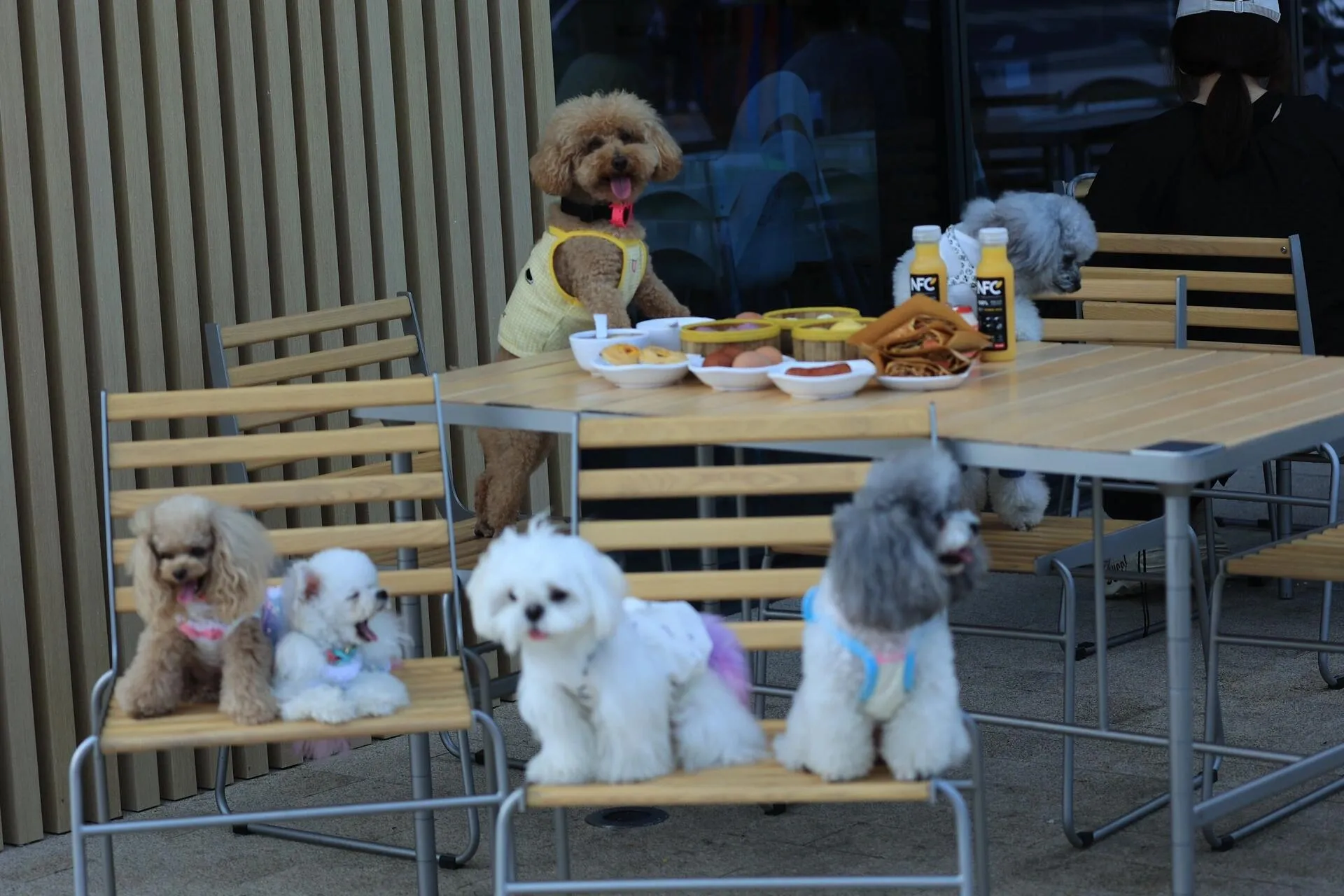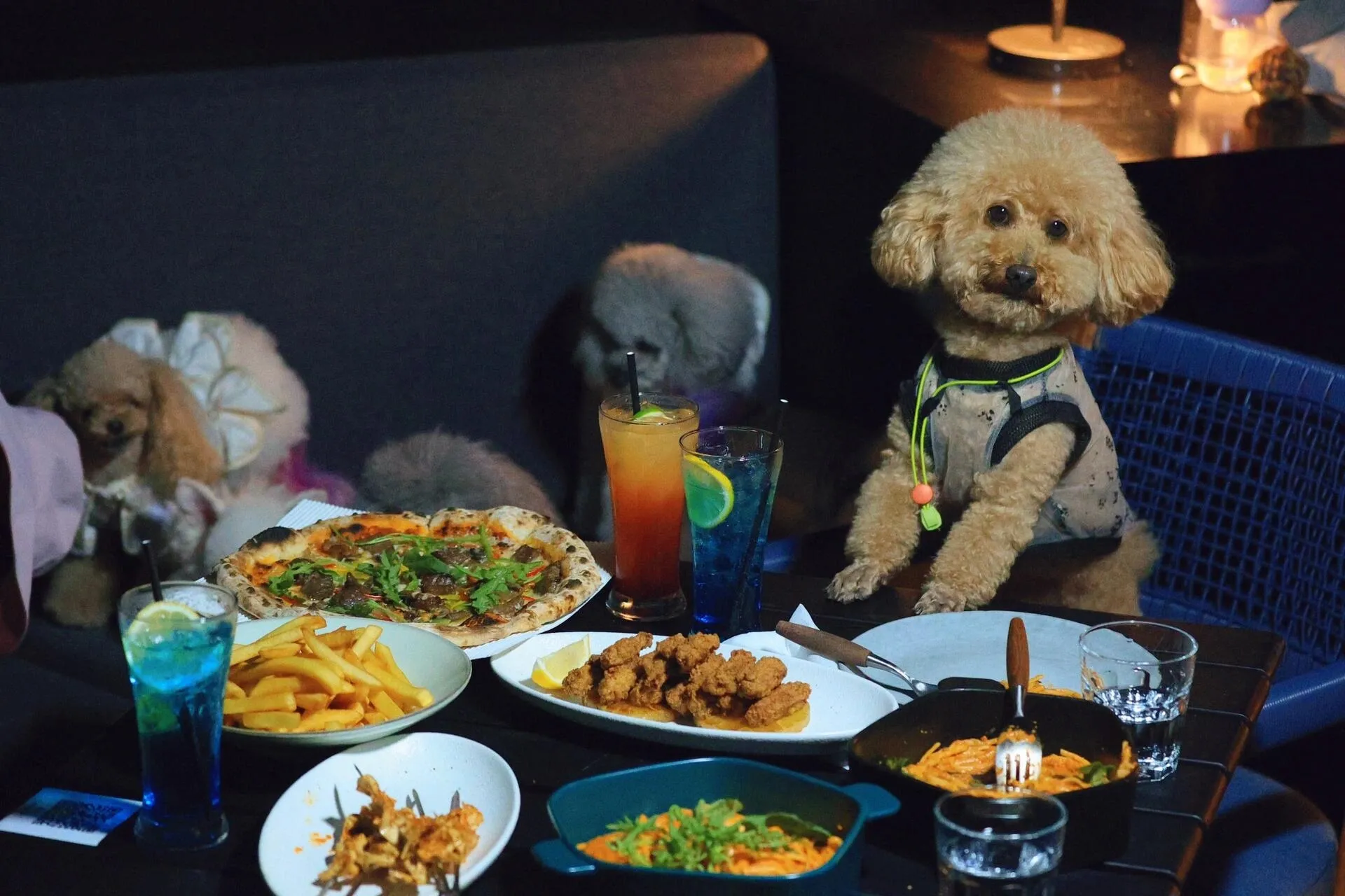 园区内的餐饮选择丰富。海边的“拾九bar”室外区域允许携带宠物,晚上在这里用餐别有一番风味。入住公寓的客人还可享受九折优惠。拾九bar旁边的咖啡屋同样欢迎宠物入内。此外,商业区的第一食堂提供价格亲民的早餐,虽然室内不允许宠物进入,但室外设有遮阳伞和餐桌,非常适合当前的天气。