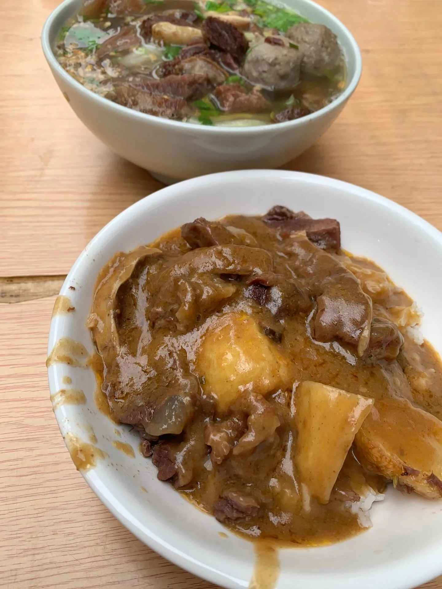 红烧牛腩饭没有红烧味,沙茶也不像沙茶,整体很普通。