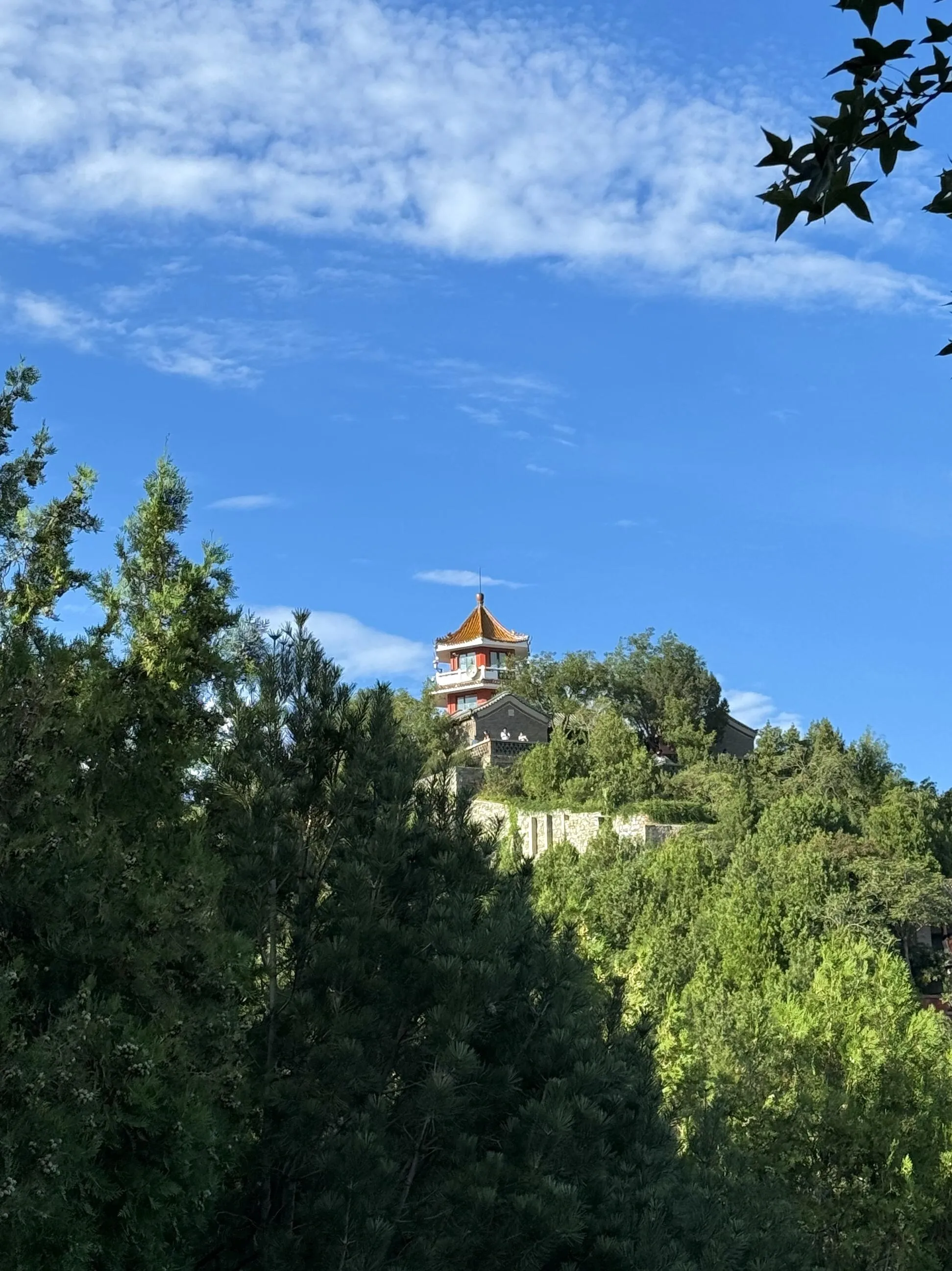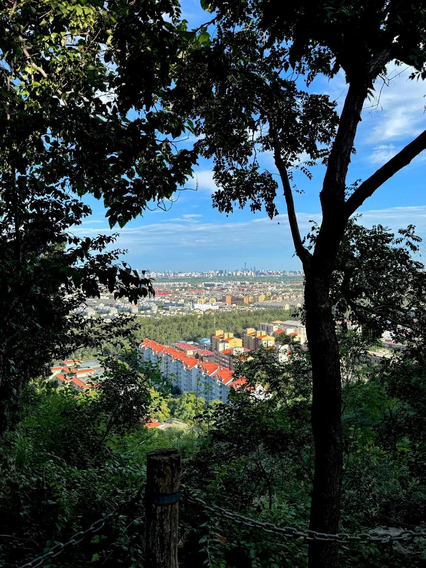 从东门进入沿大路步行约四十分钟即可登顶, 在山顶可以俯瞰整个北京城。 登山过程中,可以欣赏到丁达尔效应的奇妙景象, 日落时分还能欣赏到美丽的粉色晚霞。 运气好的话,下山时还能遇见闪烁的萤火虫,为夜晚增添一份神秘感。