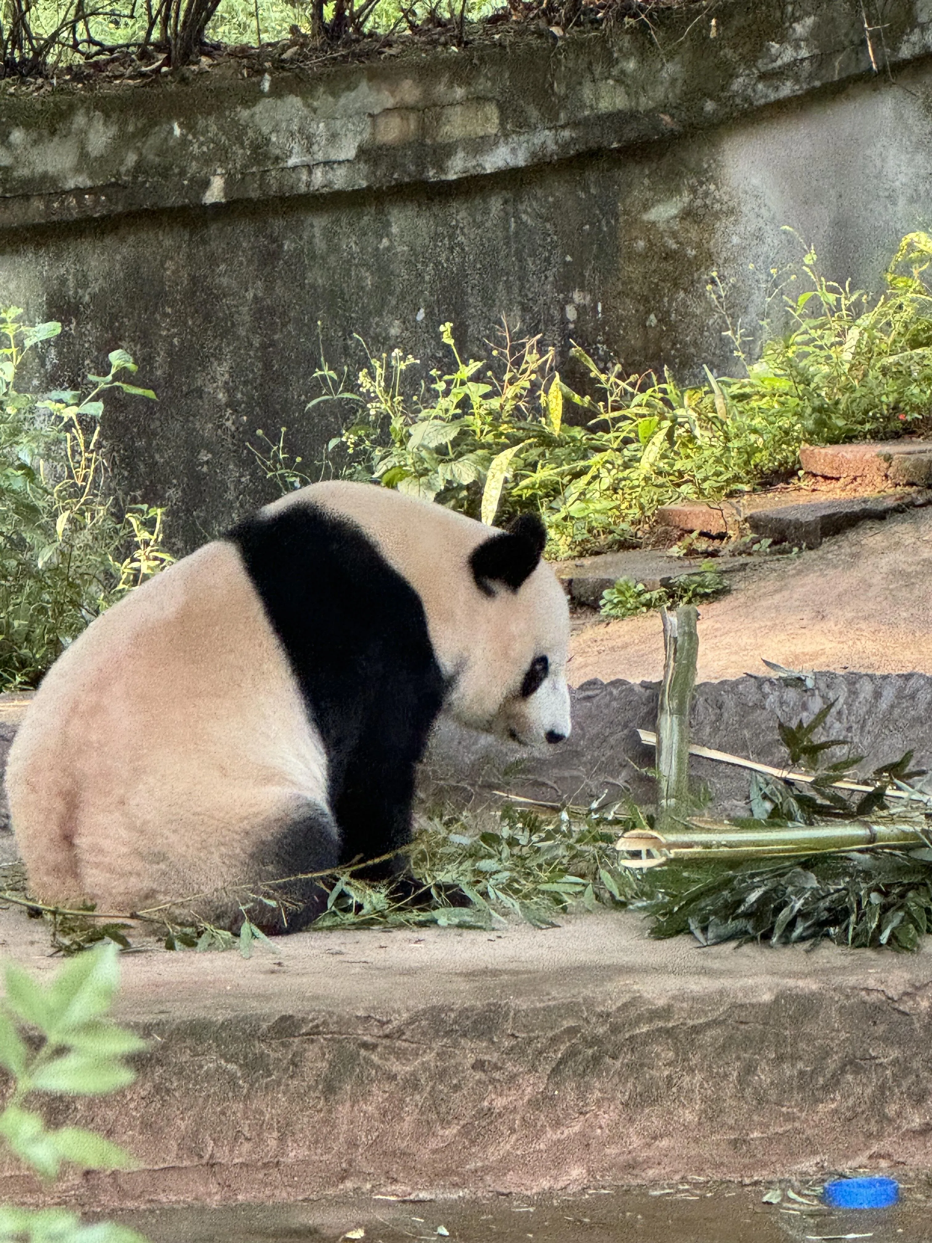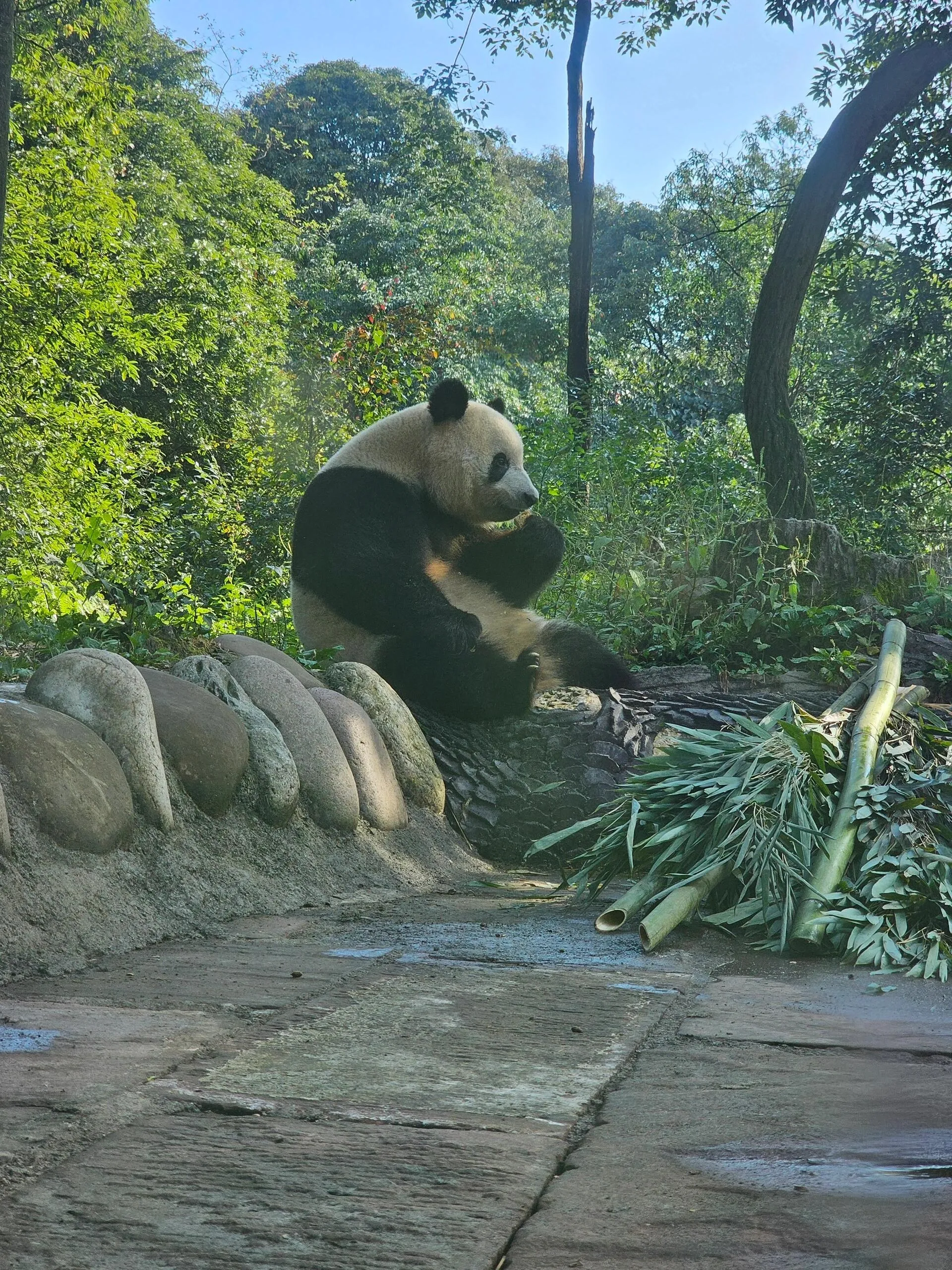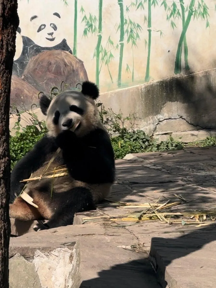 文创中心是购物的好去处 ,汉服福宝和小熊猫玩偶都非常可爱。最后一站是白熊坪,不过要注意,如果到达时间较晚(如11点左右),天气会比较热,大部分熊猫可能已经躲在阴凉处或进屋了,可能只能看到福涛偶尔闲逛。