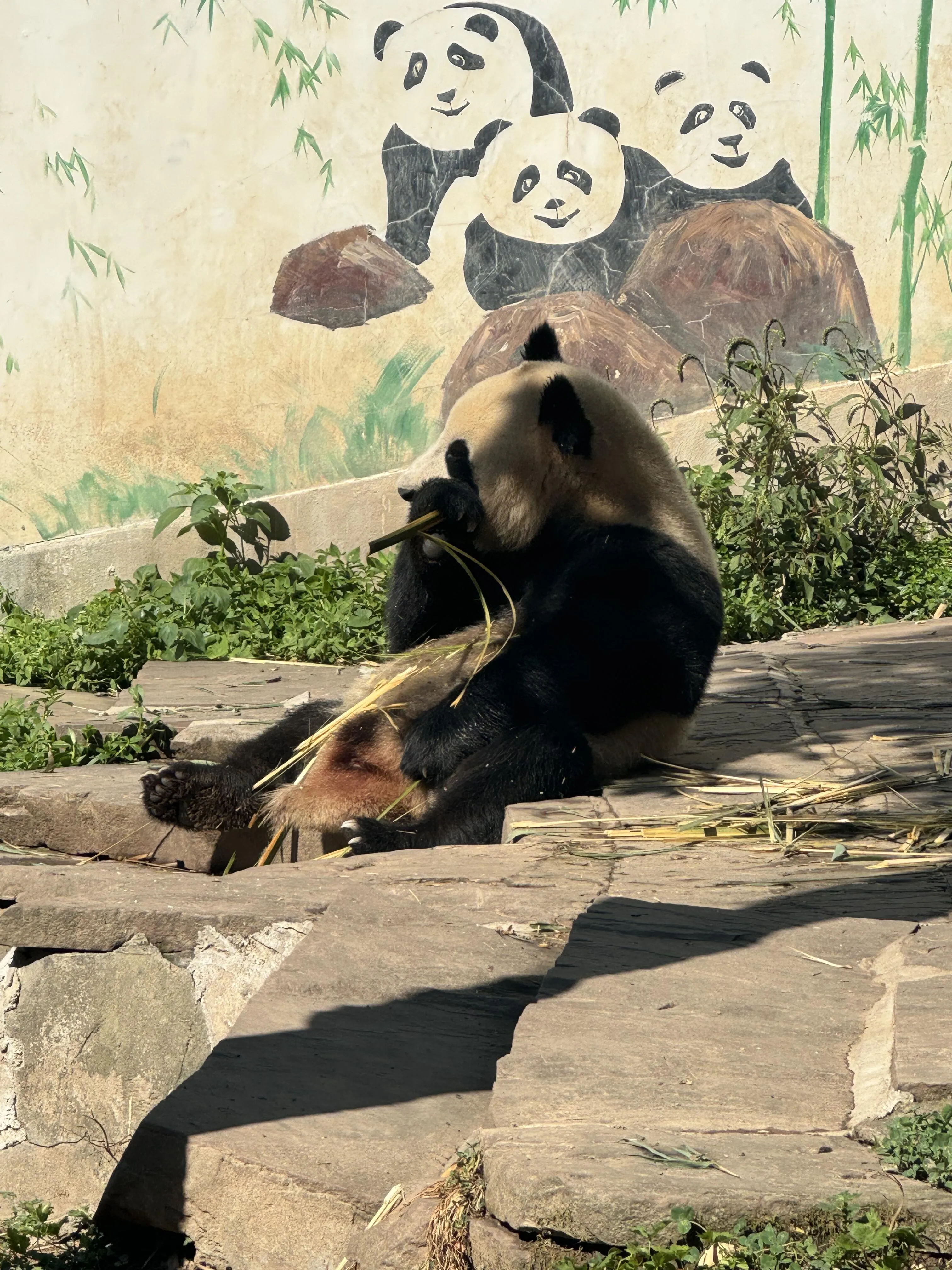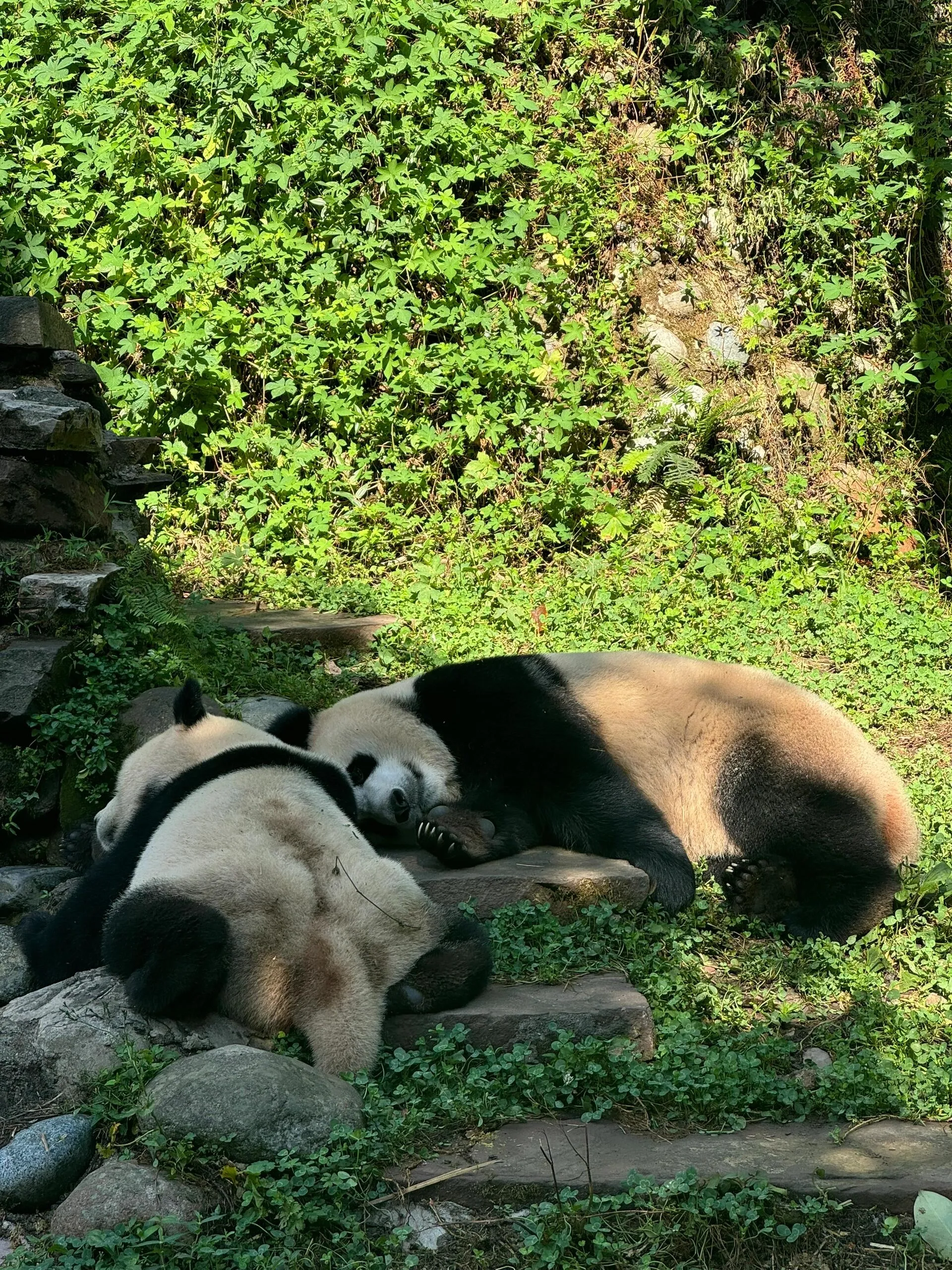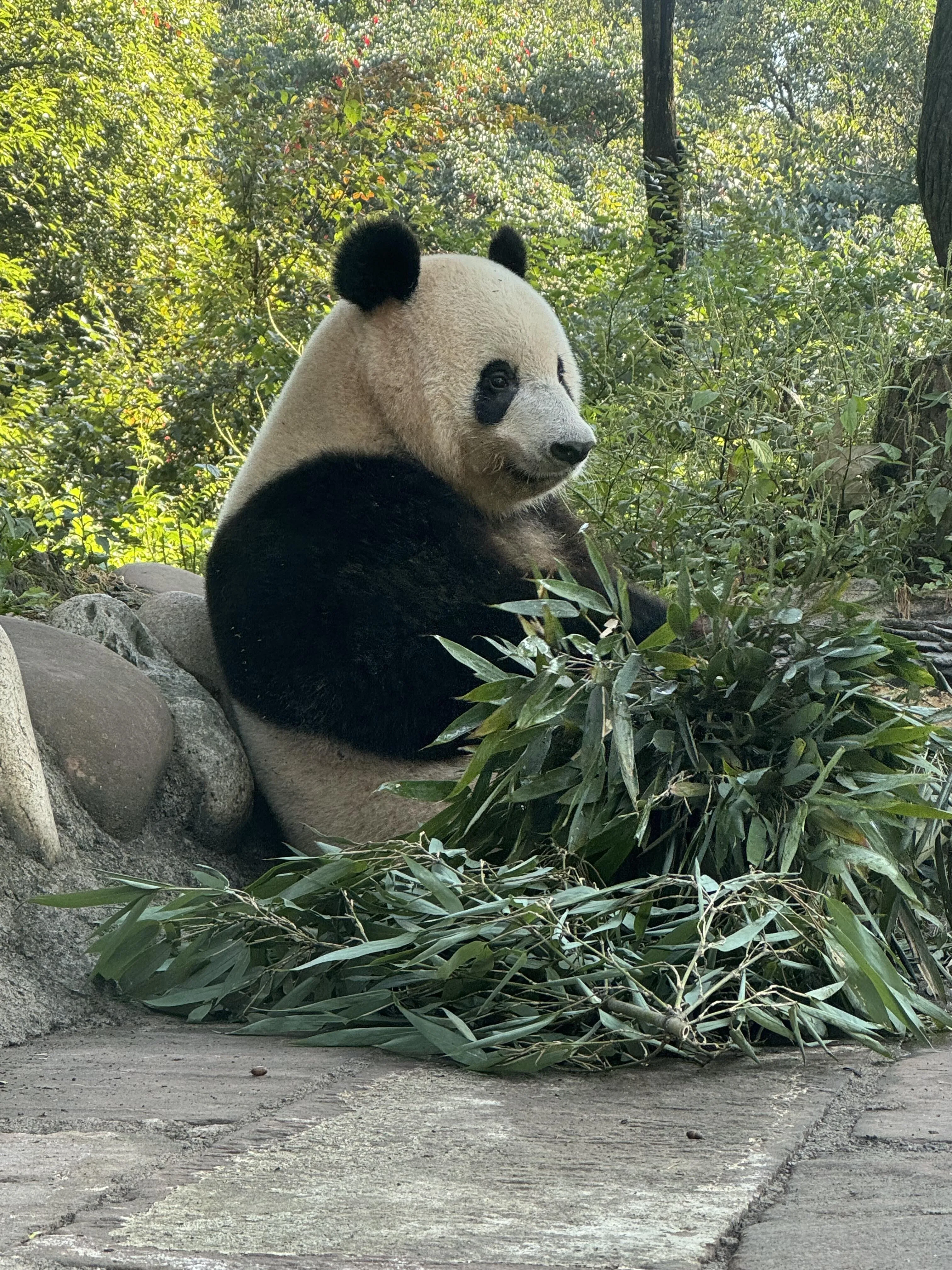 文创中心是购物的好去处 ,汉服福宝和小熊猫玩偶都非常可爱。最后一站是白熊坪,不过要注意,如果到达时间较晚(如11点左右),天气会比较热,大部分熊猫可能已经躲在阴凉处或进屋了,可能只能看到福涛偶尔闲逛。