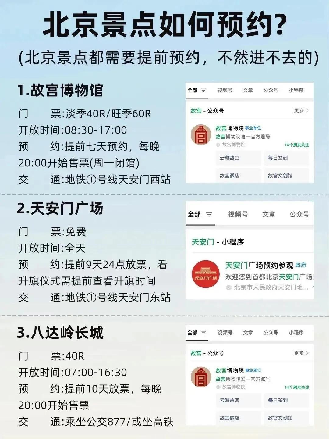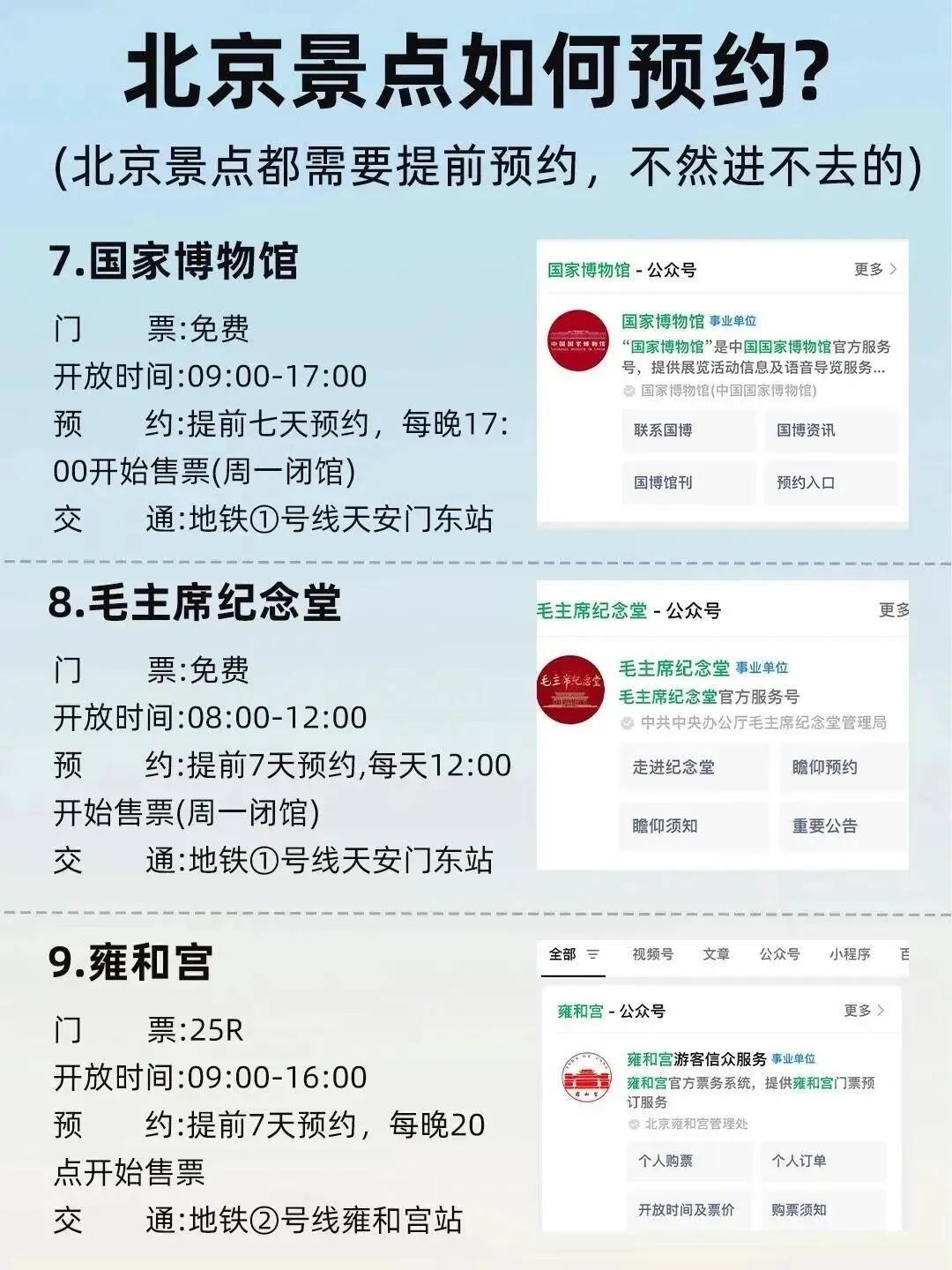 天安门广场是北京的中心 ,每天清晨和傍晚都会举行庄严的升降旗仪式。 故宫博物院作为紫禁城遗址 ,是了解中国帝王历史的必游之地。天坛作为皇家祭祀场所,其中的祈年殿更是不容错过的打卡地点。雍和宫是北京香火最旺盛的皇家寺院,而附近的孔庙则展现了中国传统文化的精髓。