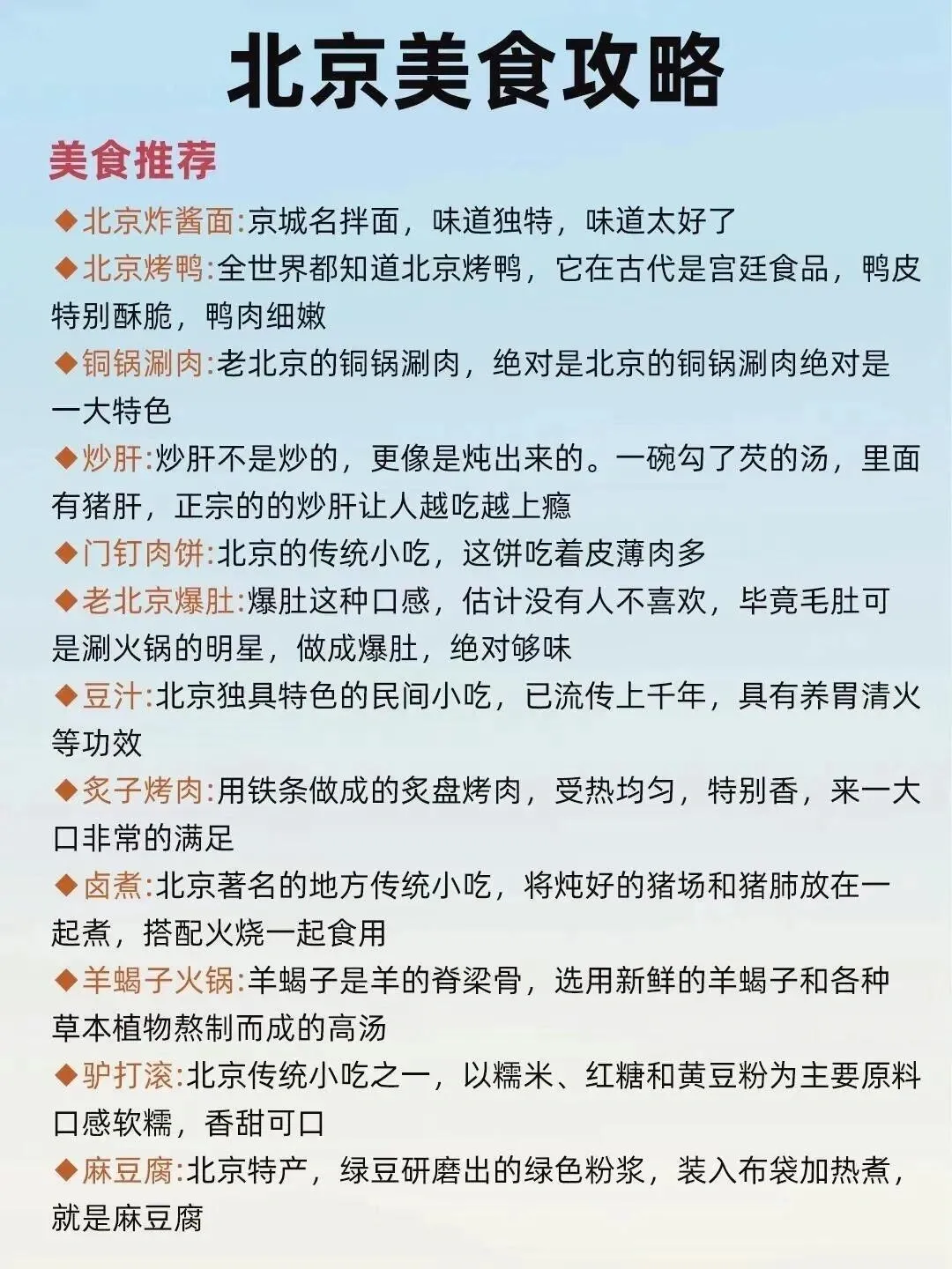 除了丰富的景点,北京的美食文化同样令人向往。 簋街是著名的美食聚集地 ,牛街则以回族美食闻名。烟袋斜街、鼓楼大街和 南锣鼓巷都是充满老北京风情的商业街 ,汇集了众多特色小吃和老字号店铺。 护国寺小吃街和前门美食街更是品尝北京地方美食的绝佳去处 。